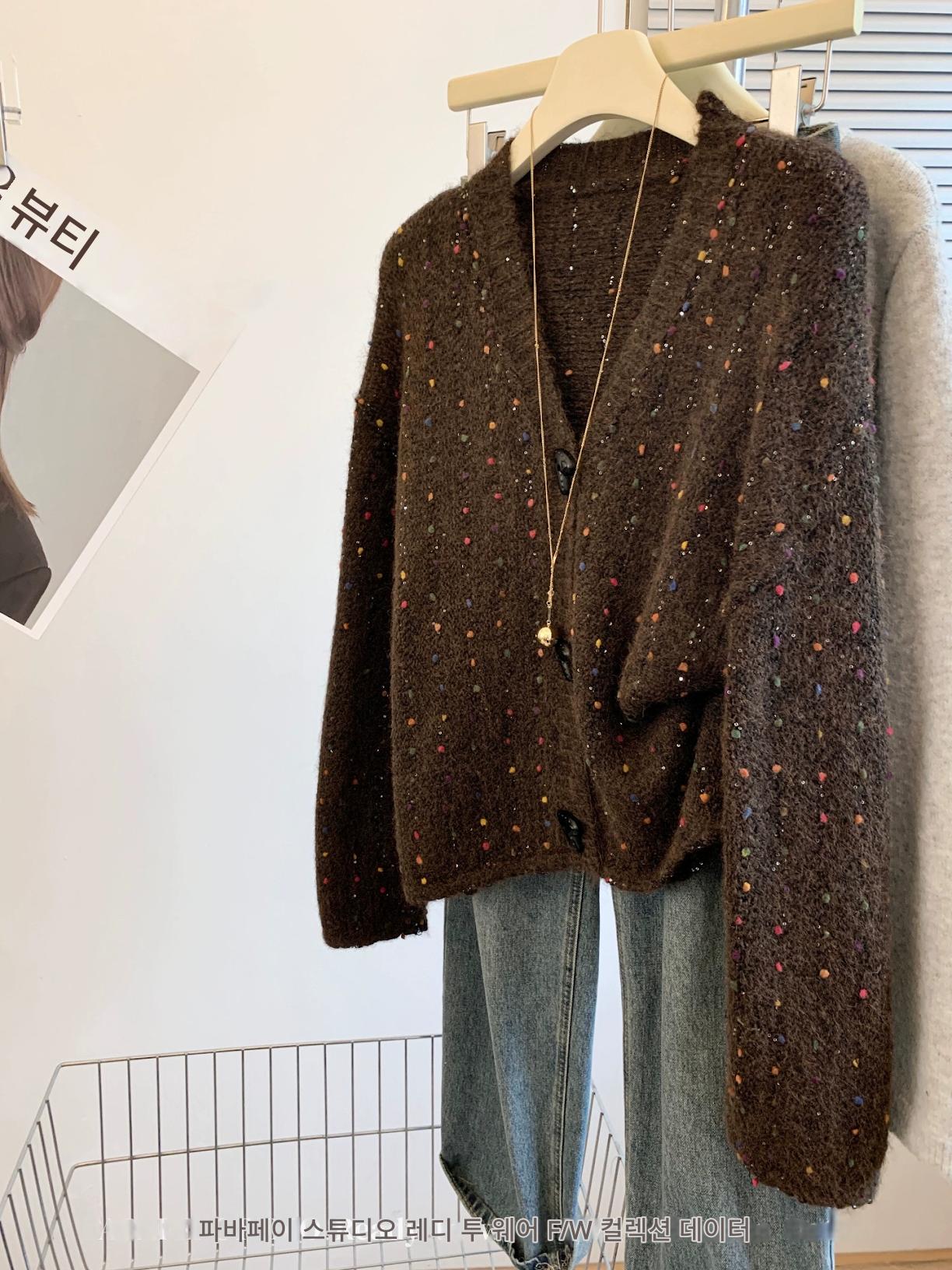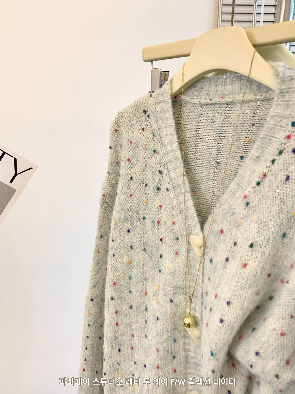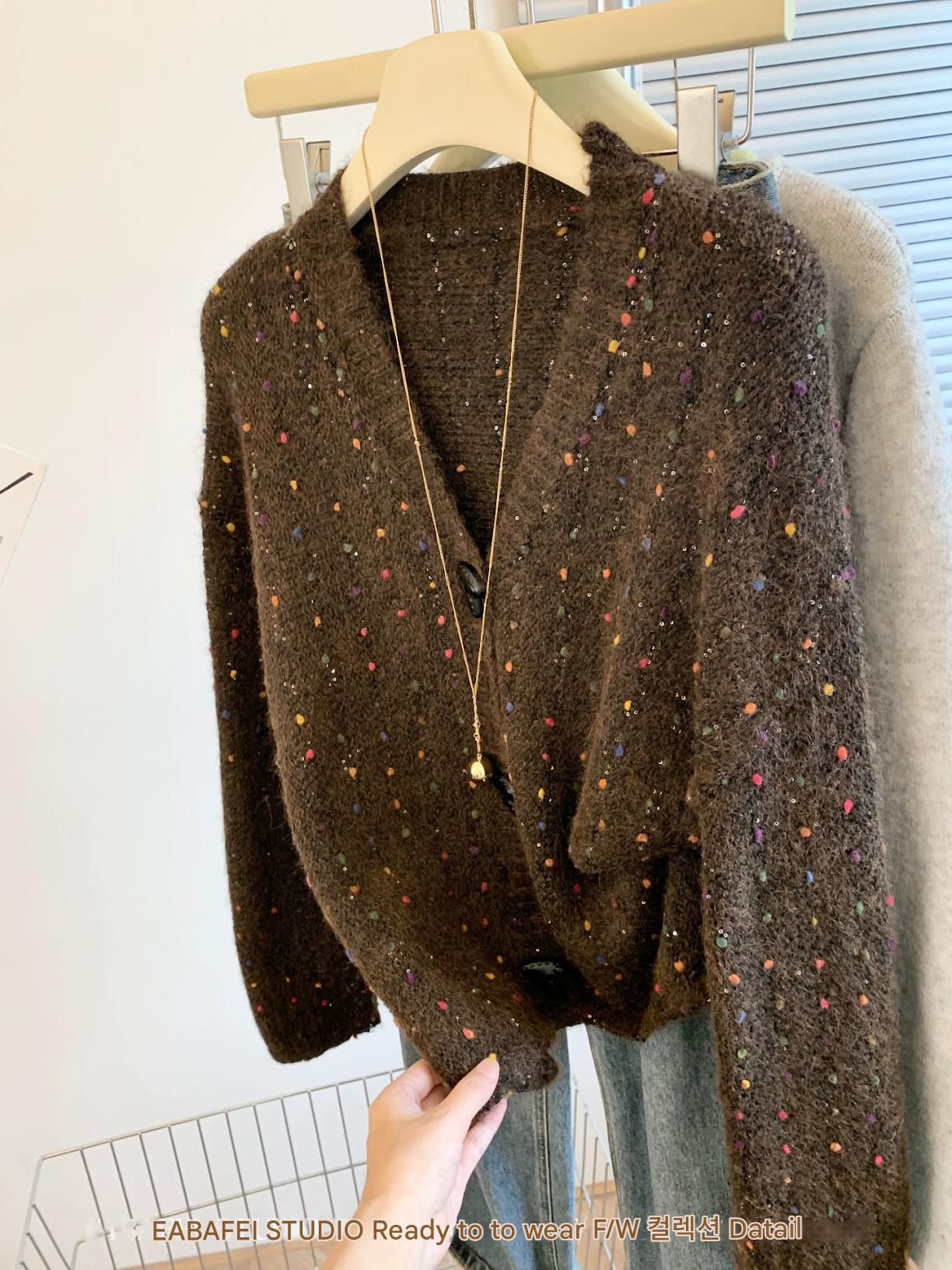 여성 가을 겨울용 부드러운 모헤어 니트 스웨터 스몰 사이즈 스웨터 재킷을 위한 부드러운 스타일의 다채로운 폼폼 V넥 카디건