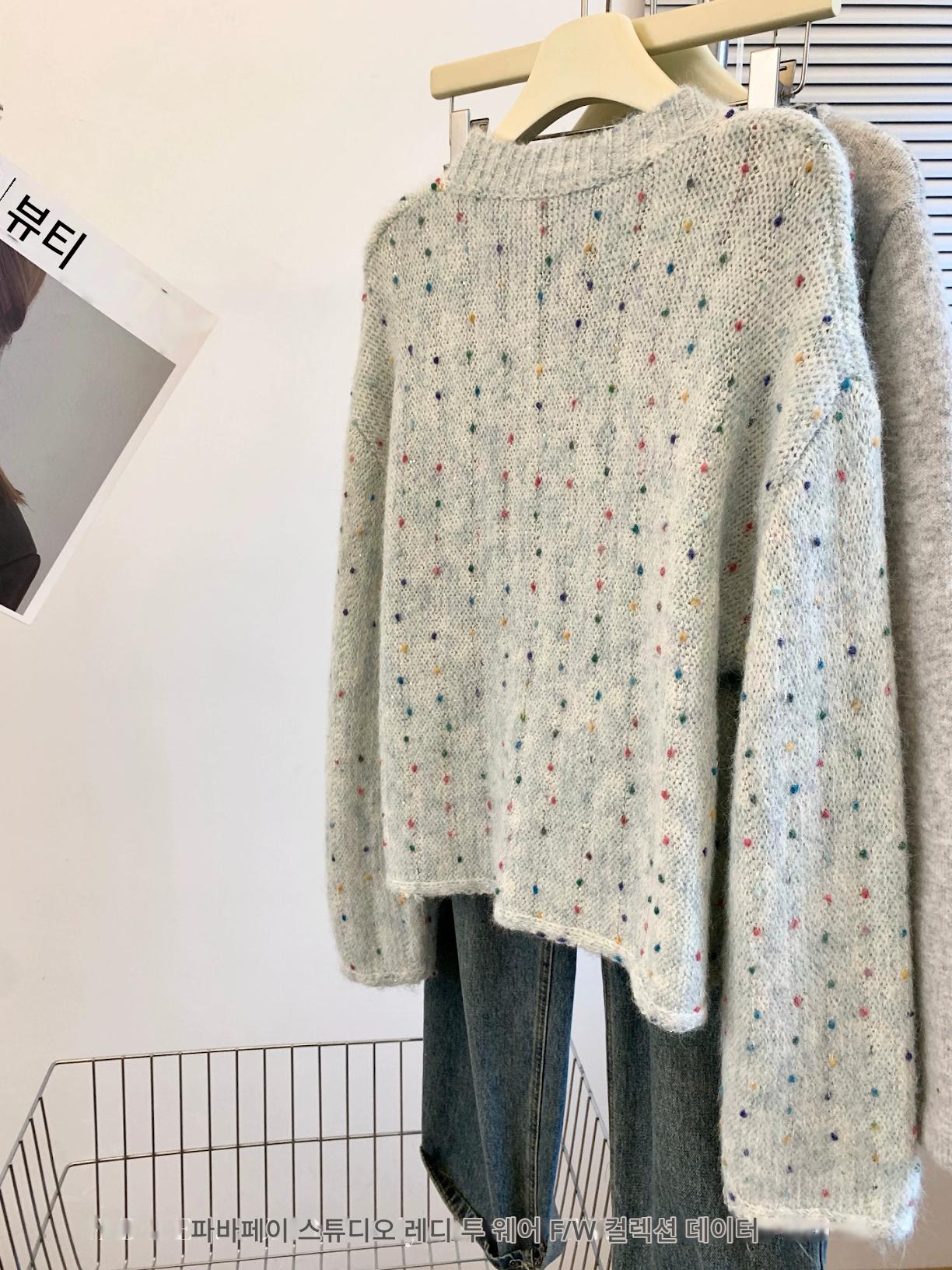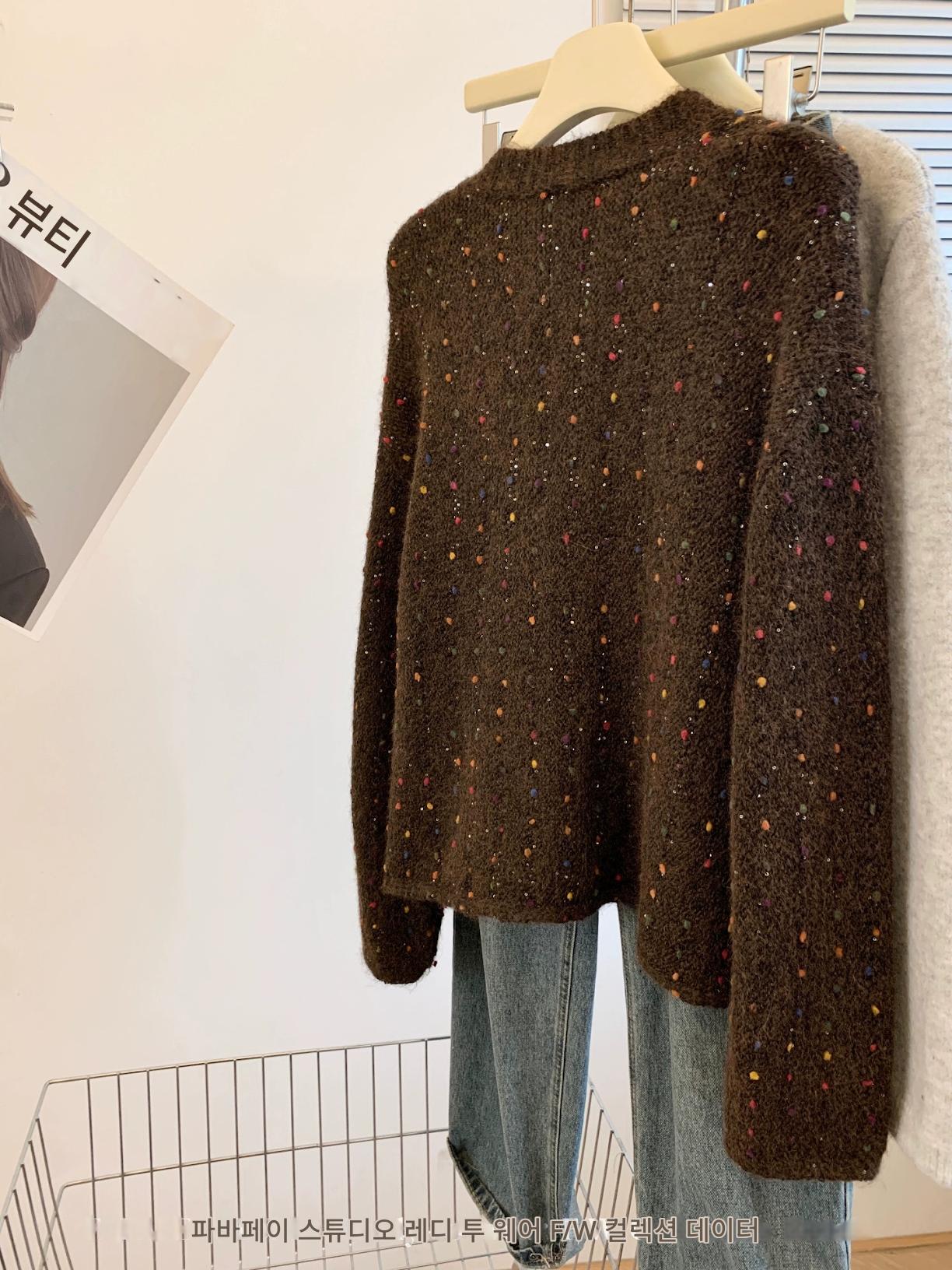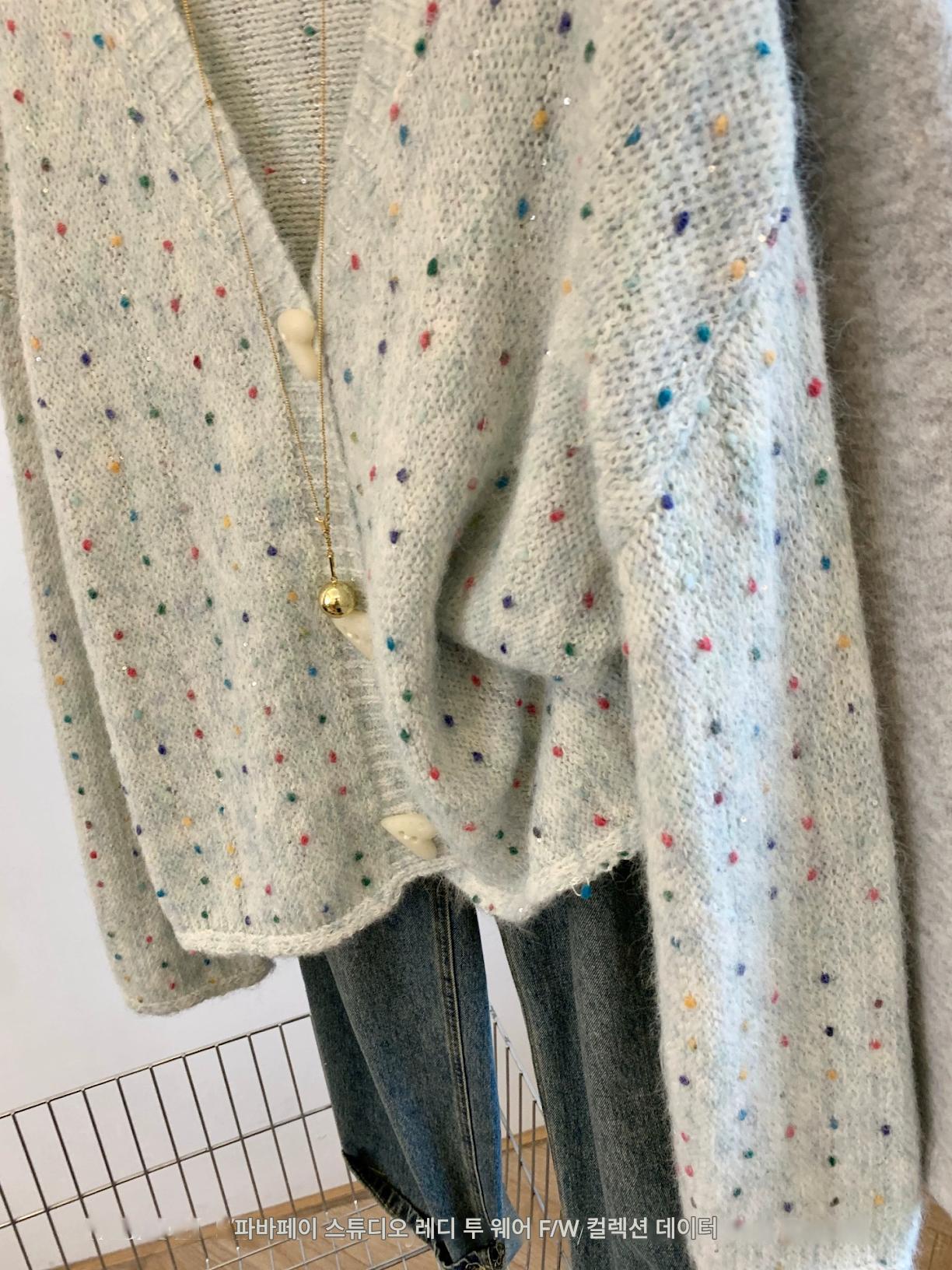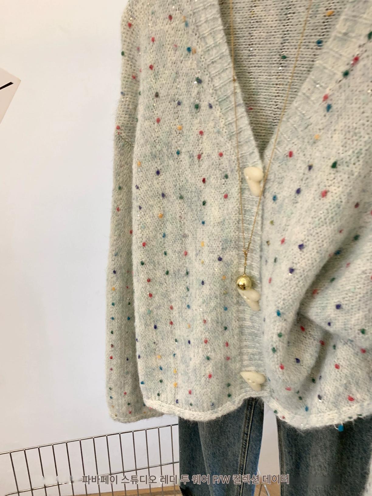 여성 가을 겨울용 부드러운 모헤어 니트 스웨터 스몰 사이즈 스웨터 재킷을 위한 부드러운 스타일의 다채로운 폼폼 V넥 카디건