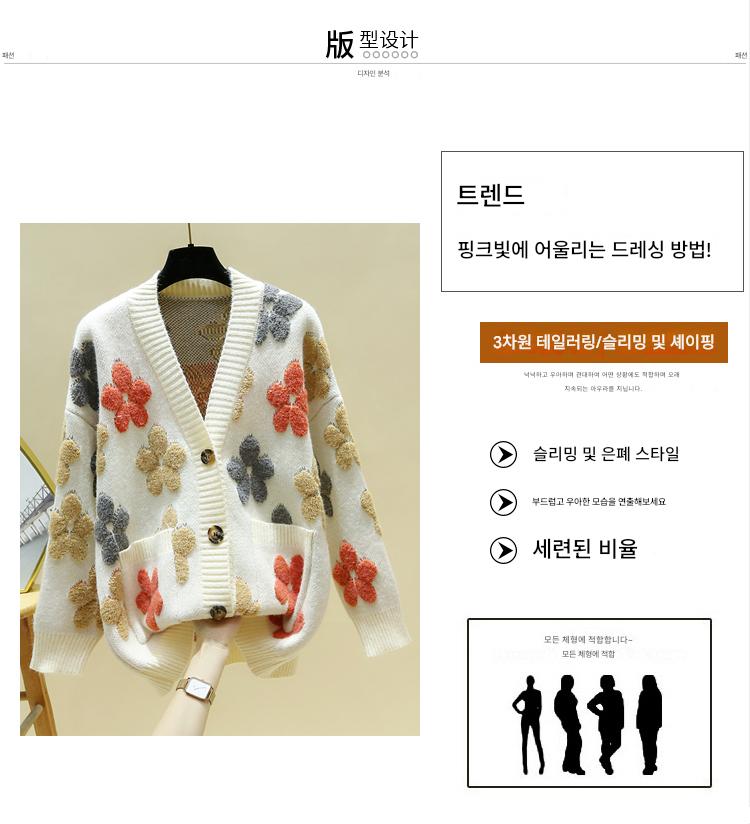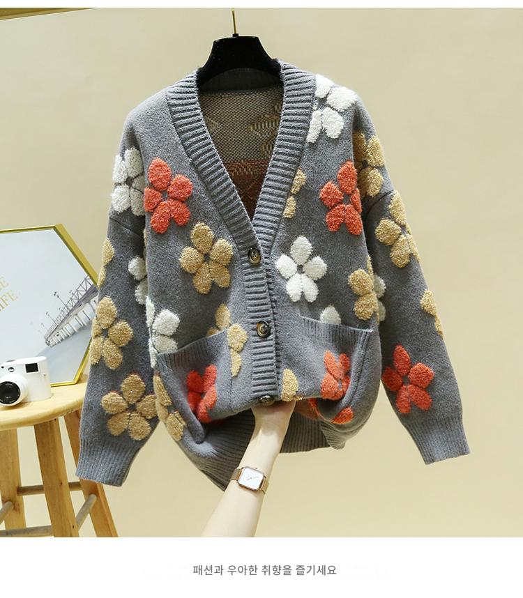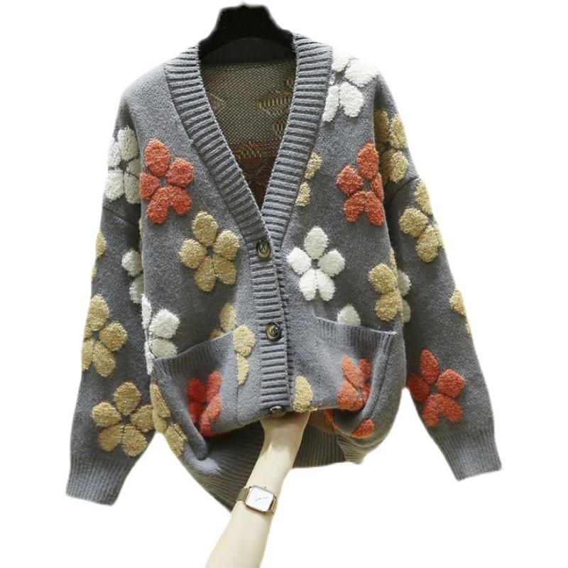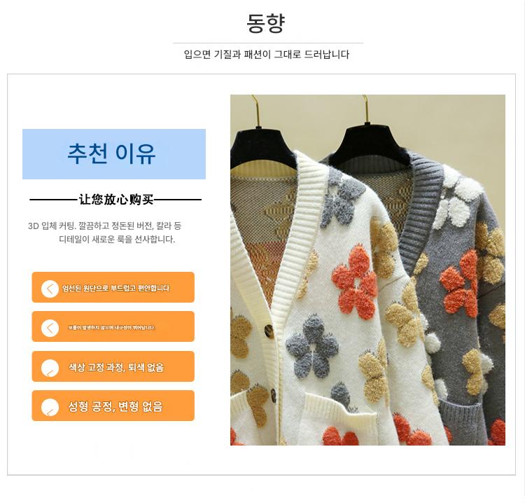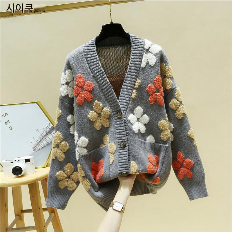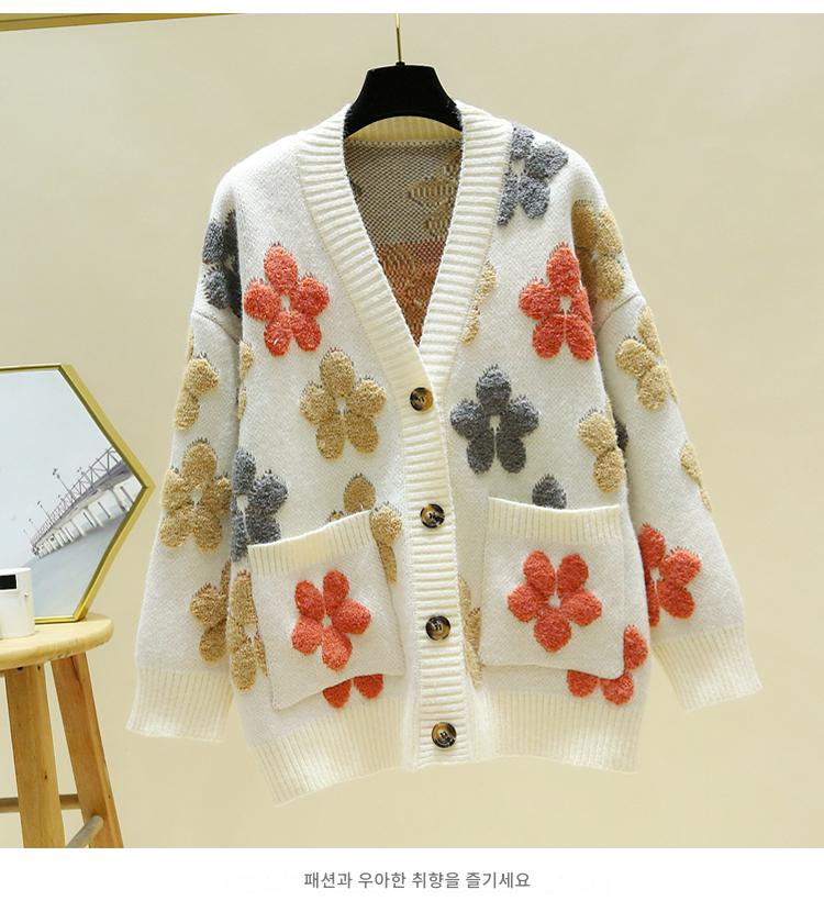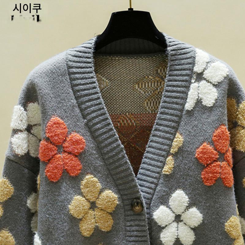 여성 니트 스웨터 재킷 2025년 신상품 봄 가을 스웨터 카디건 레이지 스타일 루즈 에이징 롱슬리브 V넥 탑