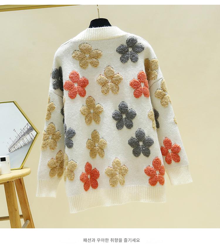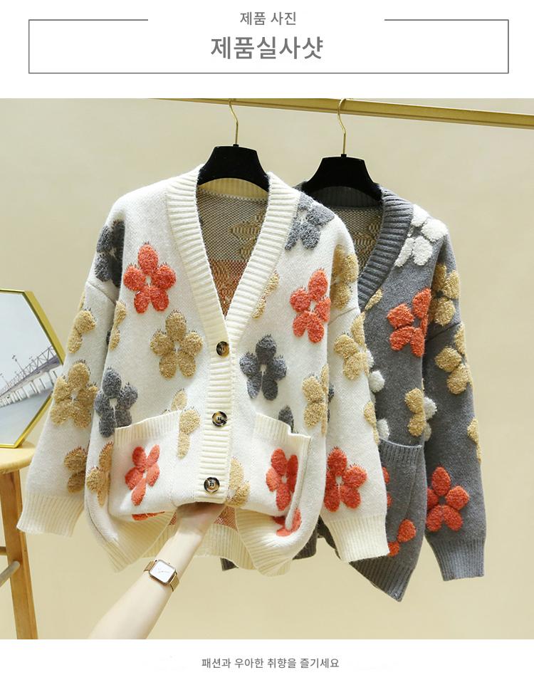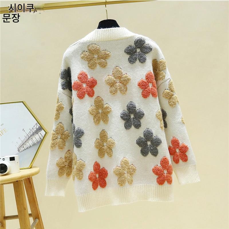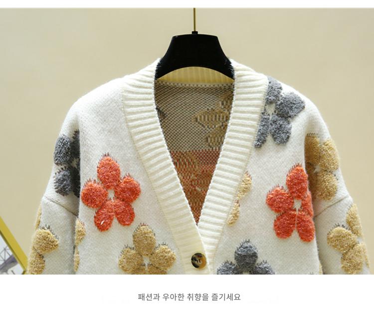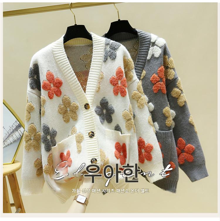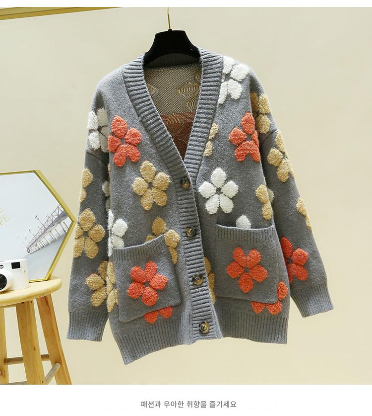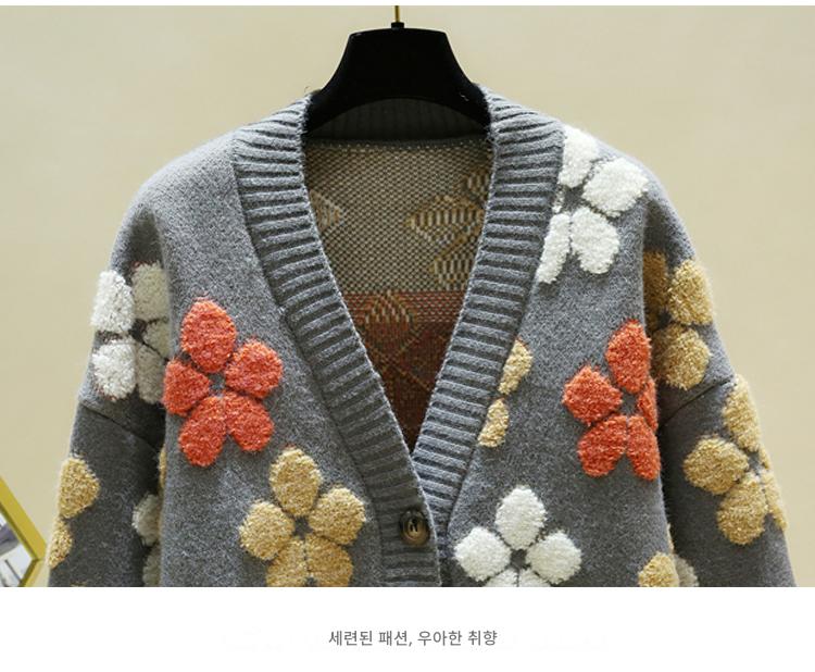 여성 니트 스웨터 재킷 2025년 신상품 봄 가을 스웨터 카디건 레이지 스타일 루즈 에이징 롱슬리브 V넥 탑