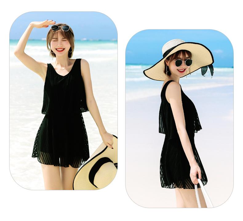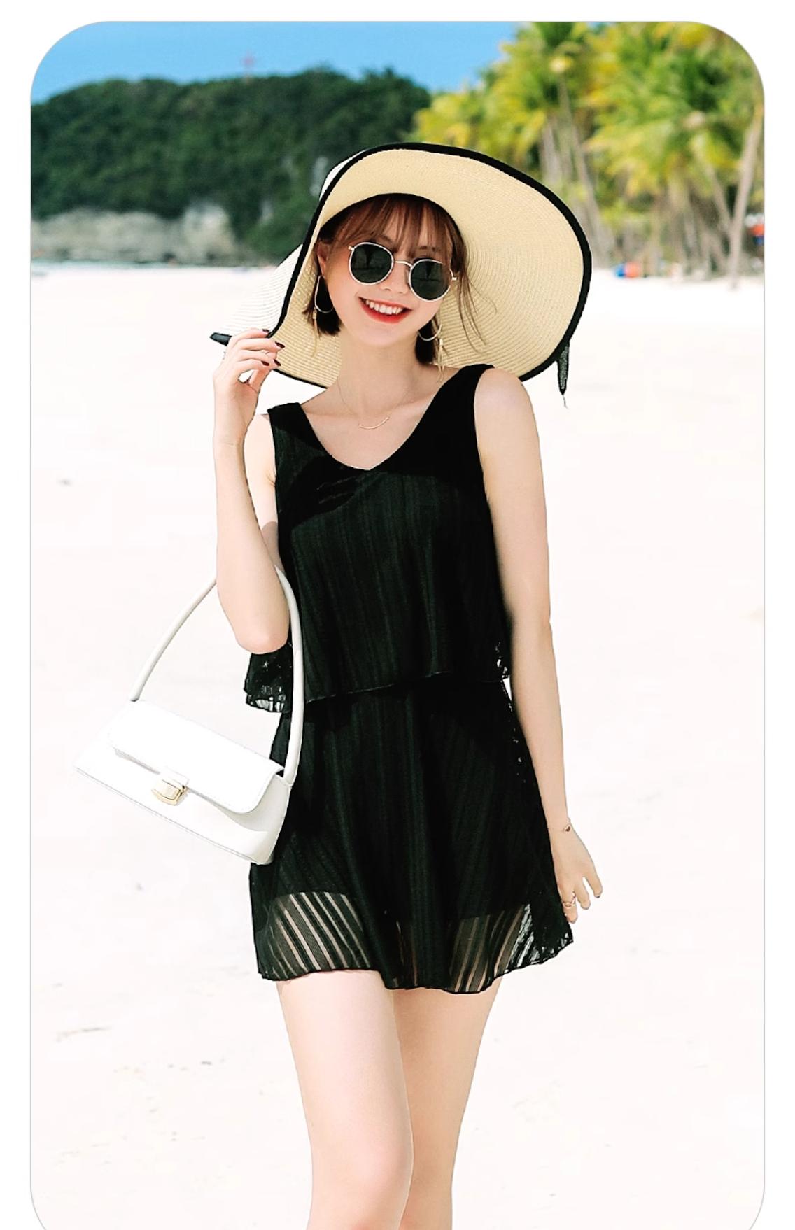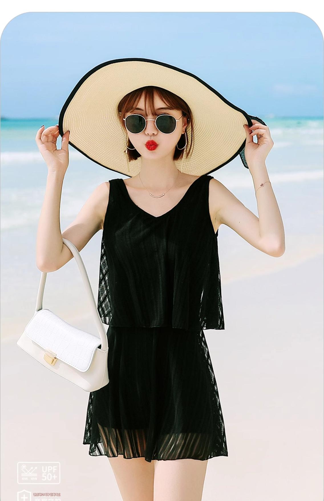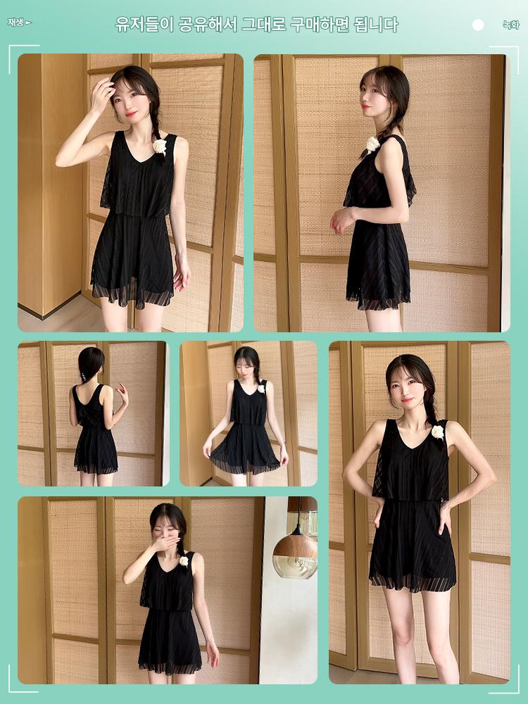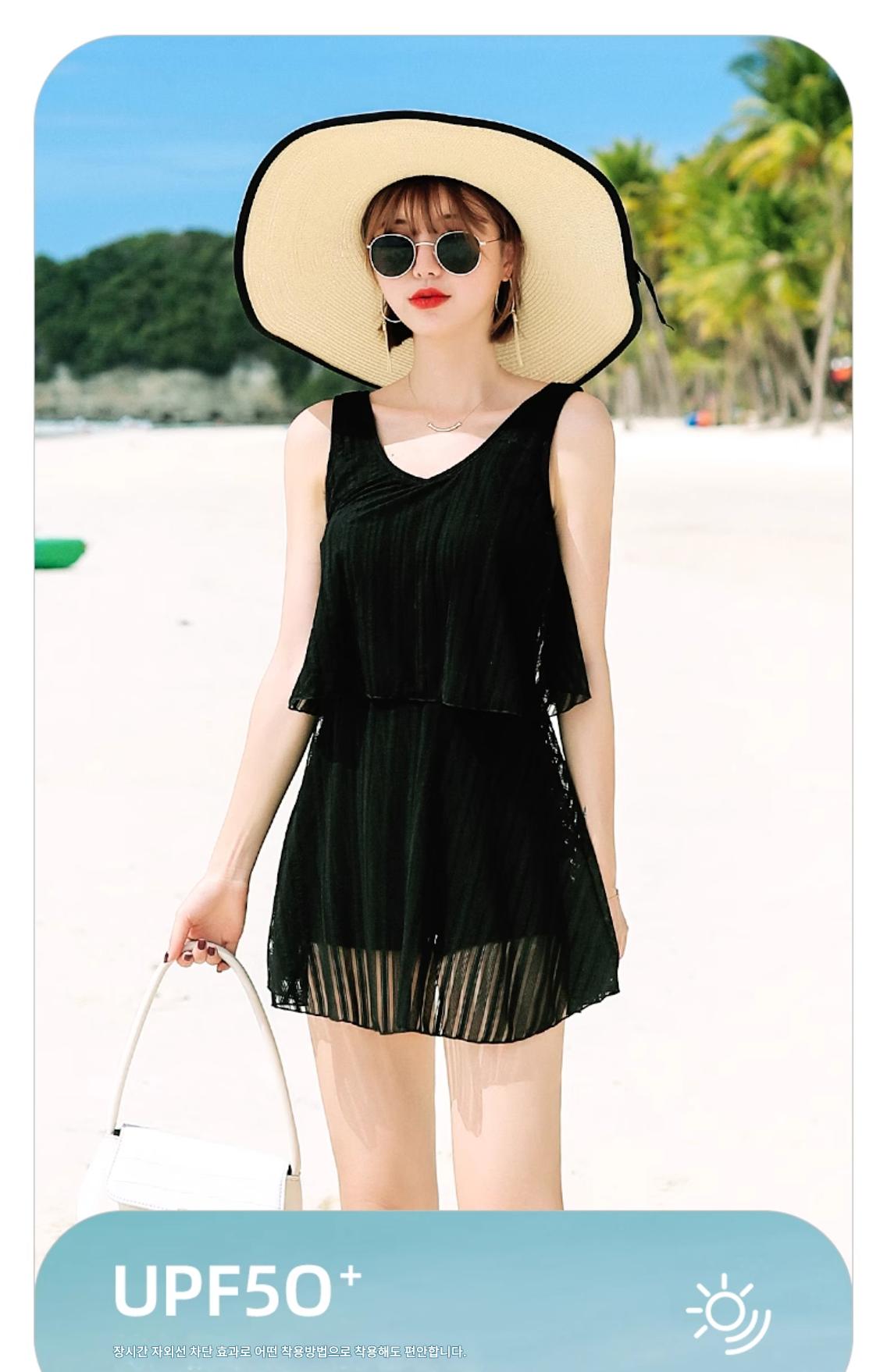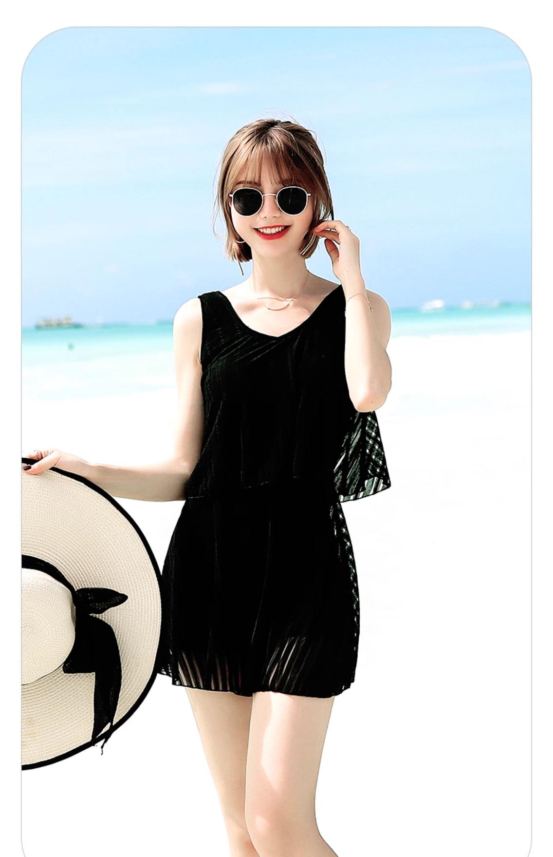 여성 피부 친화적인 블랙 수영복, 요정 같은 보수적인 2025년 신작 스타일, 슬림하고 작은 가슴을 가리는, 온천욕에 적합