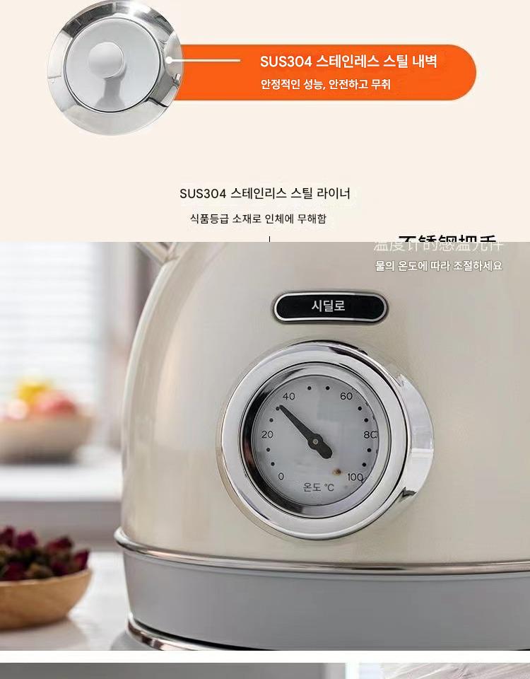 영국산 시딜 유럽 레트로 전기 주전자 가정용 1.8리터 대용량 304스테인리스 주전자 단열재