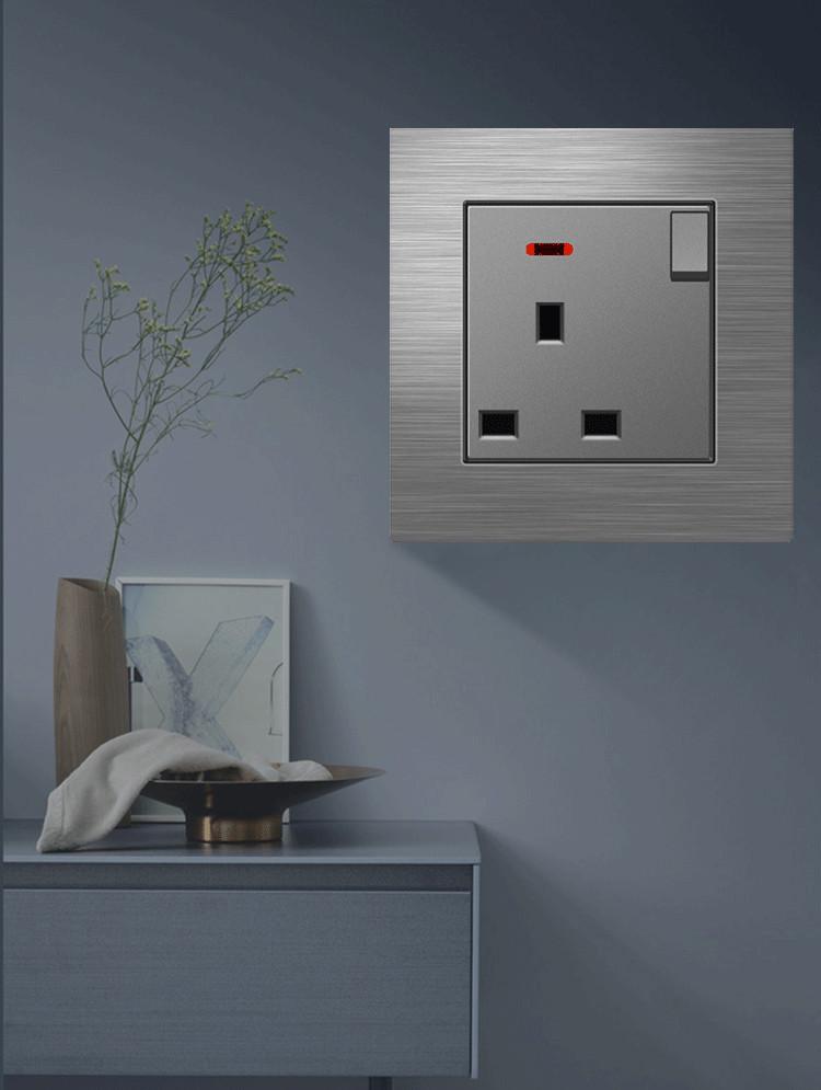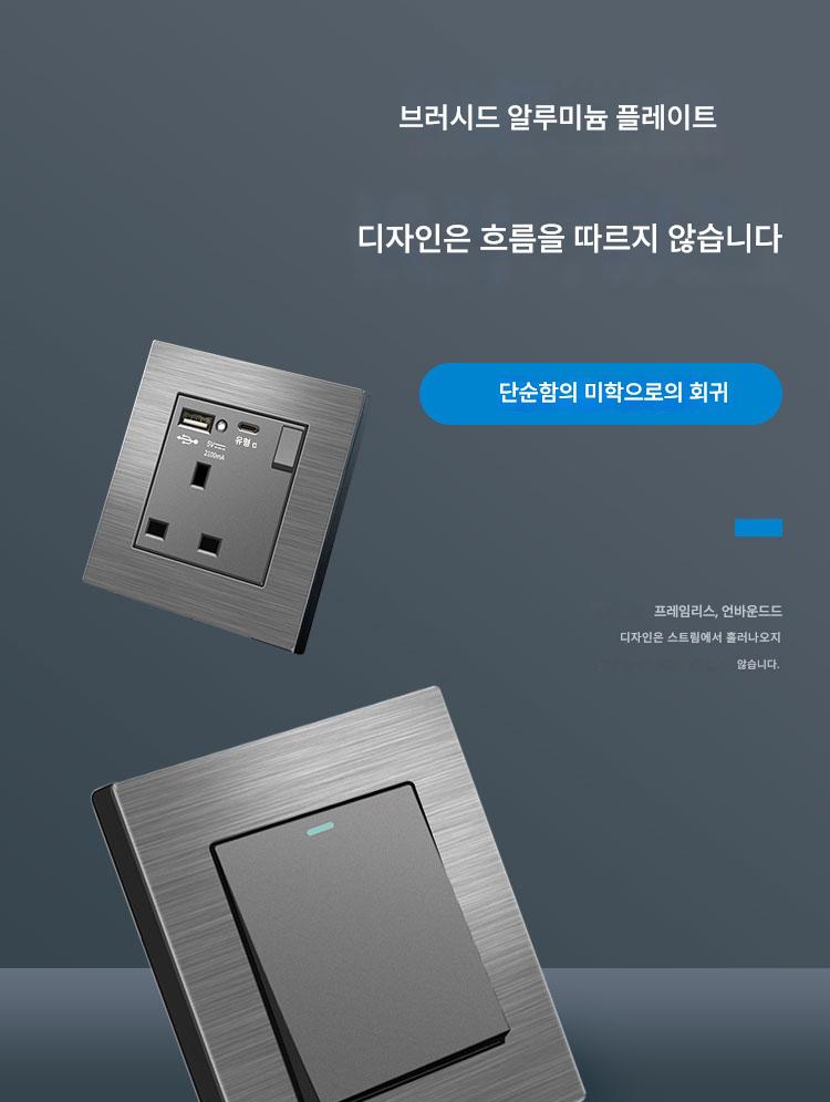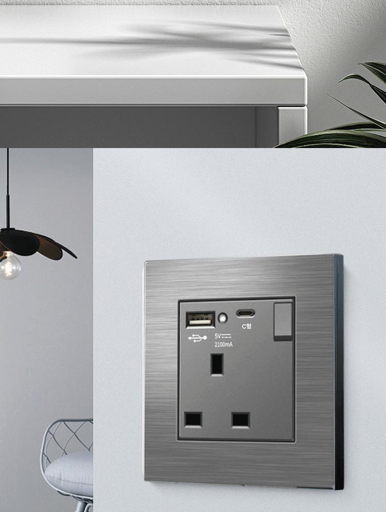 영국 전기 소켓 USB TypeC 고속 충전 벽면 전원 공급 장치 13A 조명 스위치 패널 알루미늄 플레이트 브러시드 그레이