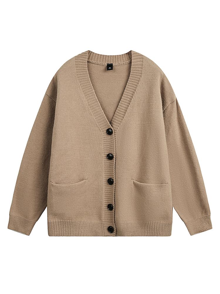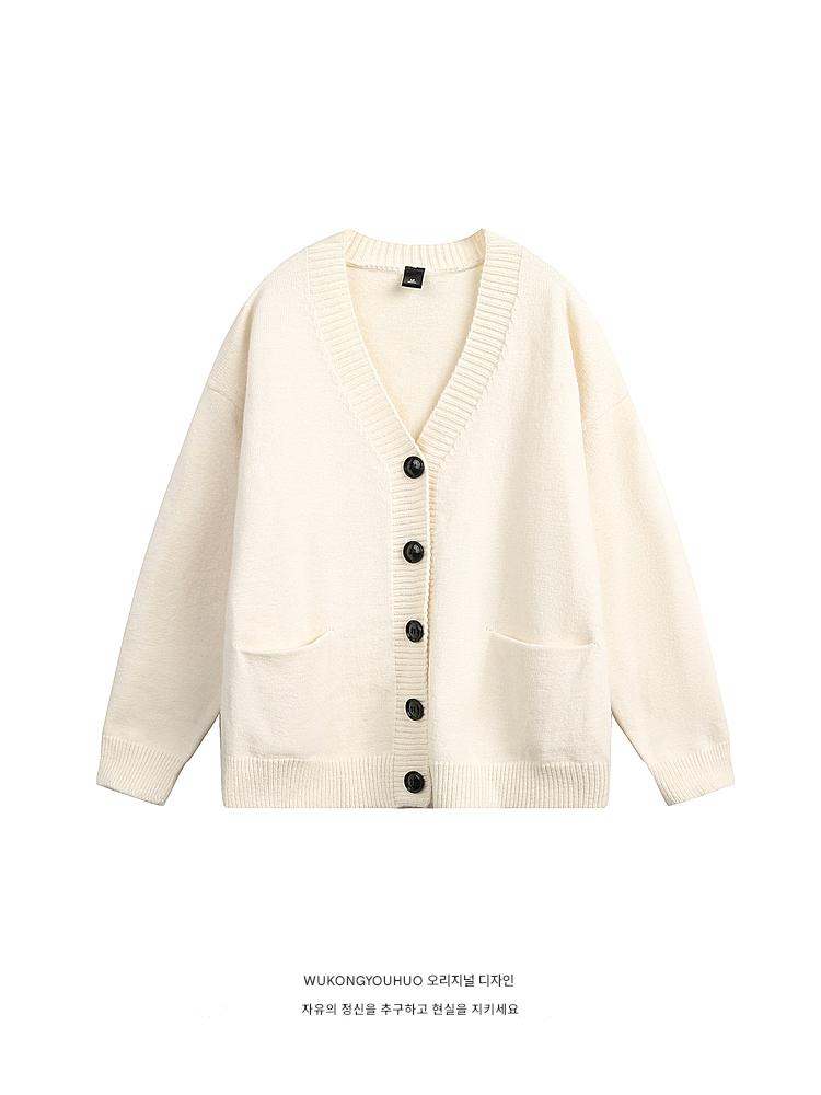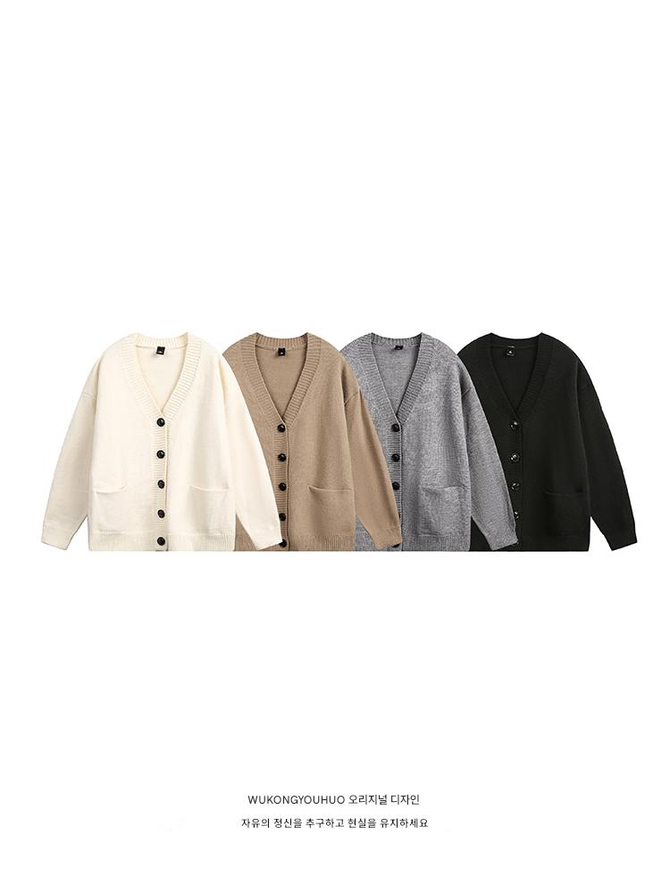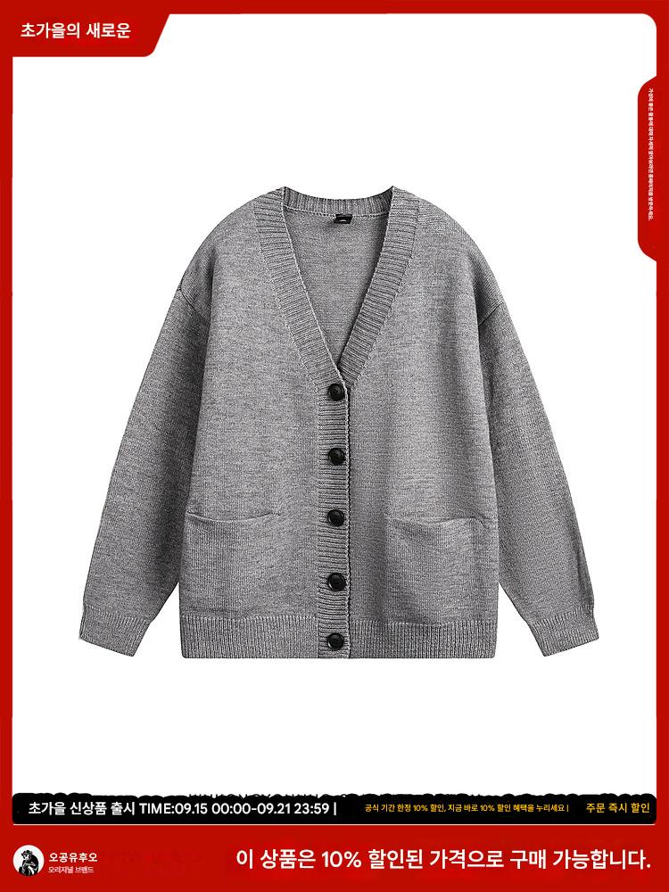 오공은 상품 레트로 일본식 느긋한 스타일 카디건 V넥 스웨터 남녀 가을 느슨한 커플 캐주얼 스웨터
