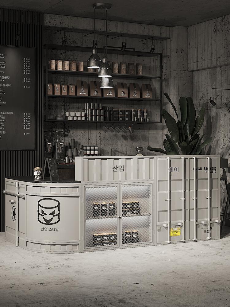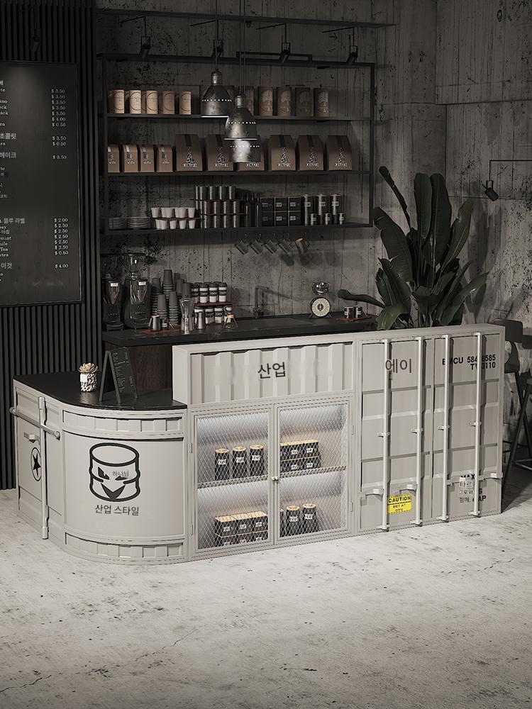 오래된 철공소 산업 스타일 바 카운터 금전 등록기 바 카페 코너 카운터 서양식 레스토랑 복고풍 프런트 데스크 접수 데스크