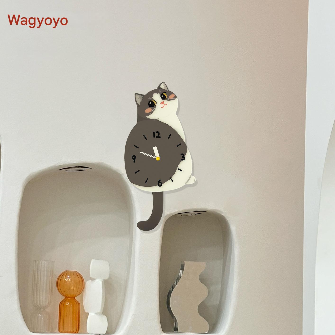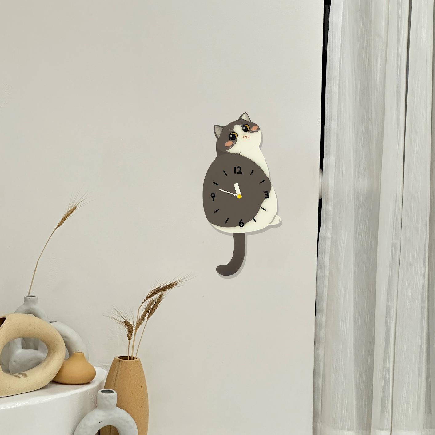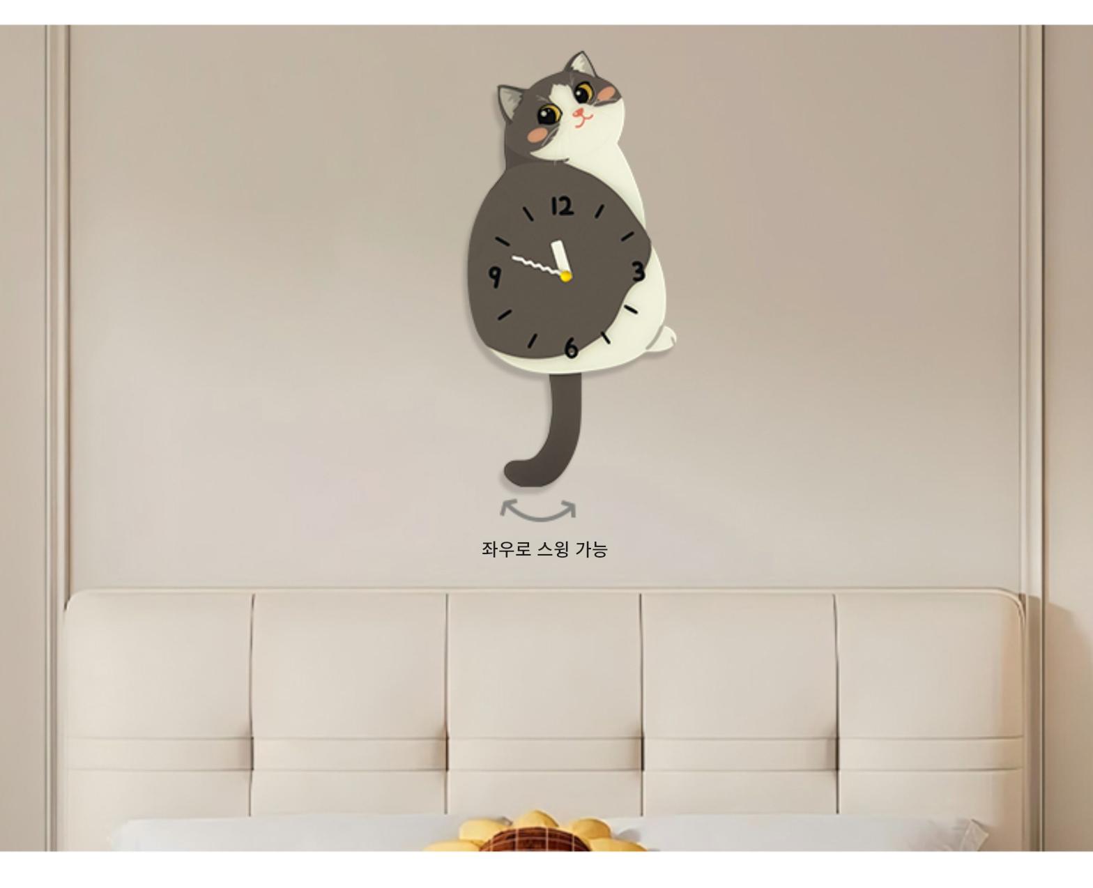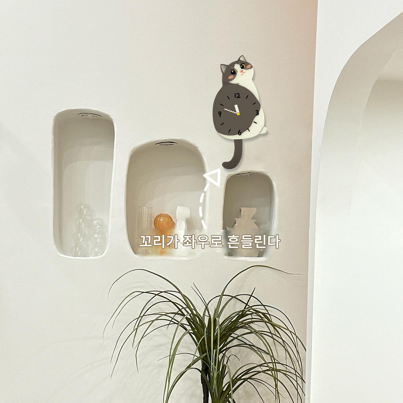 오리지널 블루 앤 화이트 고양이 벽시계 새끼 고양이 벽시계 꼬리가 흔들릴 수 있는 크리에이티브 시계 입주 선물 무음 벽시계