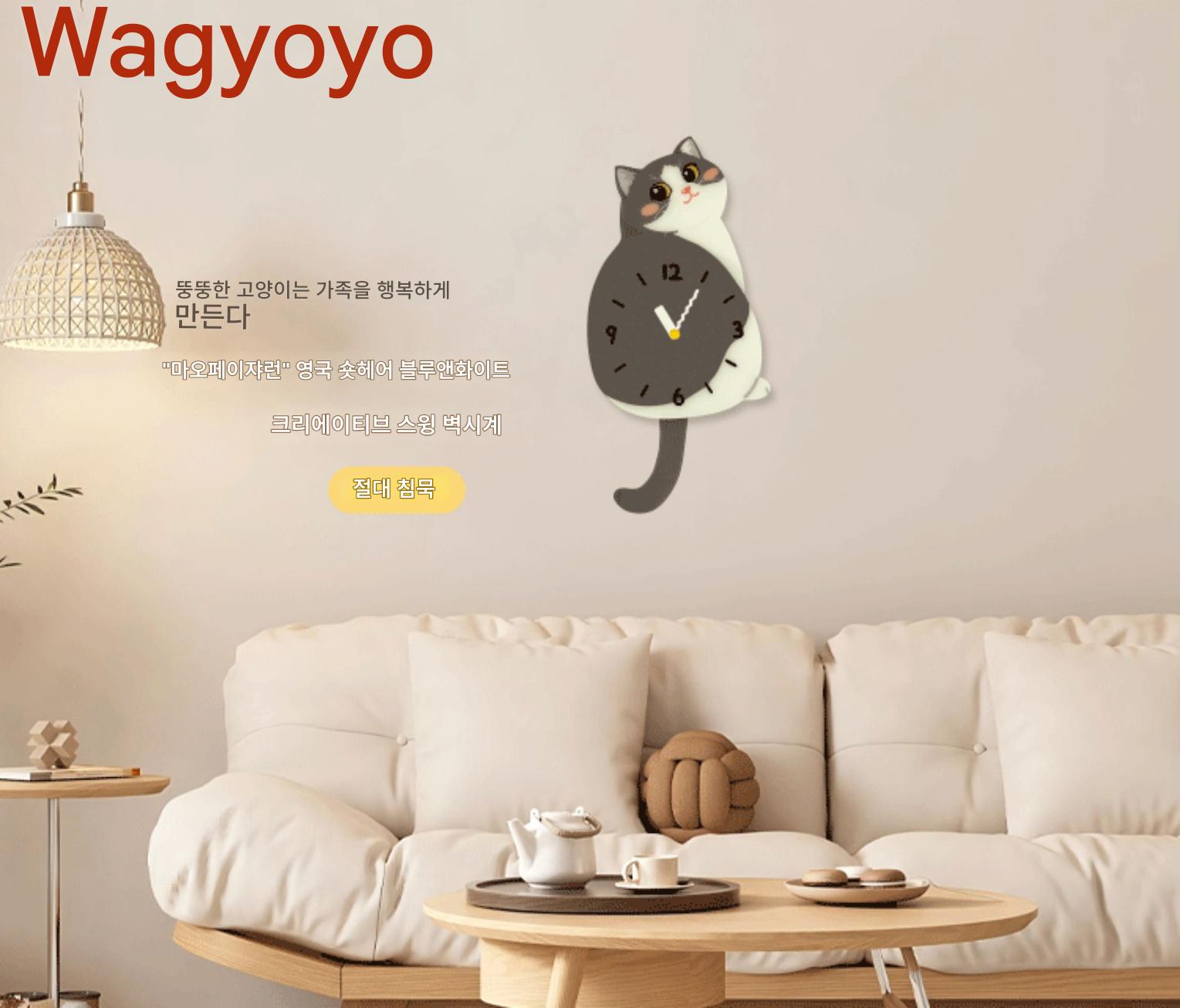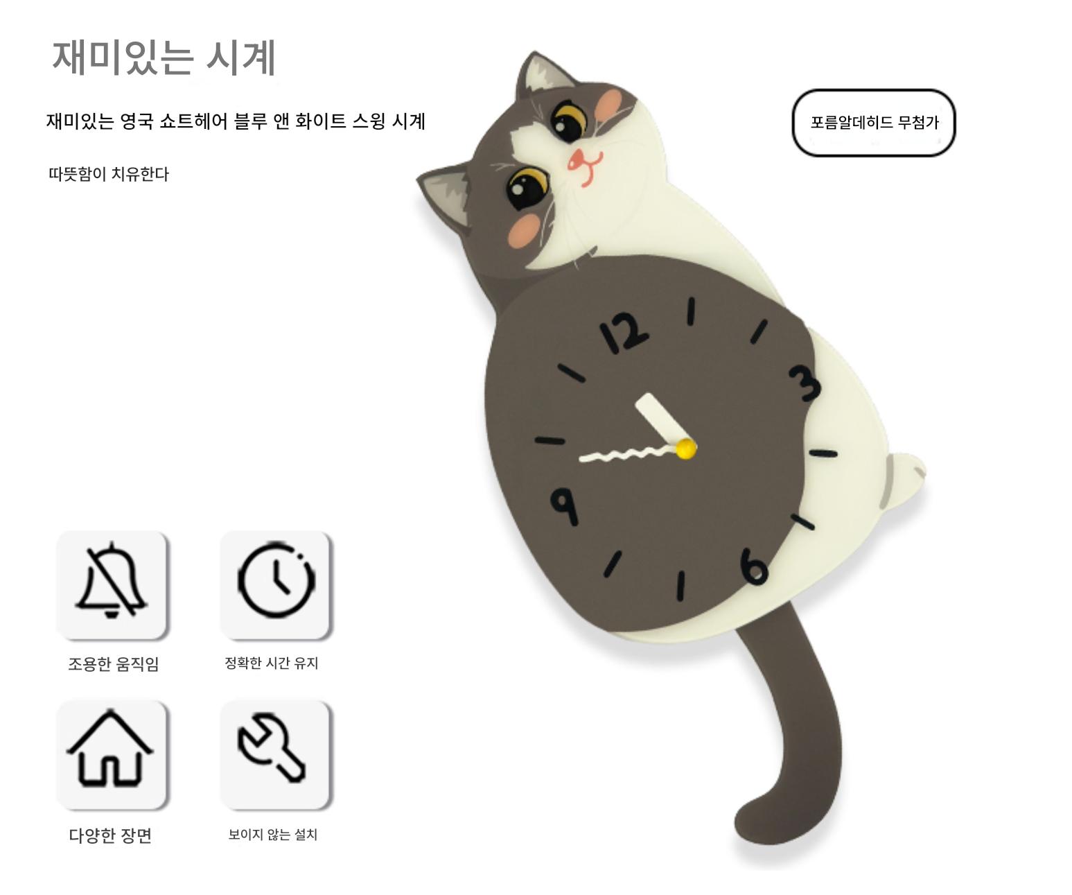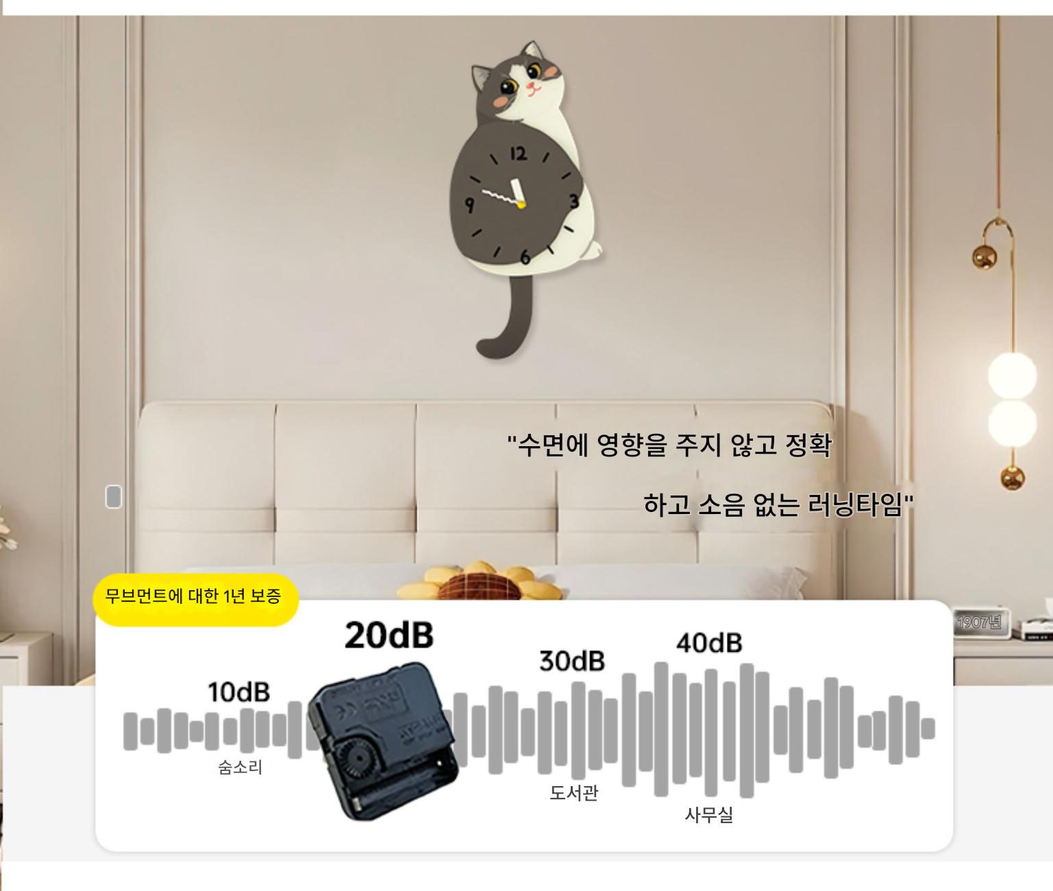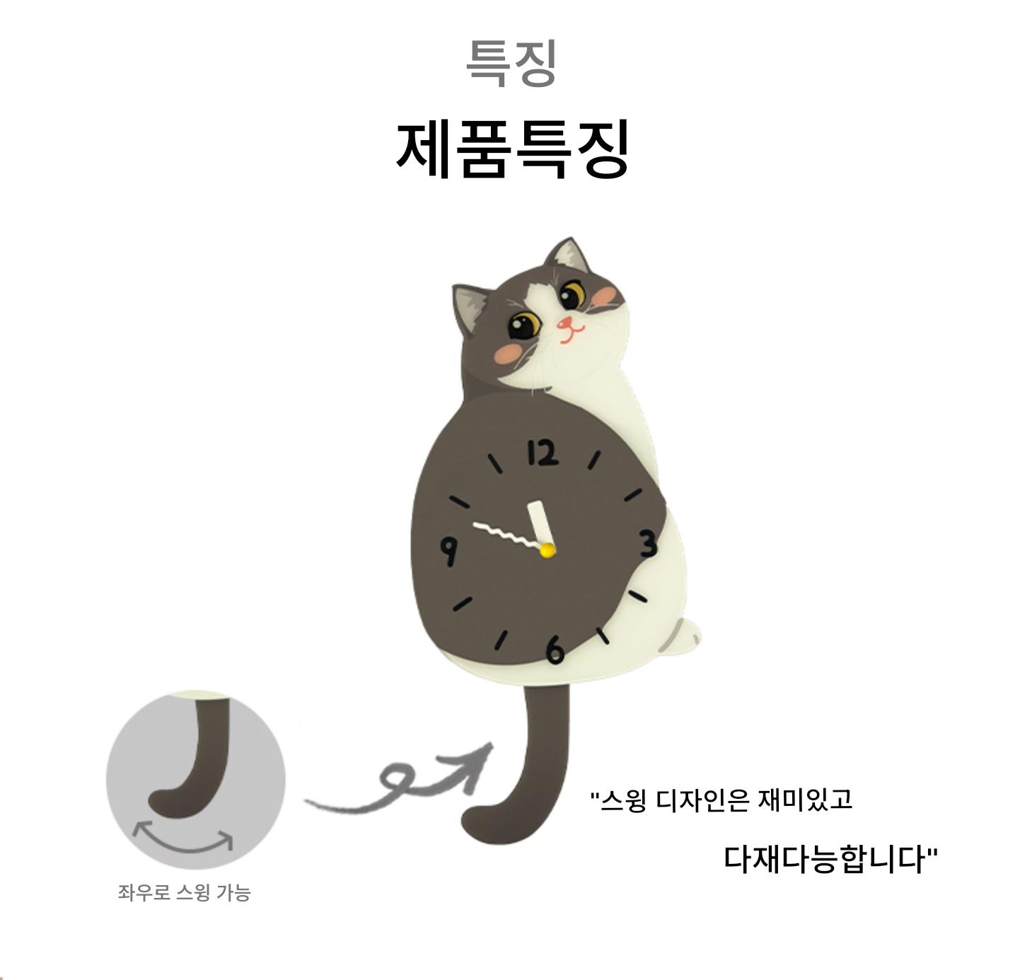 오리지널 블루 앤 화이트 고양이 벽시계 새끼 고양이 벽시계 꼬리가 흔들릴 수 있는 크리에이티브 시계 입주 선물 무음 벽시계