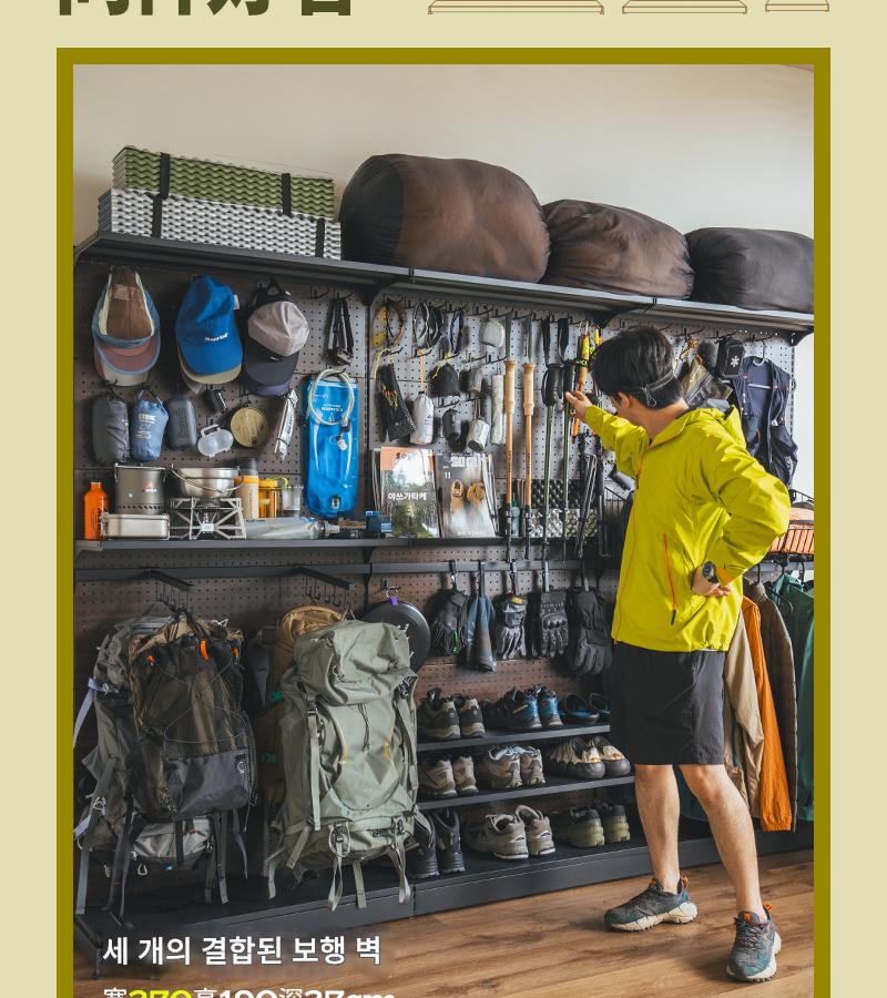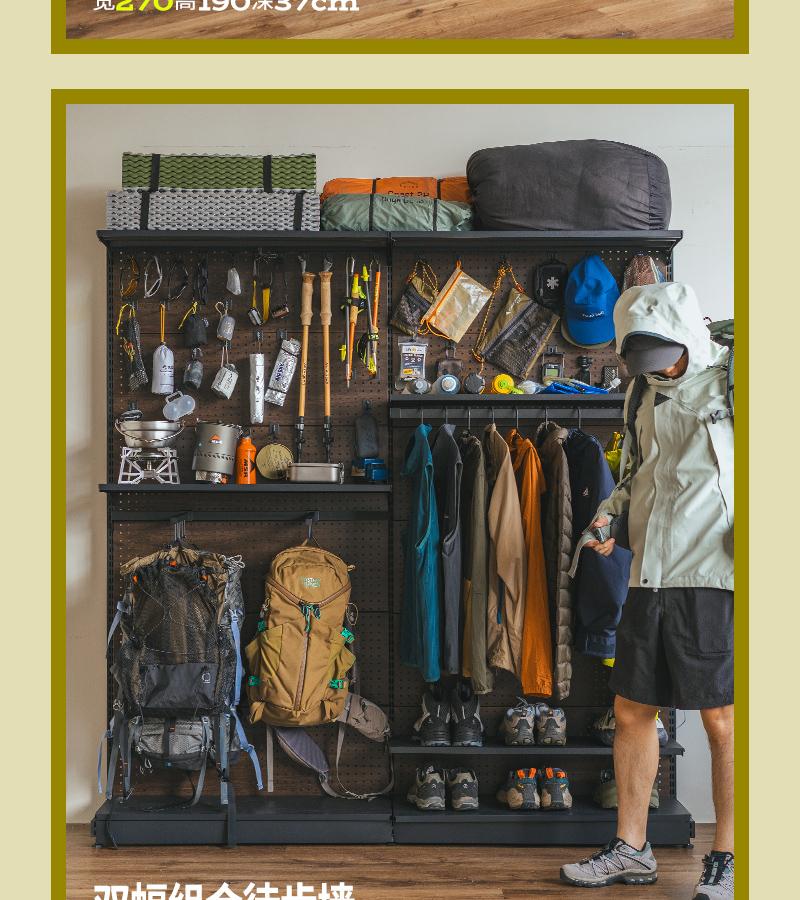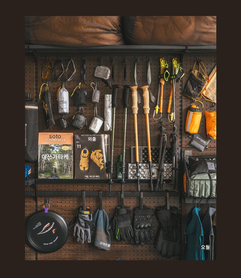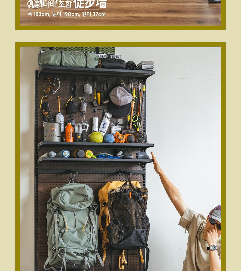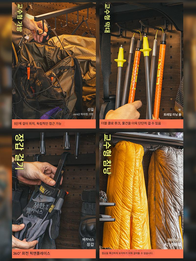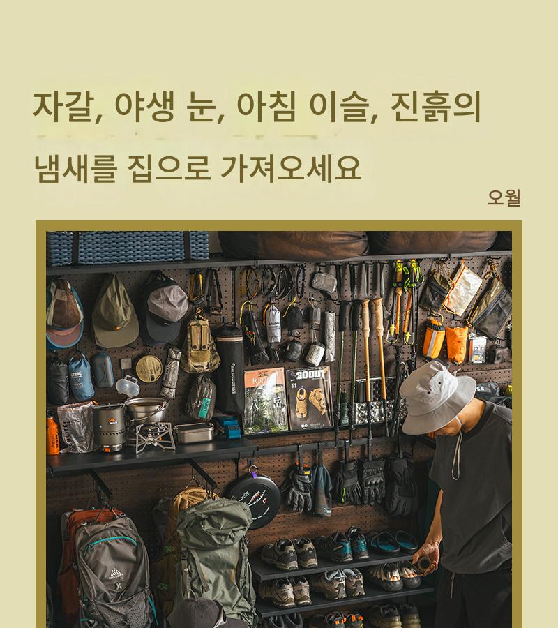 오월 홀보드 야외 하이킹 장비 랙 캠핑 금속 선반 호두색 디스플레이 수납 벽걸이