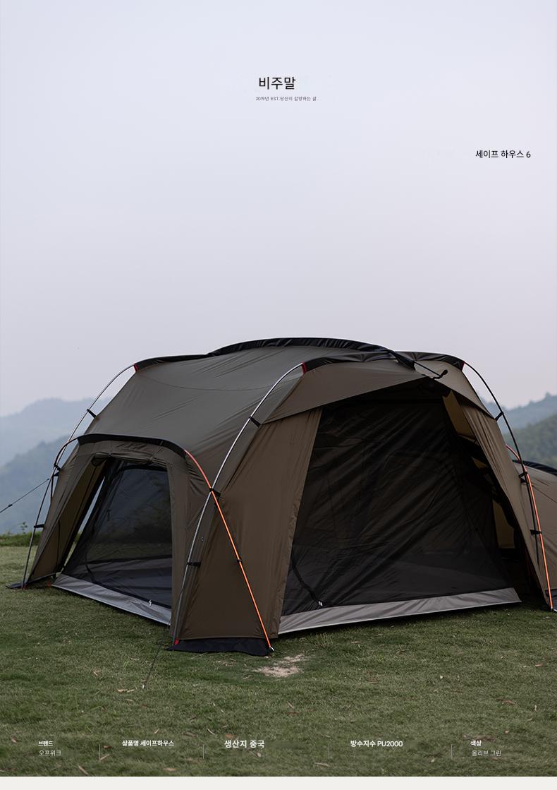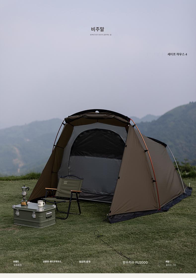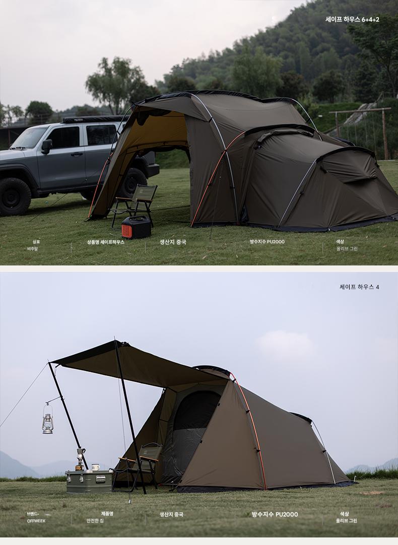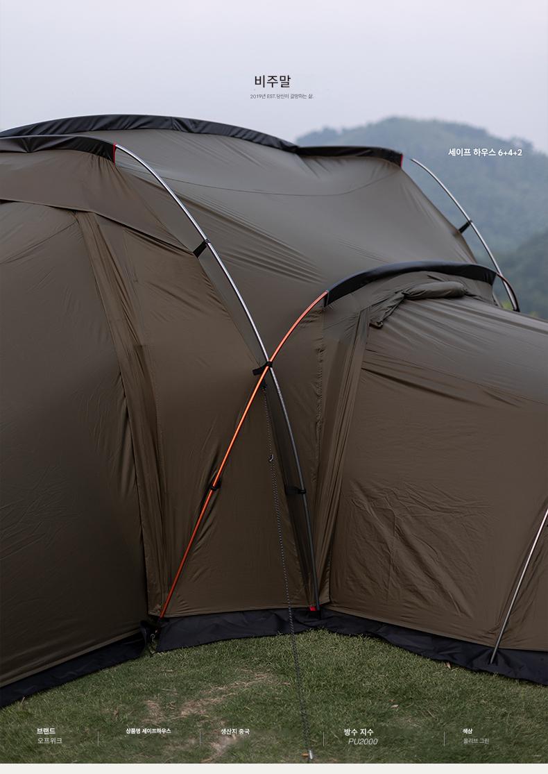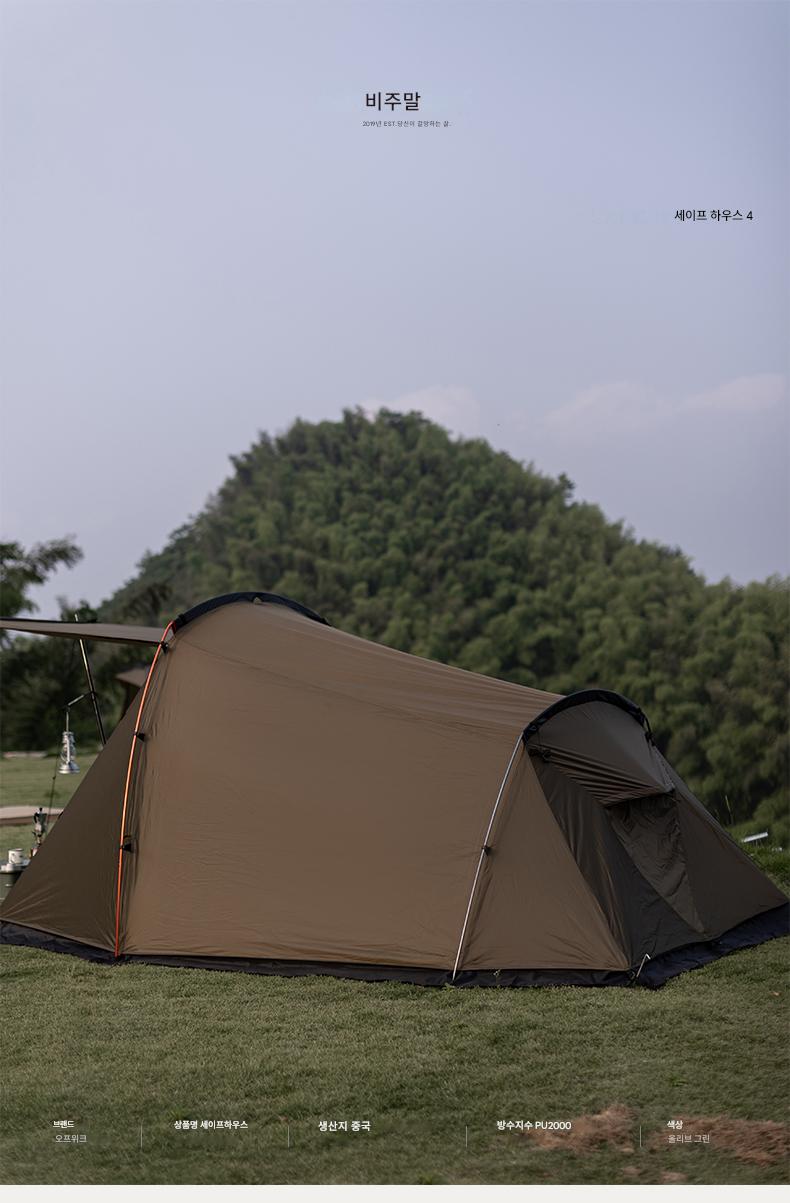 오프위크 올리브그린 세이프하우스 터널텐트 아웃도어 절묘 캠핑 프로페셔널 캠핑장비 침실 2개, 거실 1개