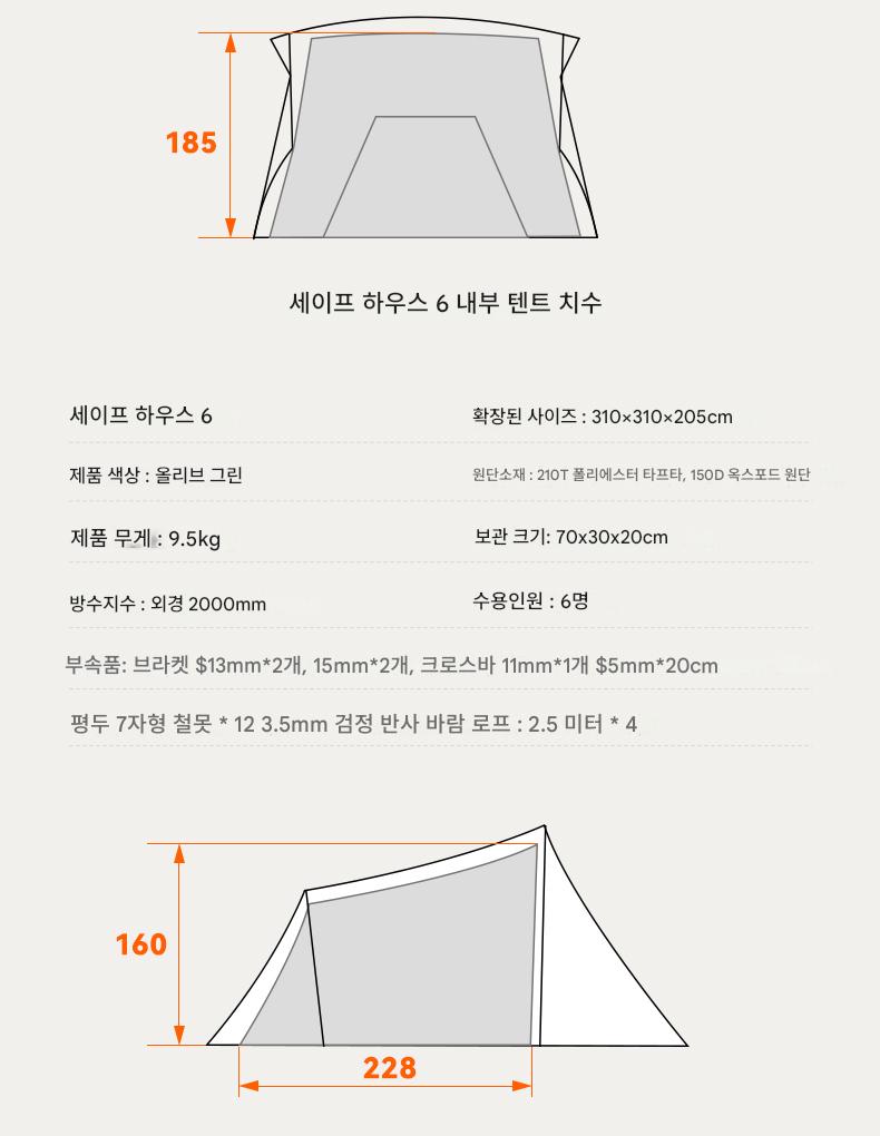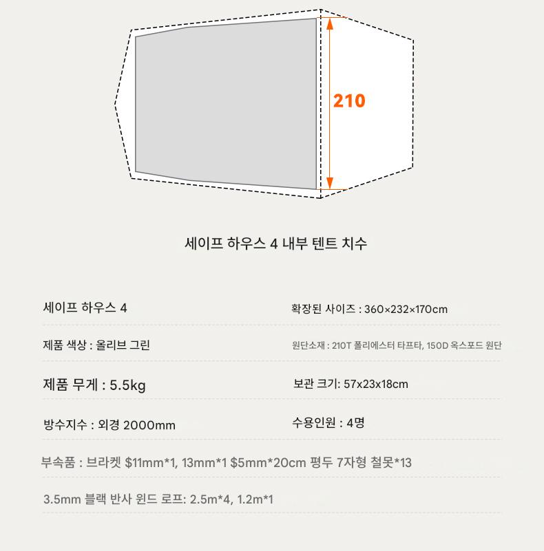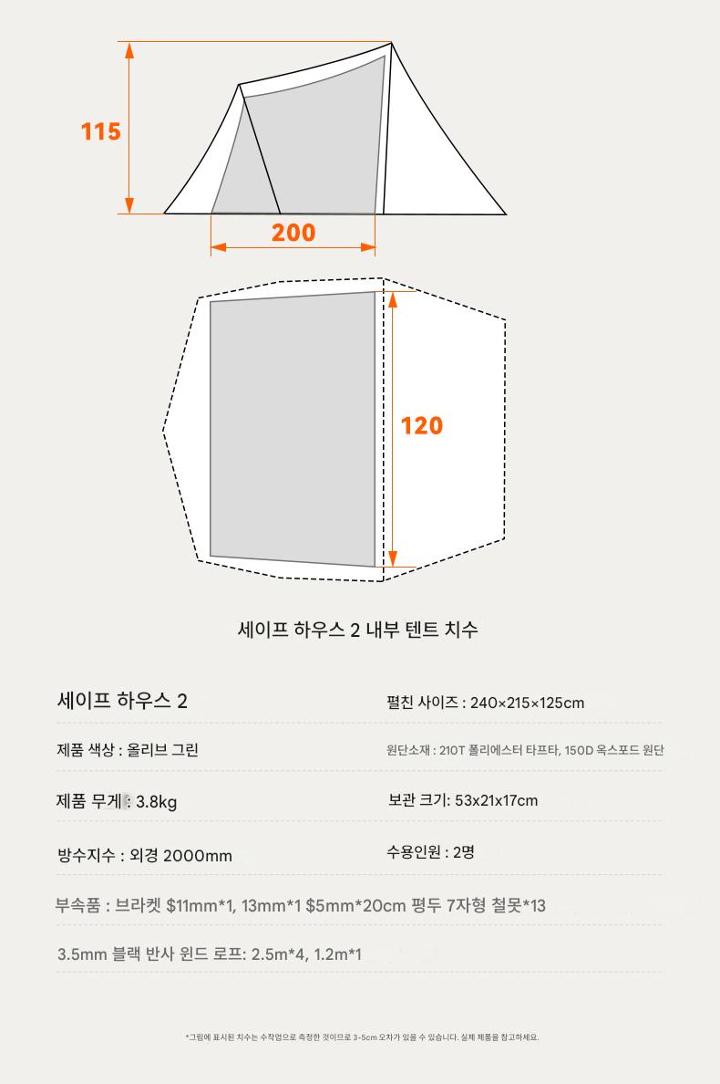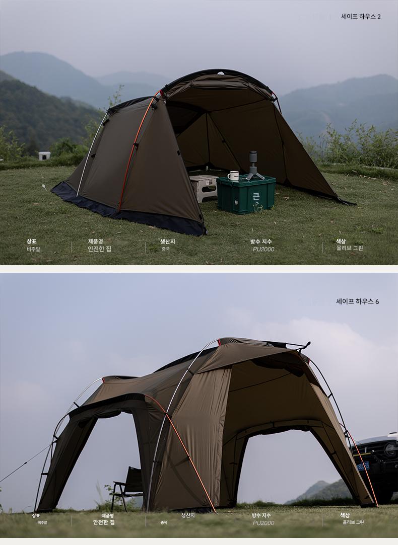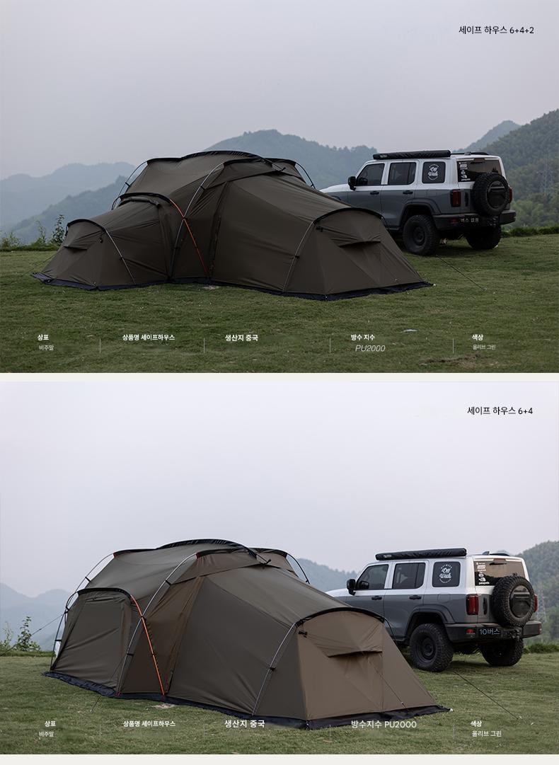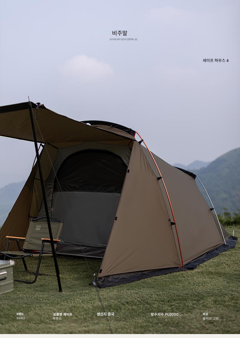 오프위크 올리브그린 세이프하우스 터널텐트 아웃도어 절묘 캠핑 프로페셔널 캠핑장비 침실 2개, 거실 1개