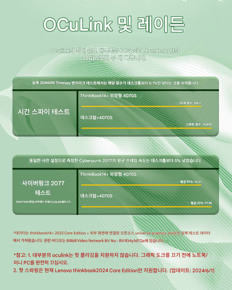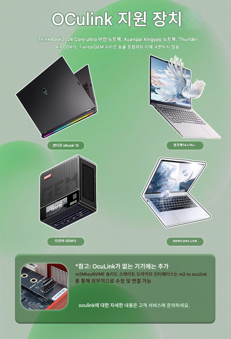 오픈소스 유니버스 OCulink 그래픽 독 EG01H2는 ATX 전원 공급 장치에 적응하고 Thinkbook 핫 플러그 tgx를 지원합니다.