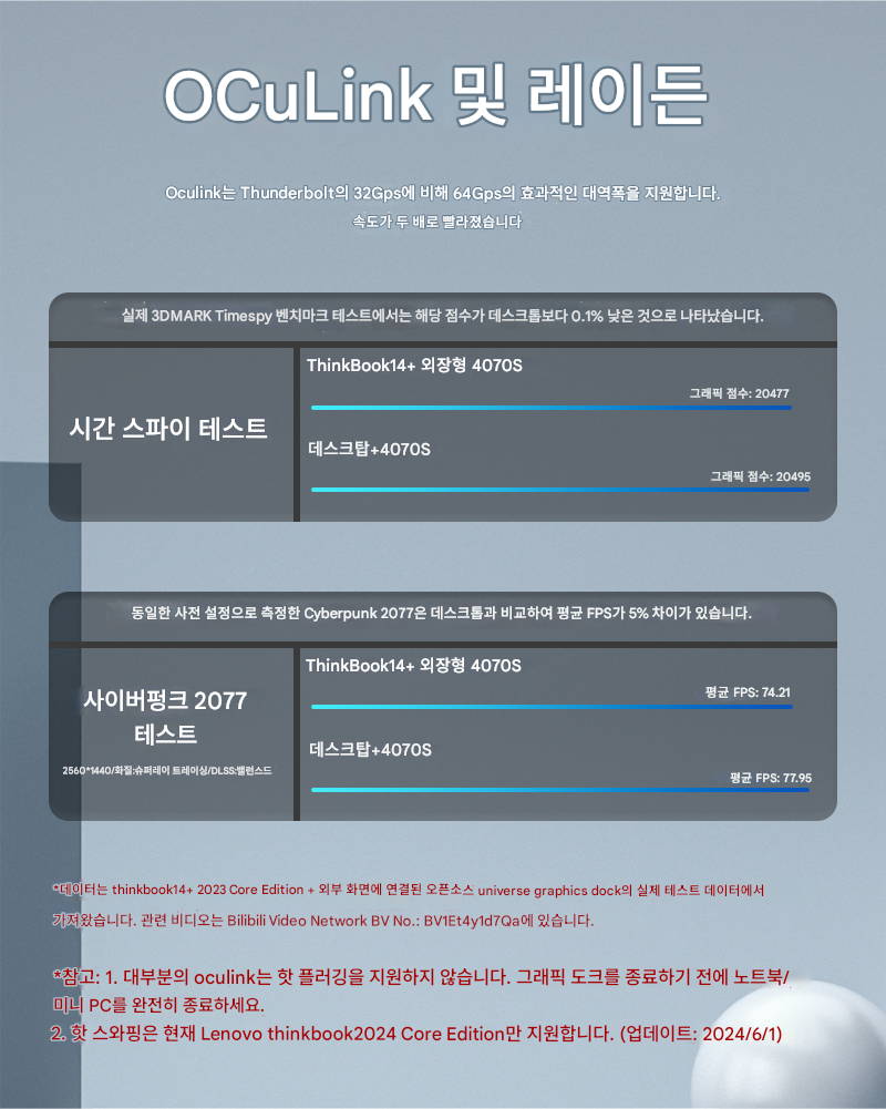 오픈소스 유니버스 OCulink 그래픽 독 EG01R3, ThinkBook 핫스왑 지원, 4090 그래픽 카드