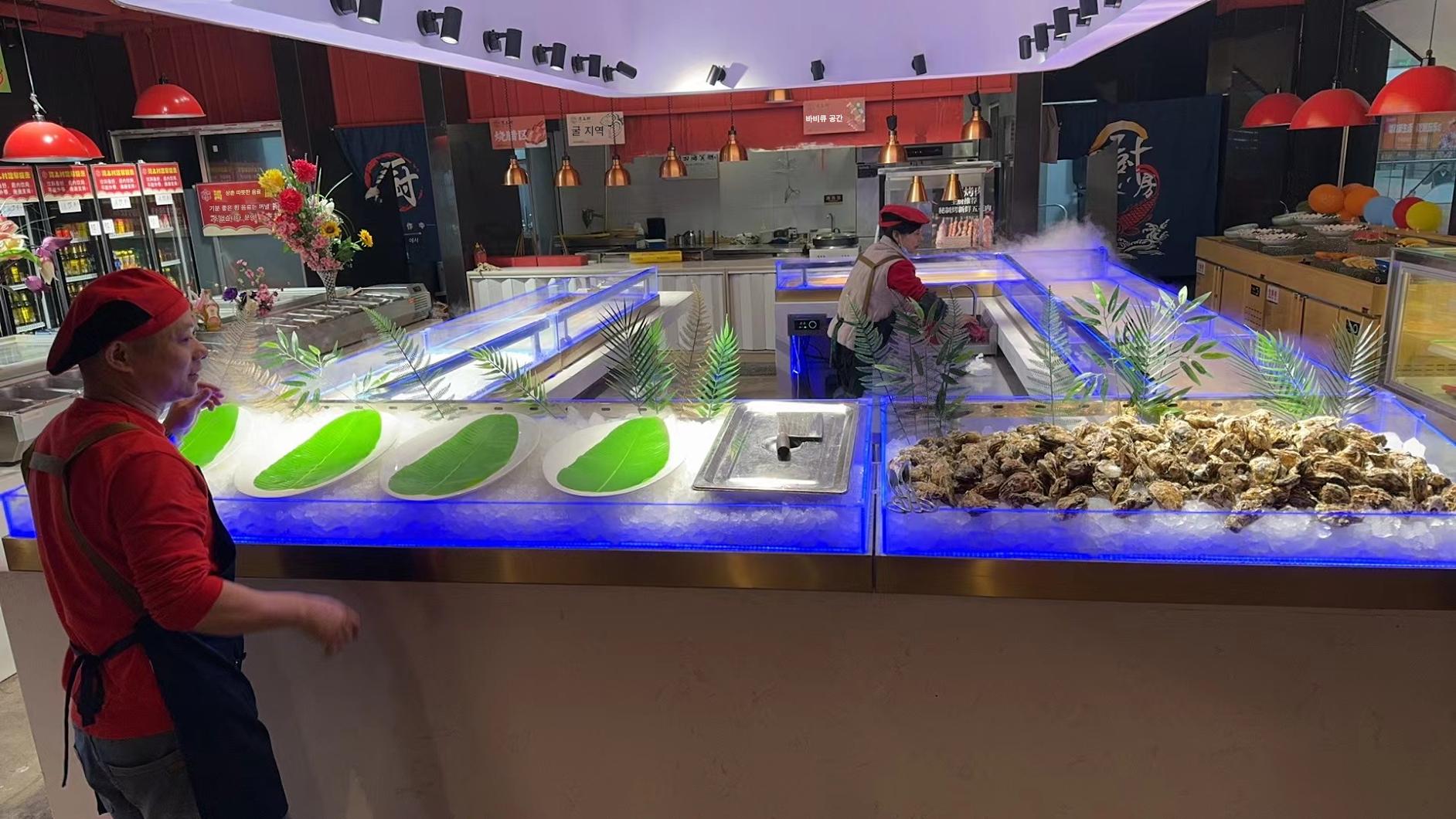 오픈 아이스 테이블 해산물 디스플레이 캐비닛 상업용 호텔 뷔페 레스토랑 핫팟 주문 냉장 스테인리스 스틸 조리 식품 아이스 통