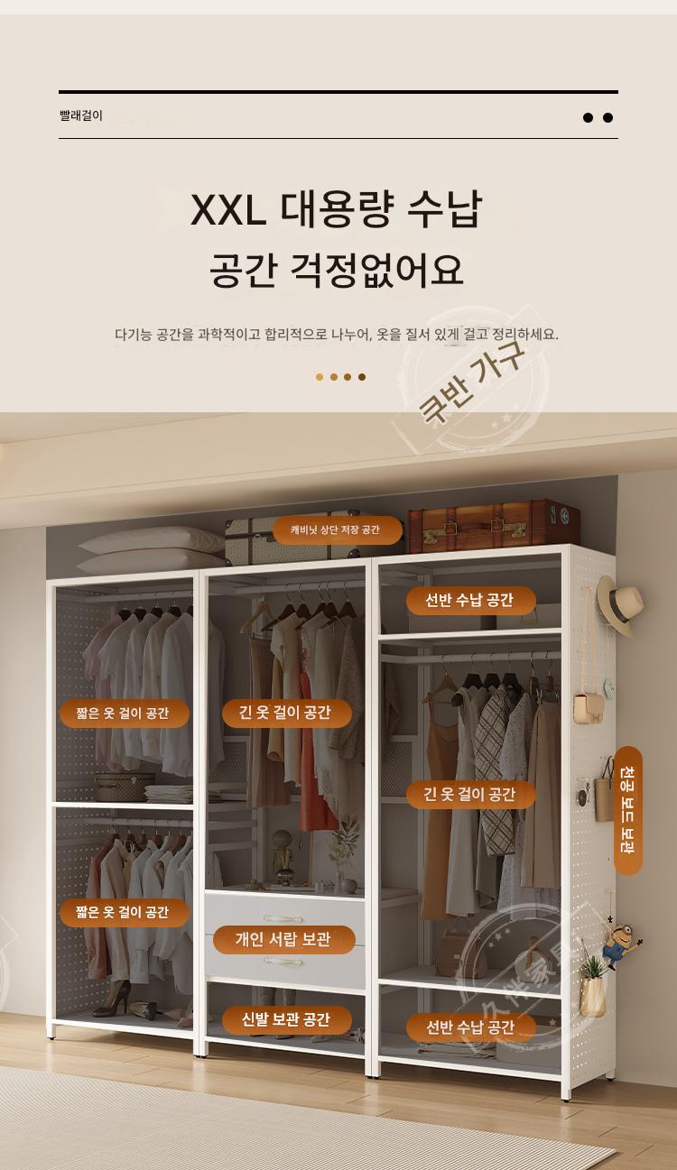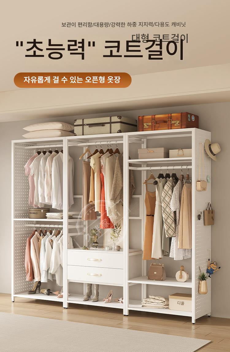 오픈 코트 랙 침실 홈 옷장 워크인 클로젯 바닥형 조합 랙 맞춤형 옷걸이