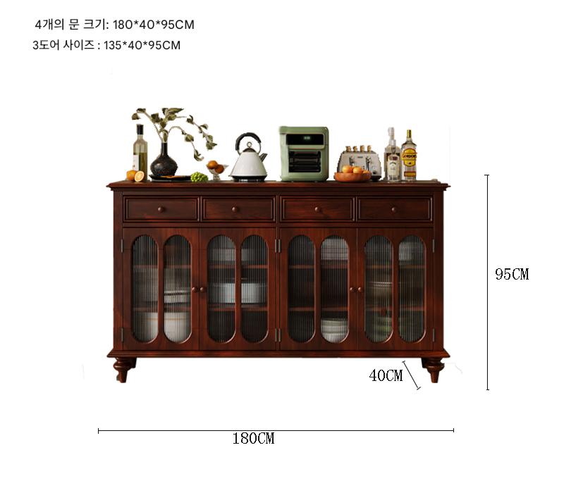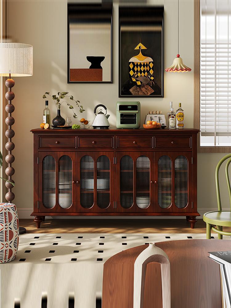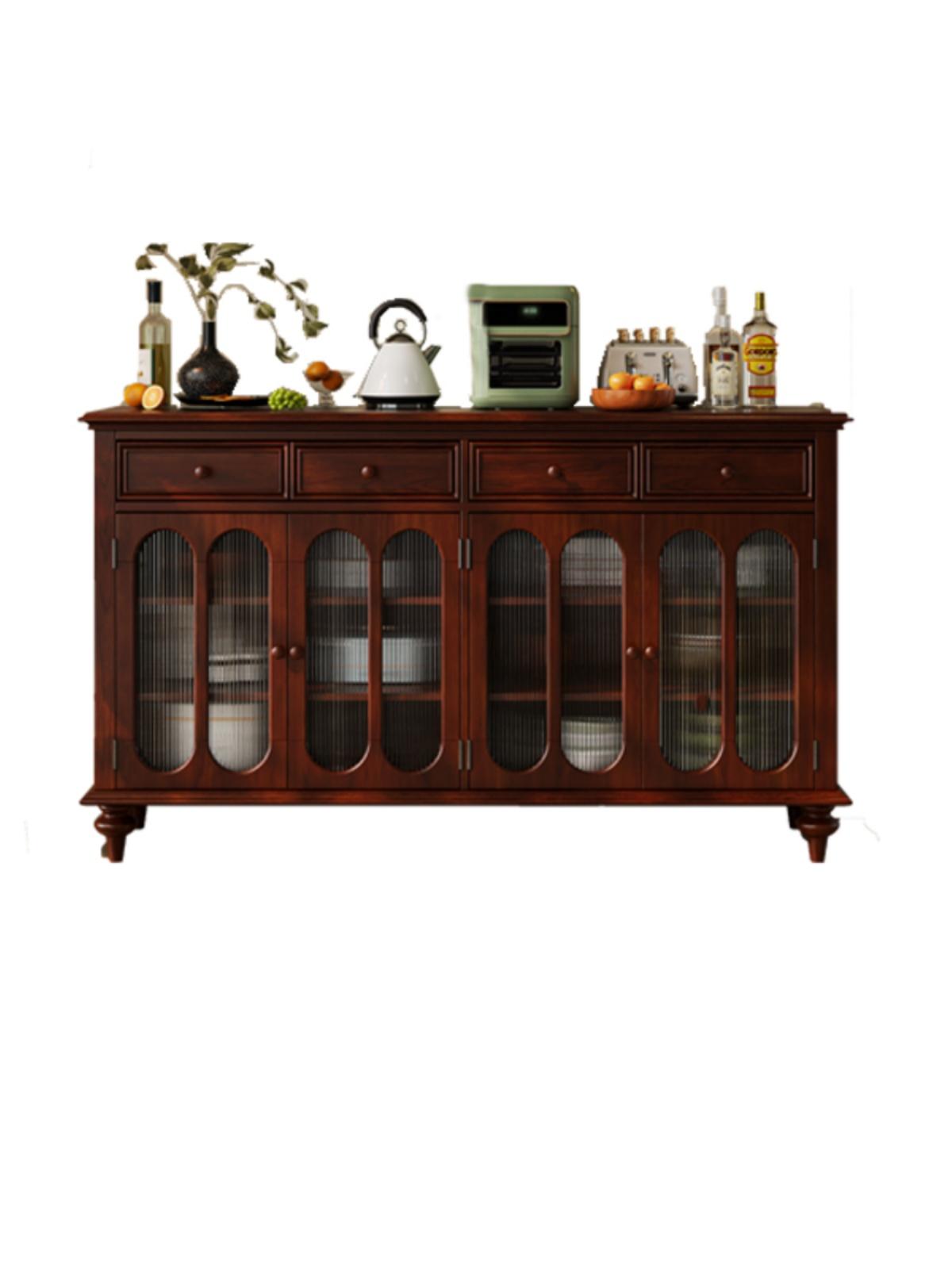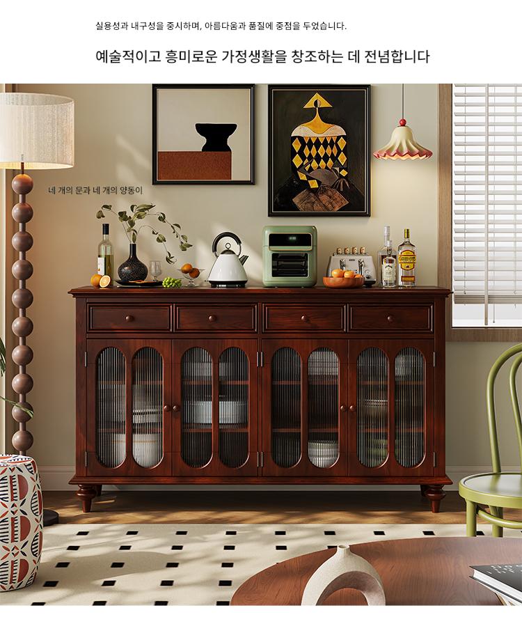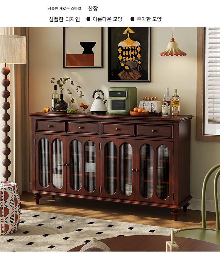 와비사비 스타일 식탁 사이드보드 견고한 나무 티 캐비닛 크림 스타일 와인 캐비닛 창홍 유리 사이드보드 거실 주방 수납 캐비닛