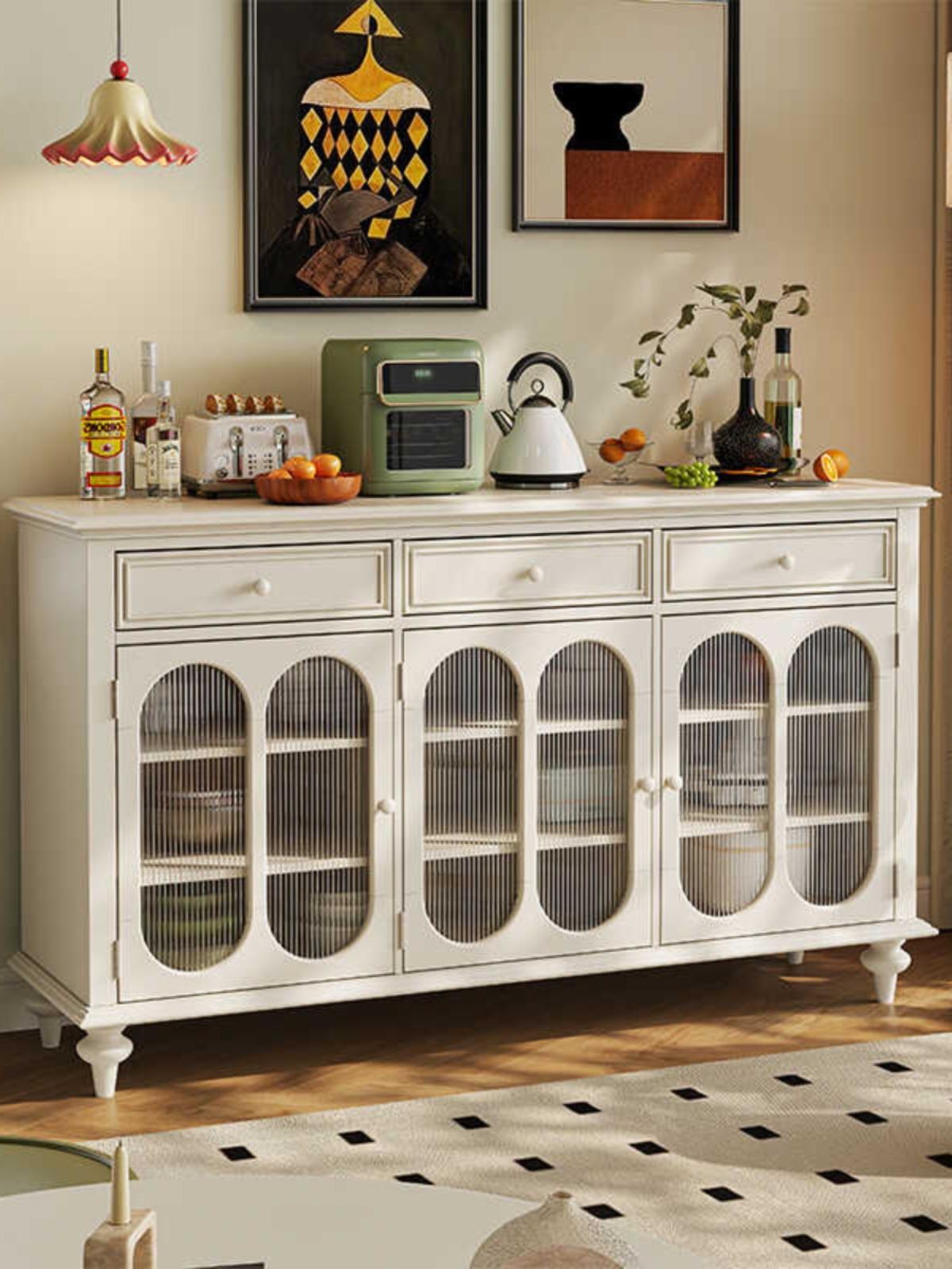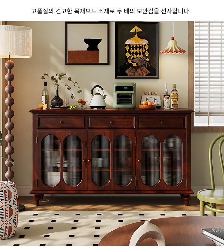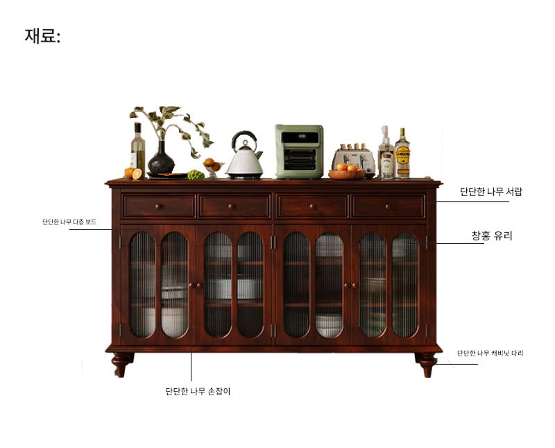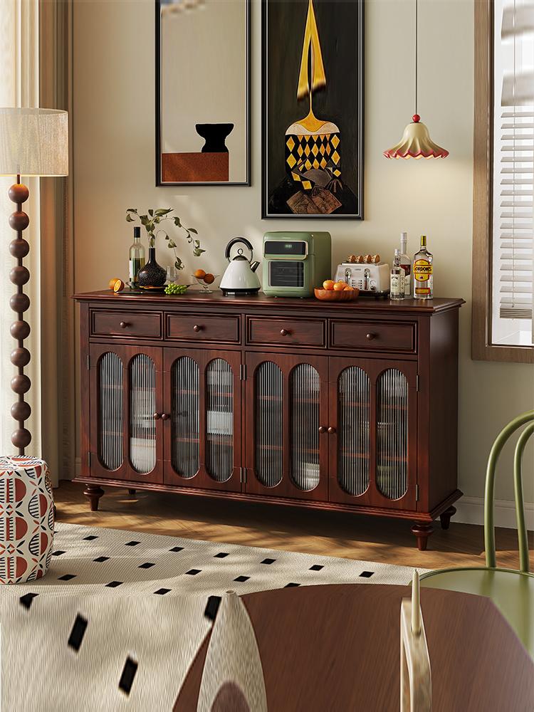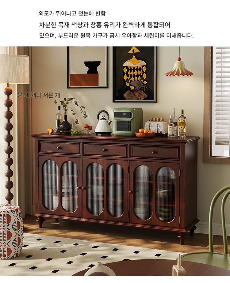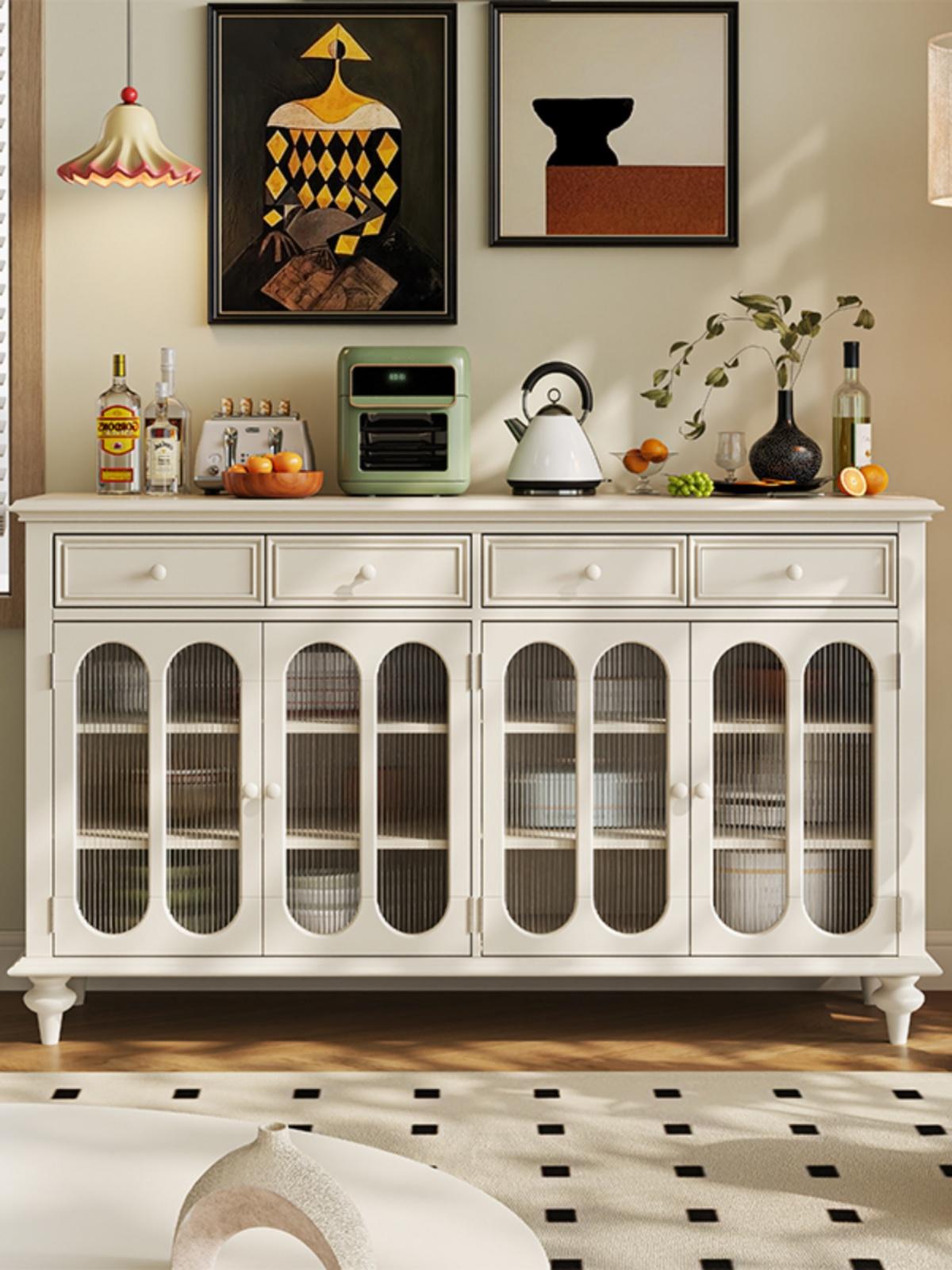 와비사비 스타일 식탁 사이드보드 견고한 나무 티 캐비닛 크림 스타일 와인 캐비닛 창홍 유리 사이드보드 거실 주방 수납 캐비닛