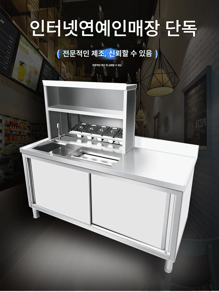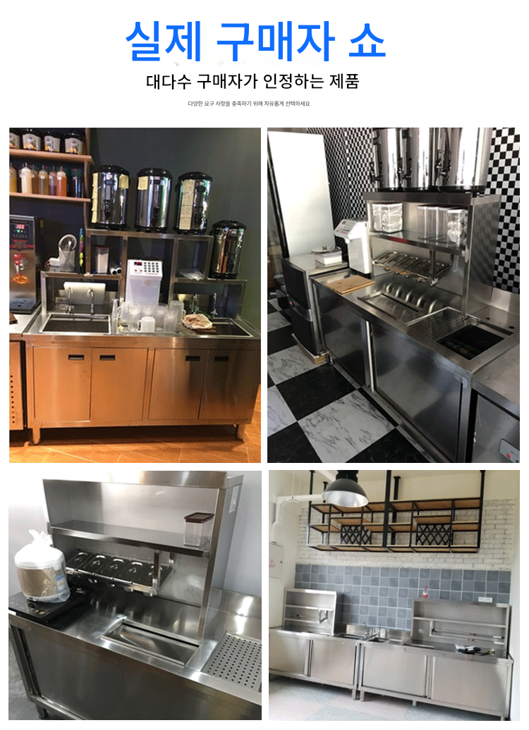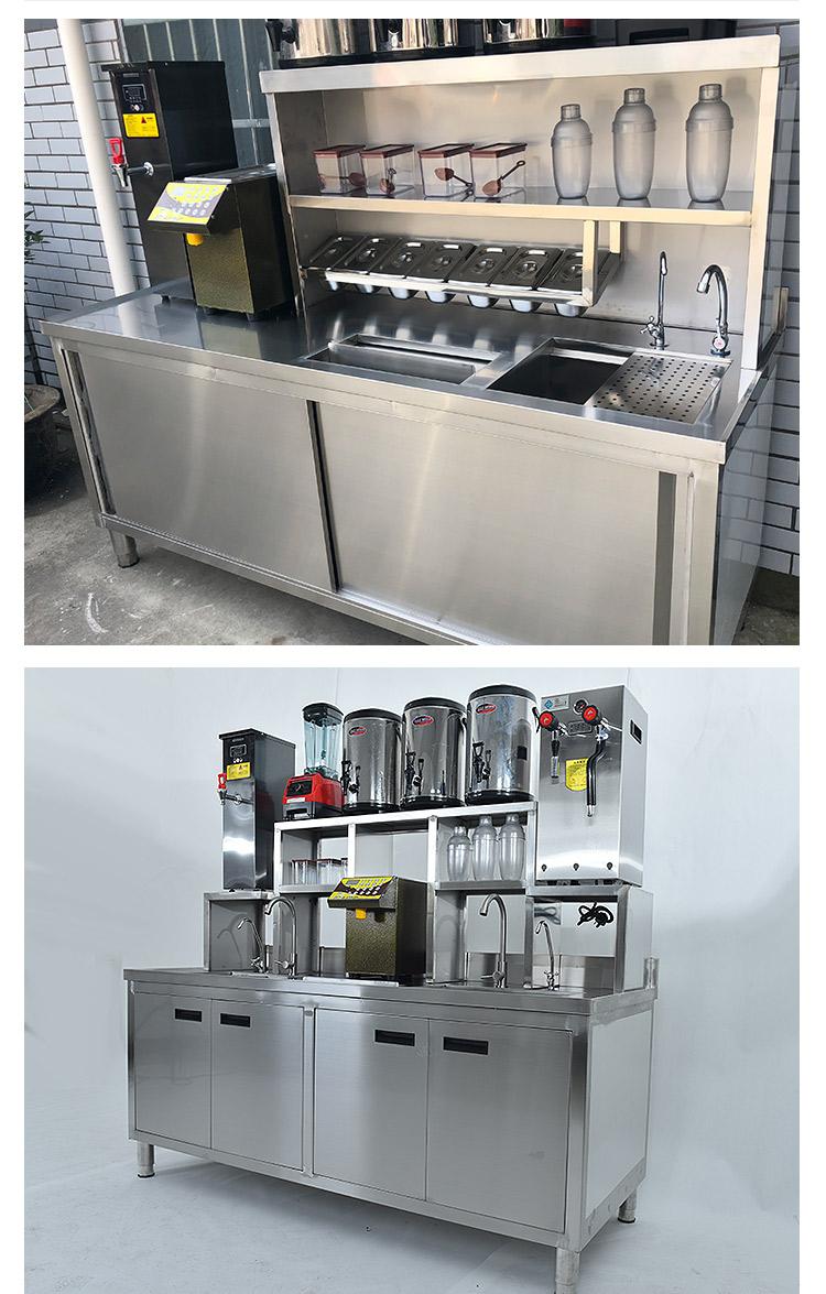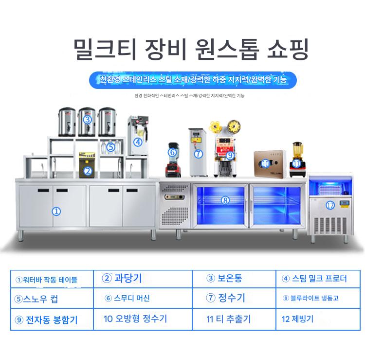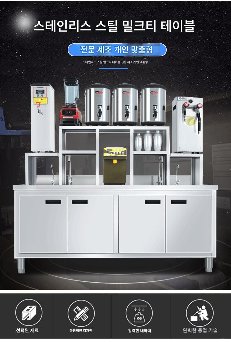 워터바 카운터 상업용 밀크티 숍 수술대 냉장고 냉동고 밀크티 숍 장비 맞춤형 스테인리스 스틸 작업대 전체 세트