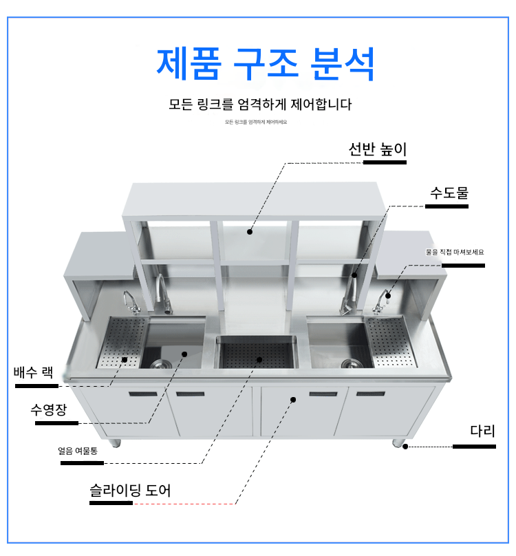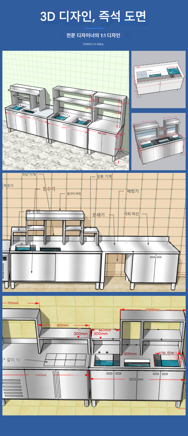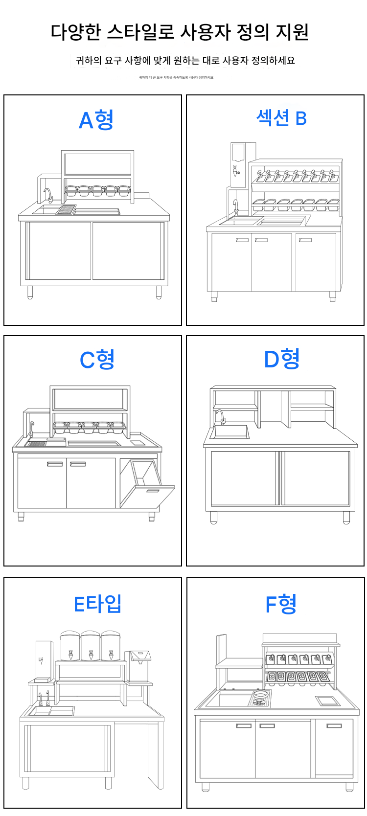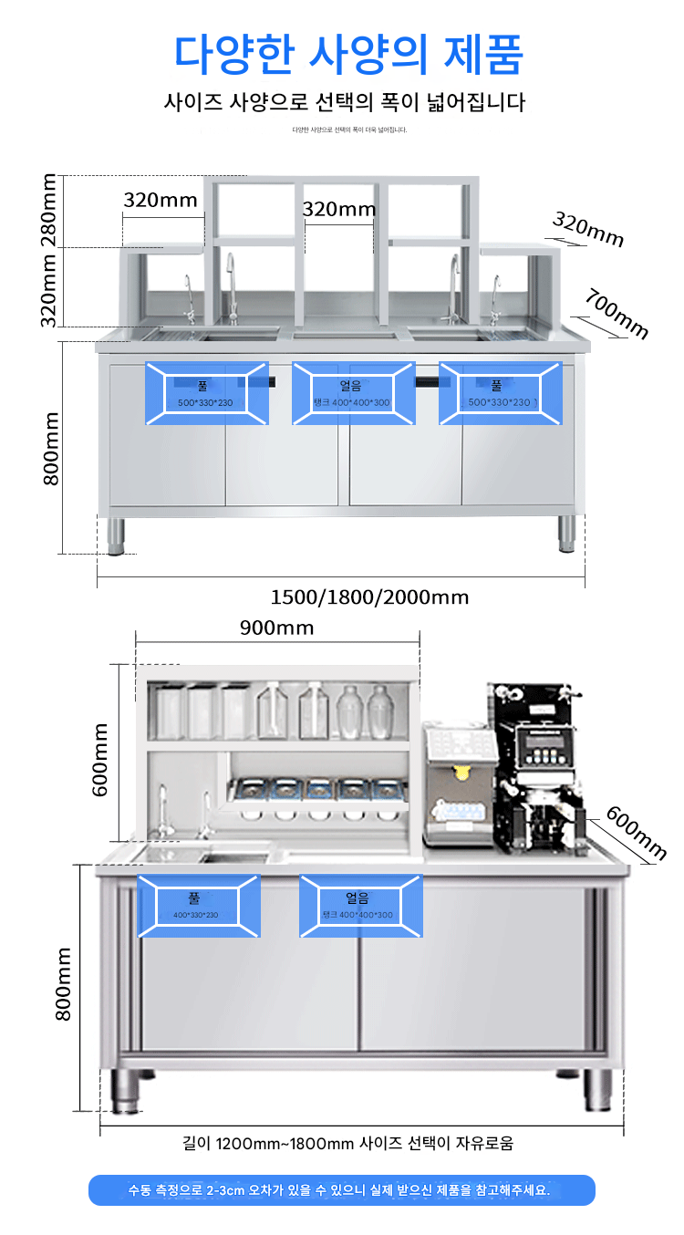 워터바 카운터 상업용 밀크티 숍 수술대 냉장고 냉동고 밀크티 숍 장비 맞춤형 스테인리스 스틸 작업대 전체 세트