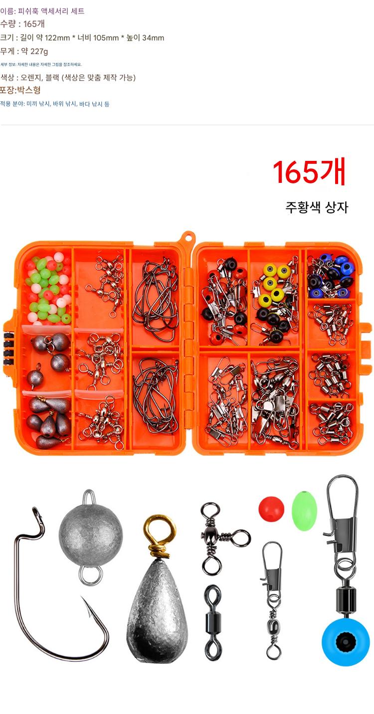 웨이허 165피스 루어 낚싯바늘 액세서리 세트 텍사스 낚시 그룹 바다 낚시 바위 낚시 세트 국경 간 낚시 장비 공급