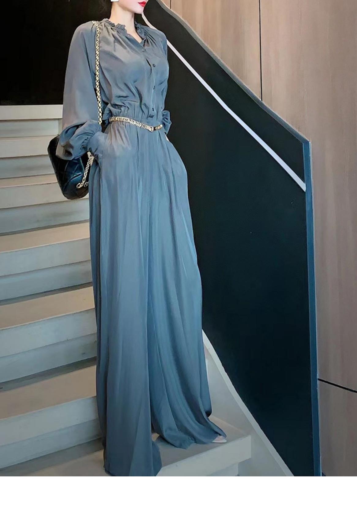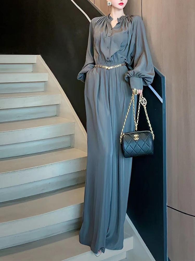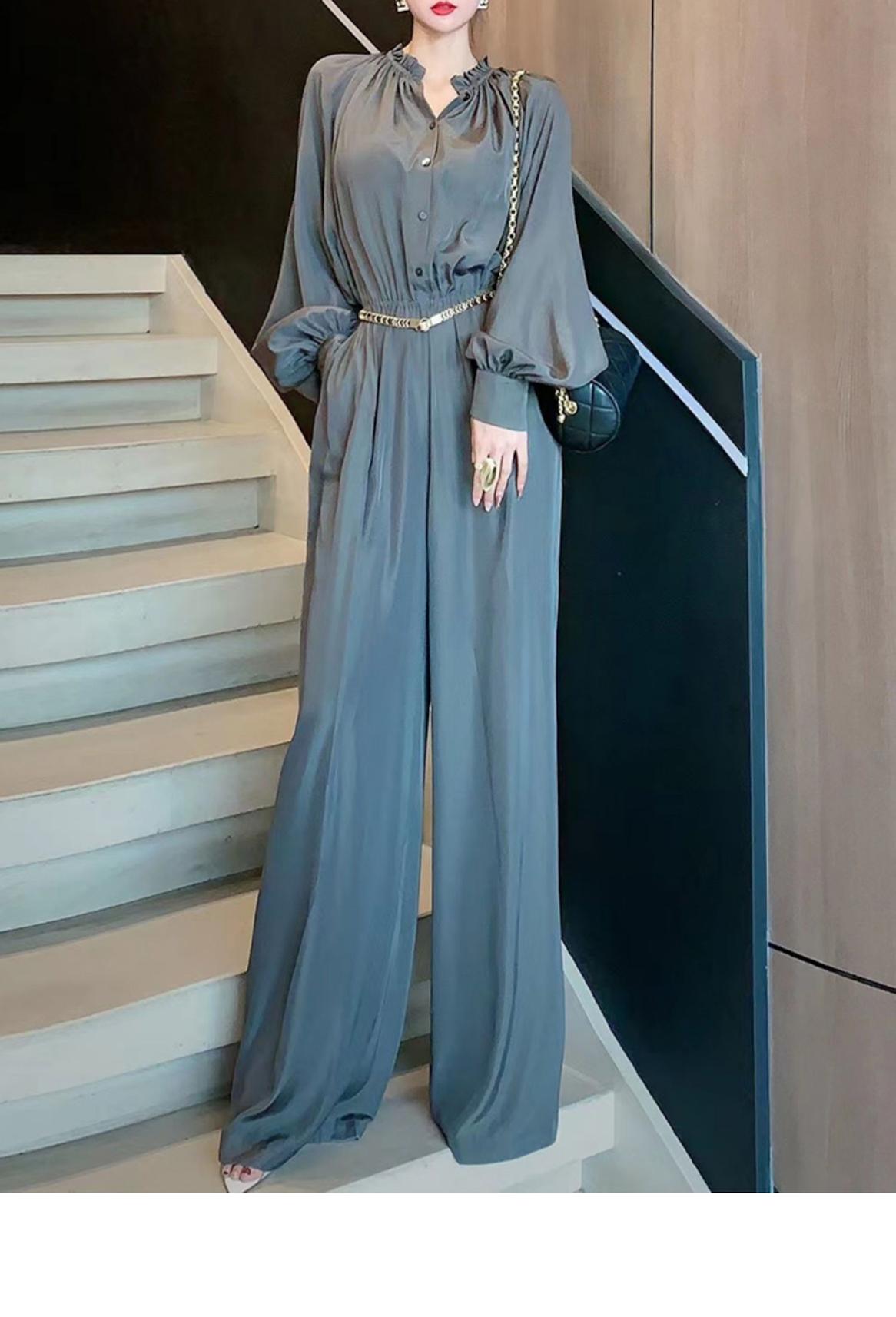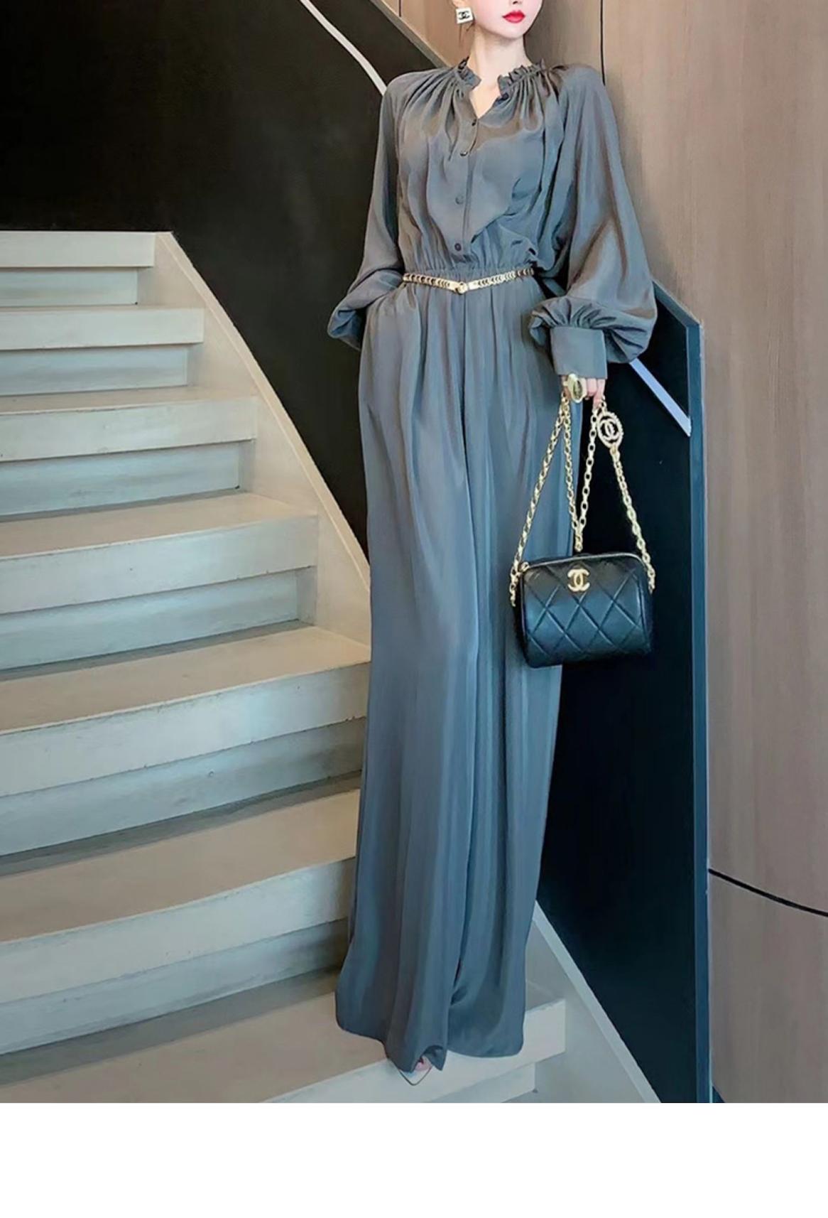 유능한 기질 여성 의류 고급 기질 사교계 명사 배 모양 몸매 날씬한 작은 향기 스타일 회색 새틴 점프수트 가을