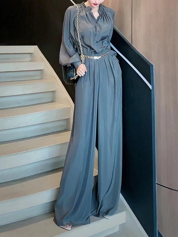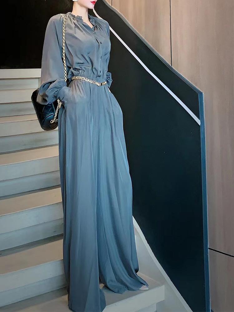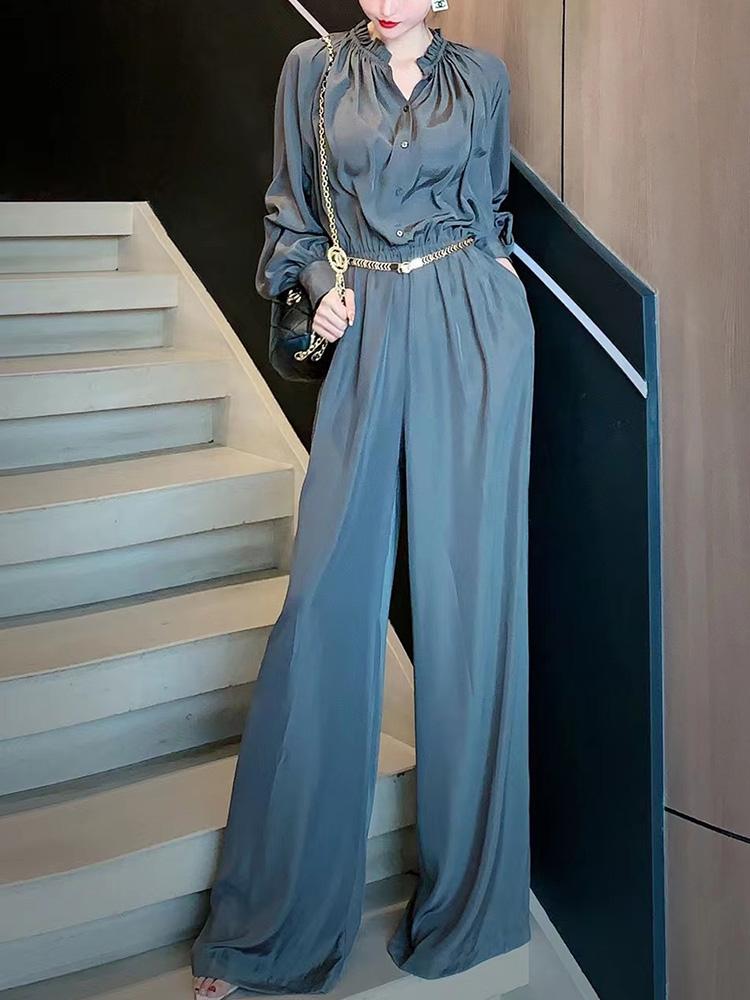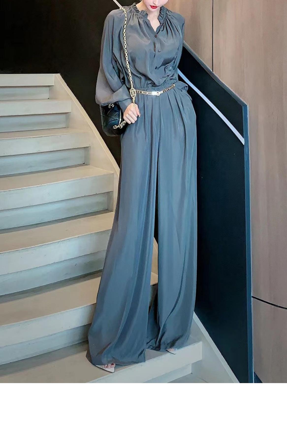 유능한 기질 여성 의류 고급 기질 사교계 명사 배 모양 몸매 날씬한 작은 향기 스타일 회색 새틴 점프수트 가을