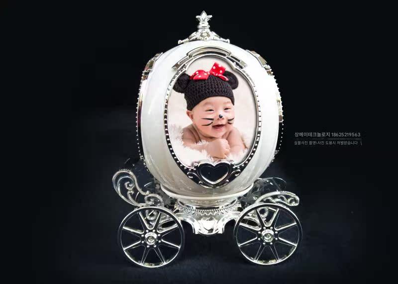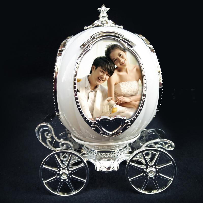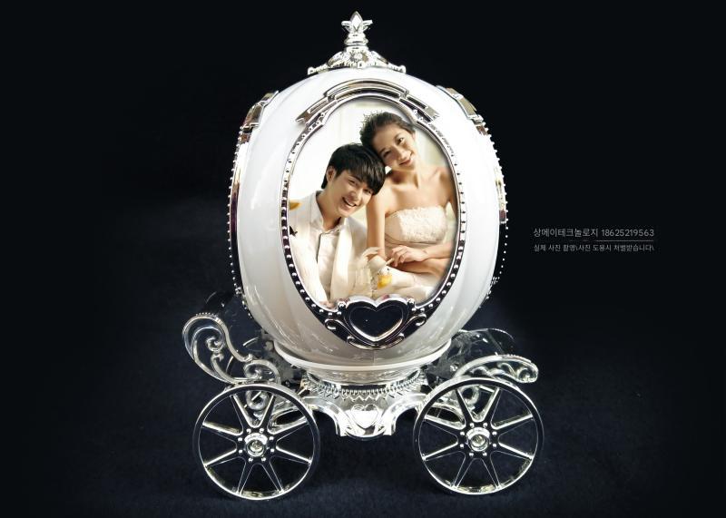 유럽식 사진 프레임 테이블 5인치 개성적 크리에이티브 캐리지 라운드 화이트 어린이 결혼 생일 선물 회전 음악