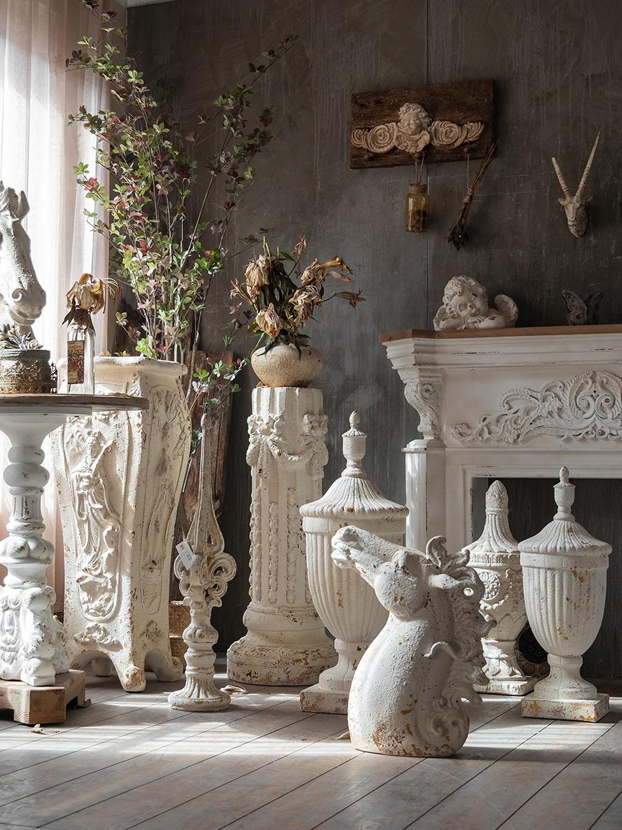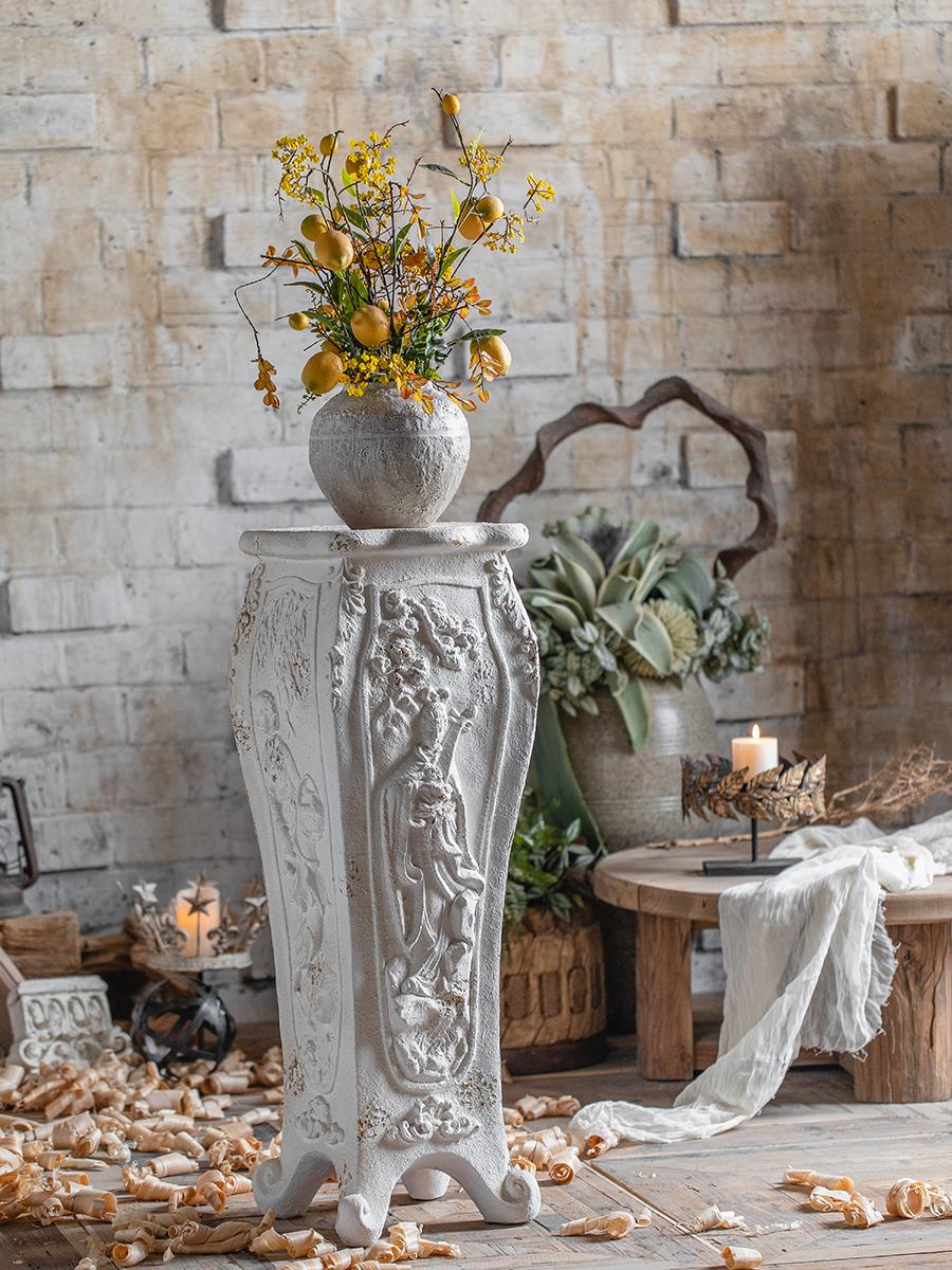 유럽 ​​레트로 벽난로 석고 조각상 로마 기둥 바닥 장식 사격 소품 석고 기둥 조각품 대형 기둥