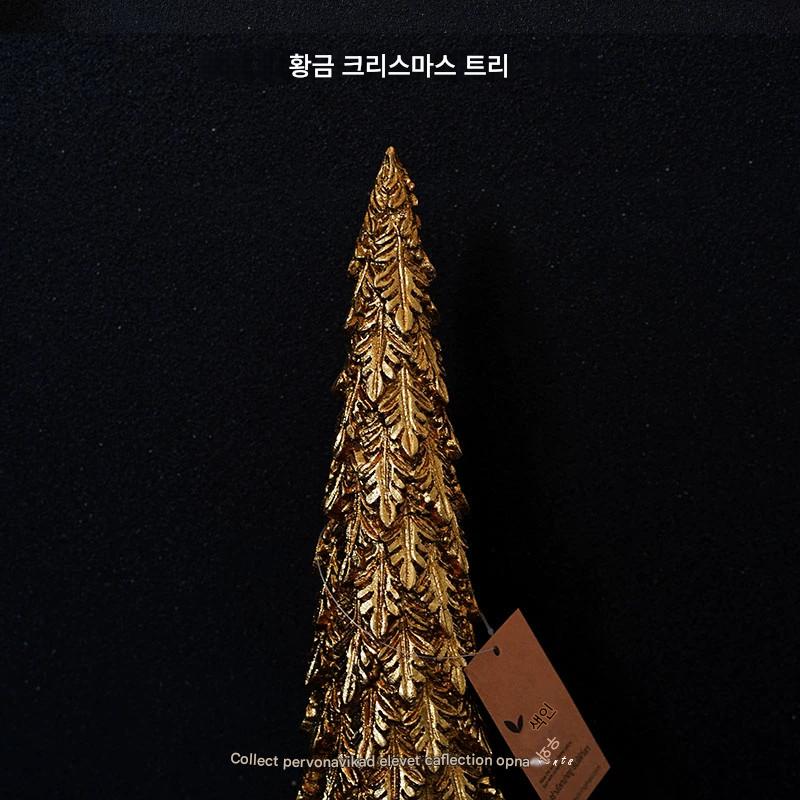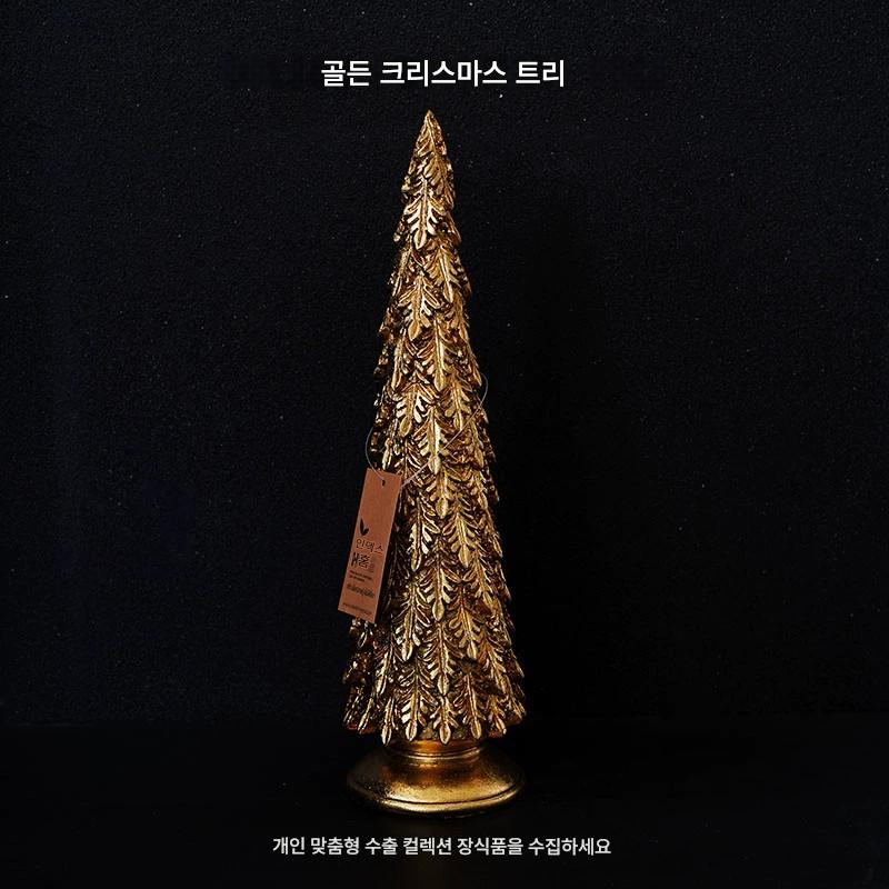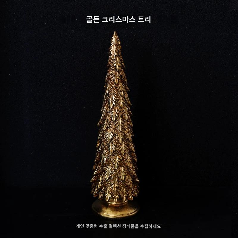 유럽 ​​스타일의 수지 골든 크리스마스 트리 모양 장식품을 수출하여 가정용품의 축제 분위기를 장식하세요