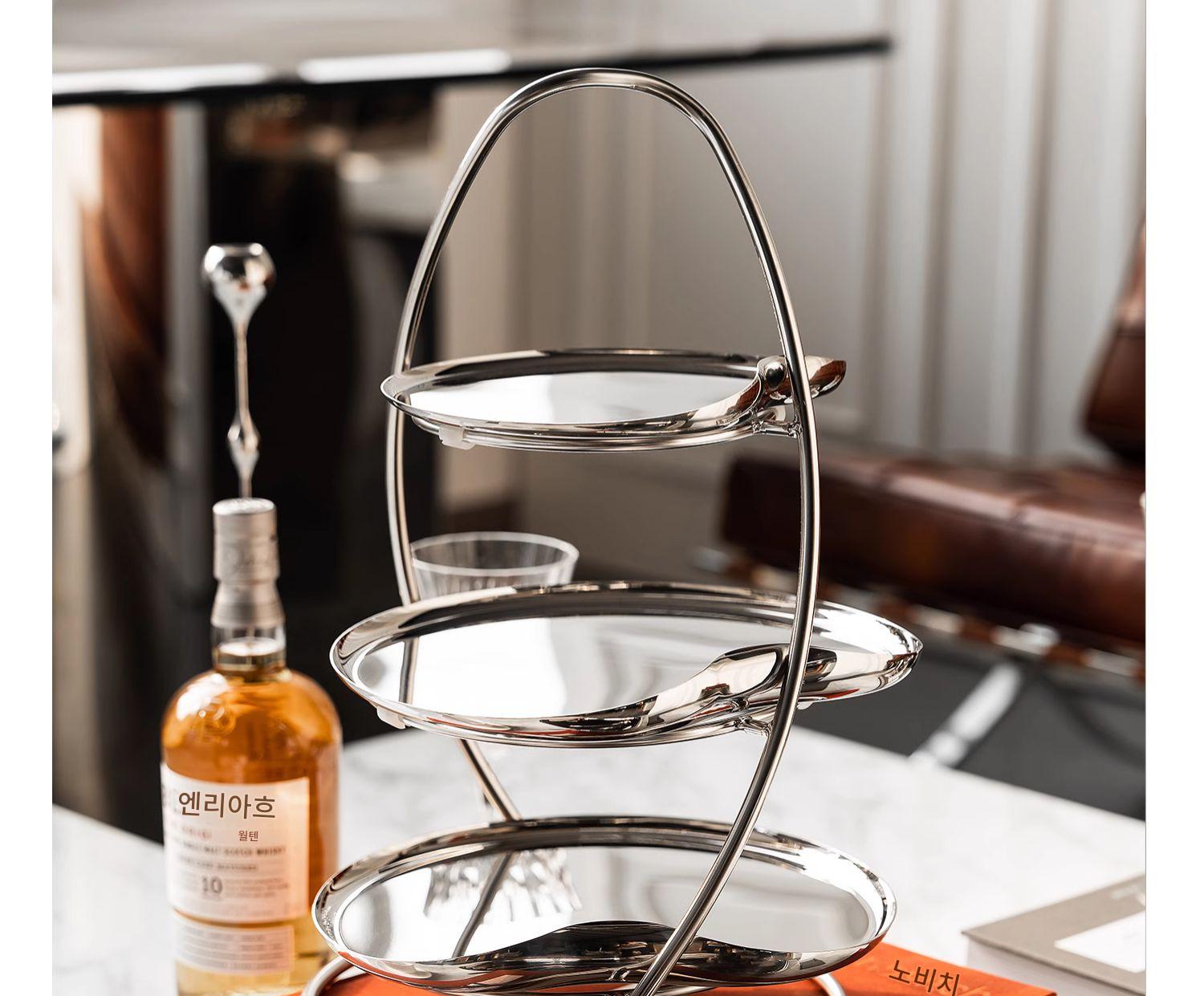 유럽 스타일 스테인리스 스틸 애프터눈 티 스낵 스탠드 라이트 럭셔리 3층 디저트 스탠드 케이크 과일 식품 디스플레이 스탠드 장식품