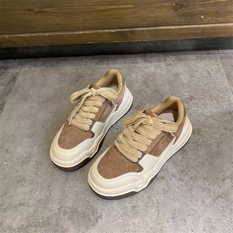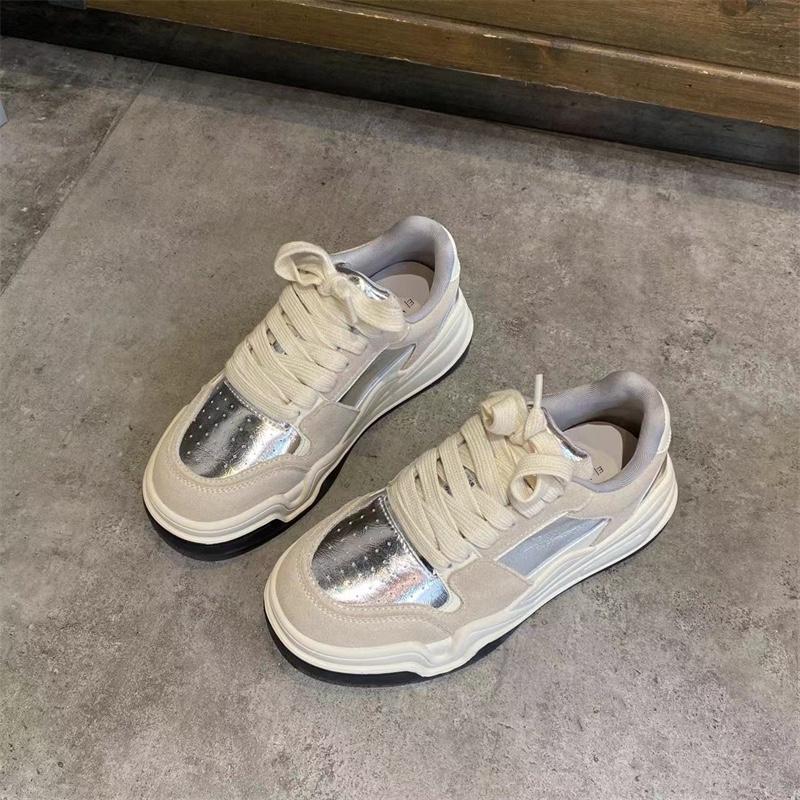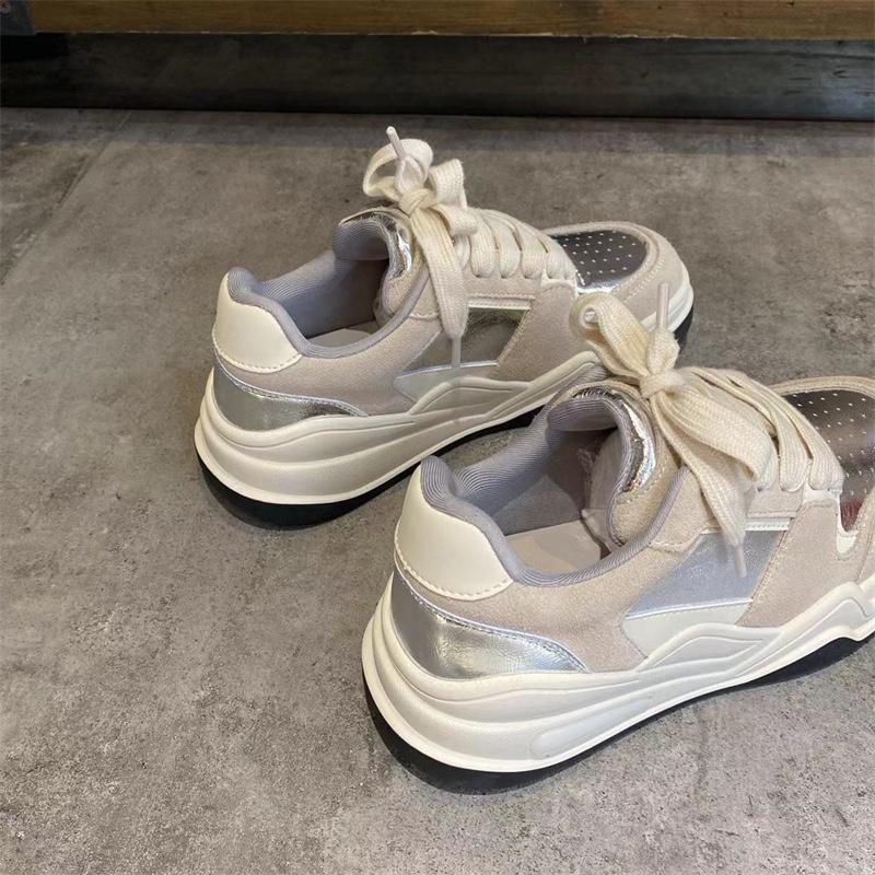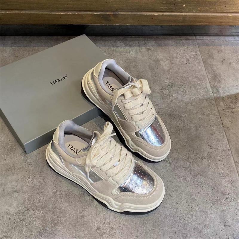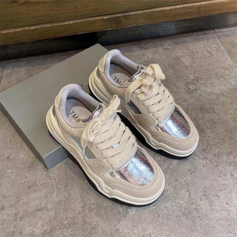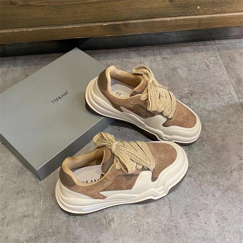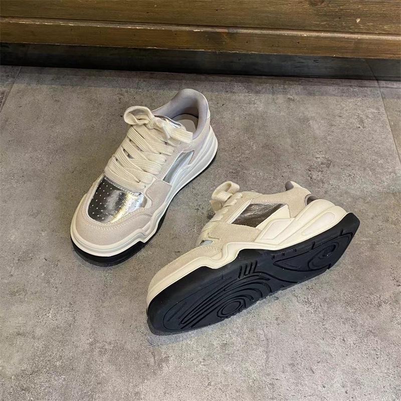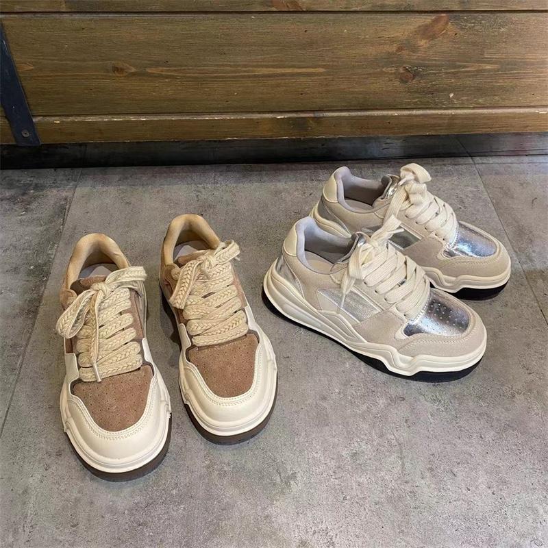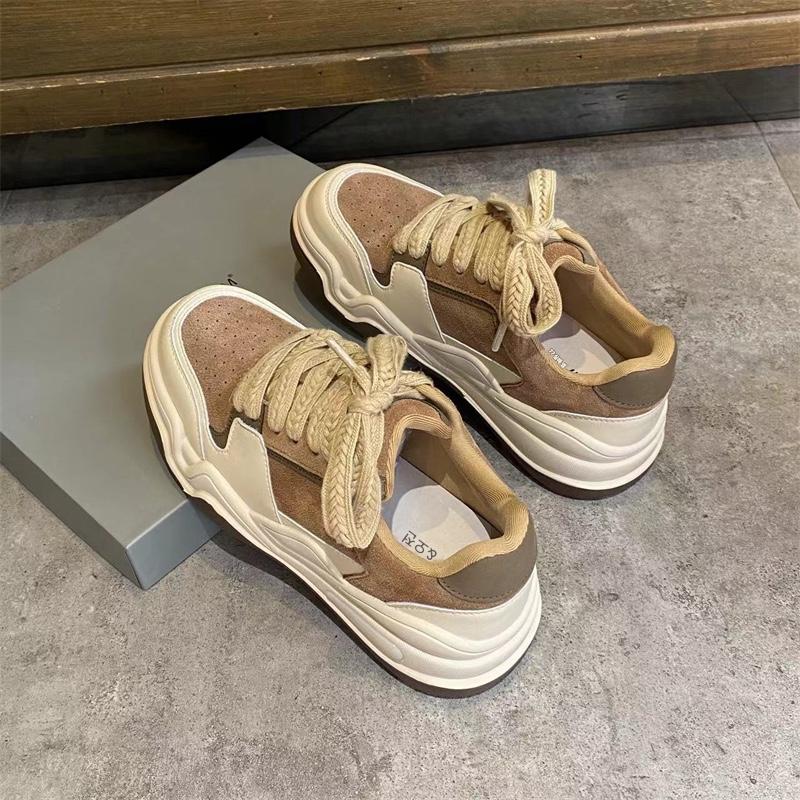 유럽 여성화 스니커즈 2024 봄 신상 올매치 레이스업 정품 가죽 두꺼운 밑창 그물 셀러브리티 인스 스포츠 캐주얼화