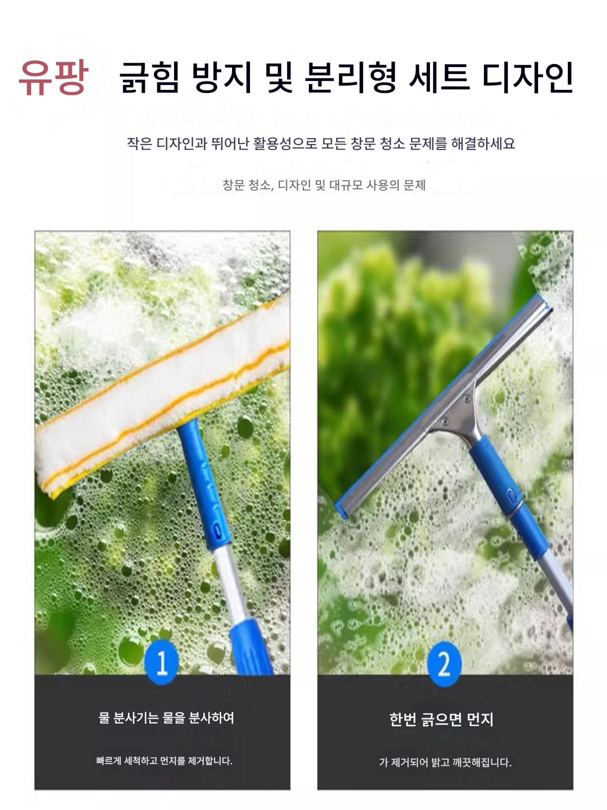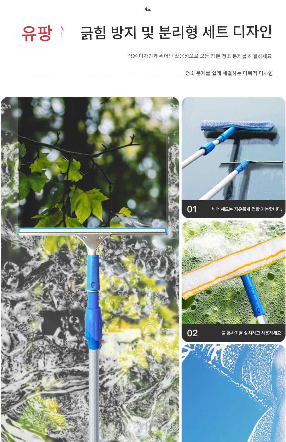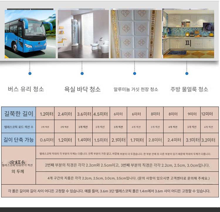 유리창 청소도구 텔레스코픽 와이퍼 청소브러쉬 롱폴 창문세척 도어헤드 특수물걸레 유물가구