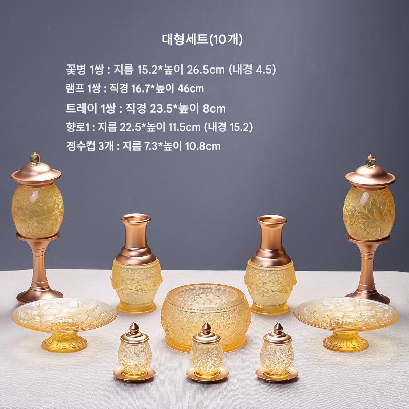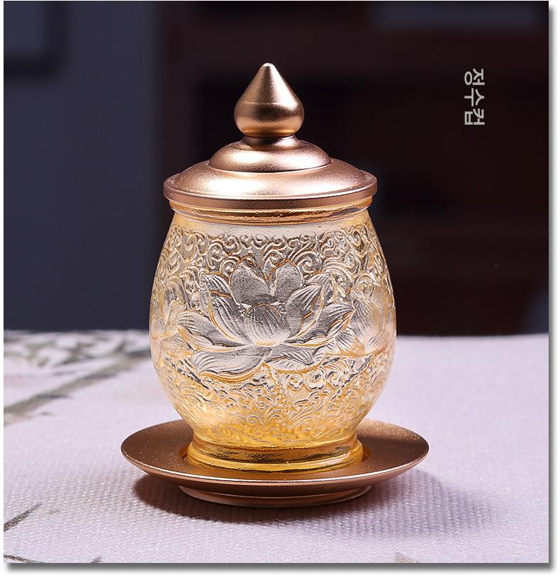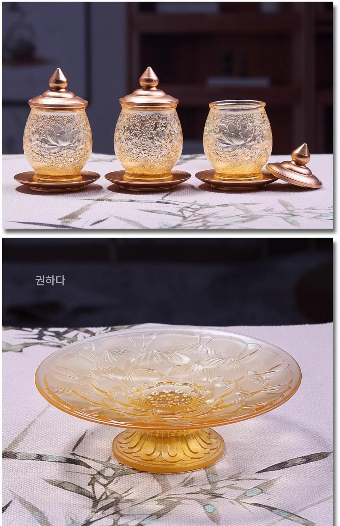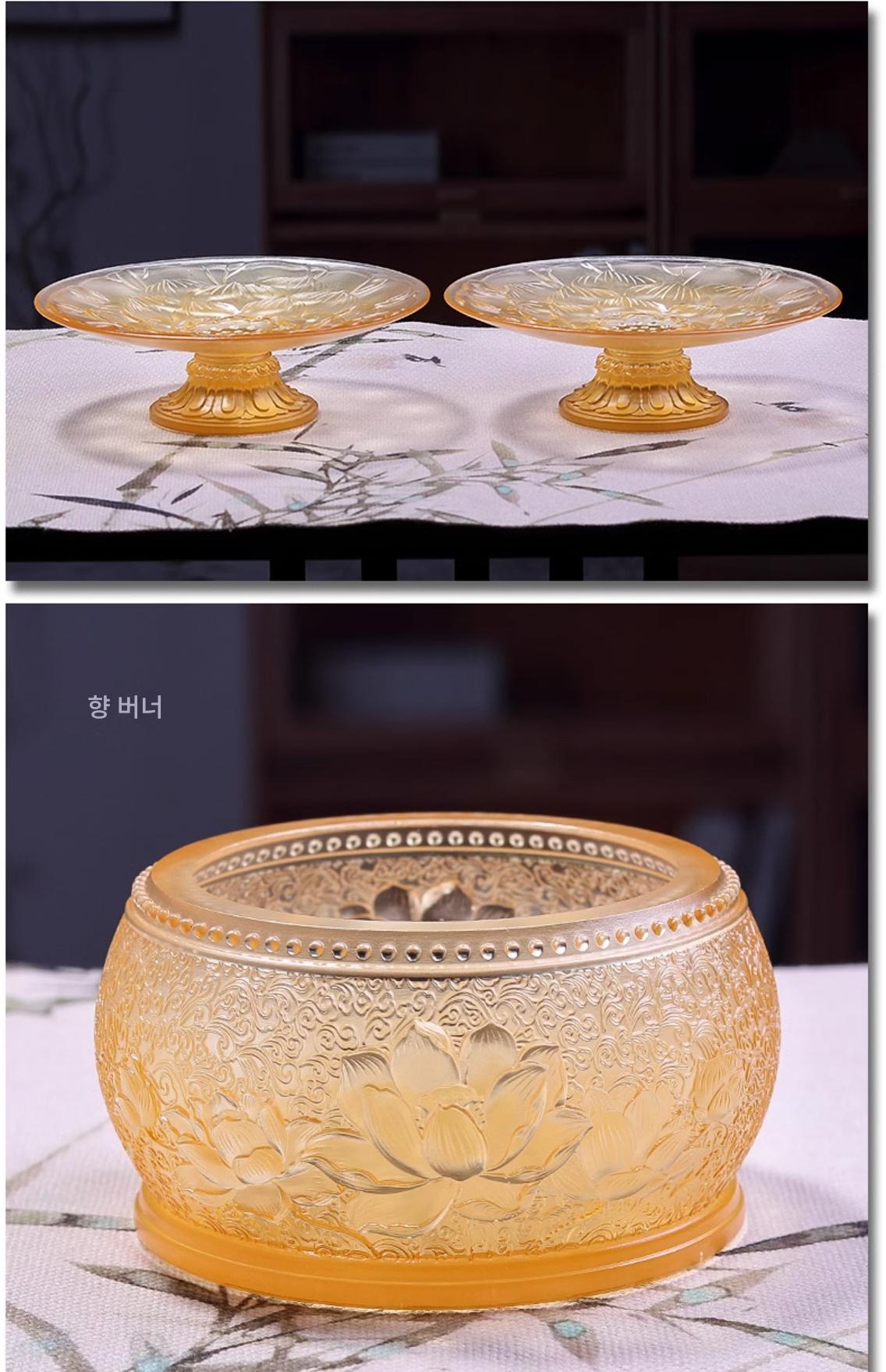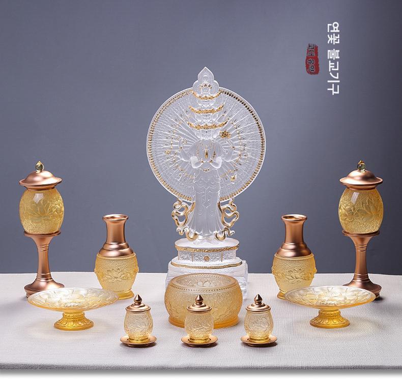 유리 연꽃 불교 장식품 세트 불교 사원 제물 물잔 향로 꽃병 램프 부처님 앞에 놓임
