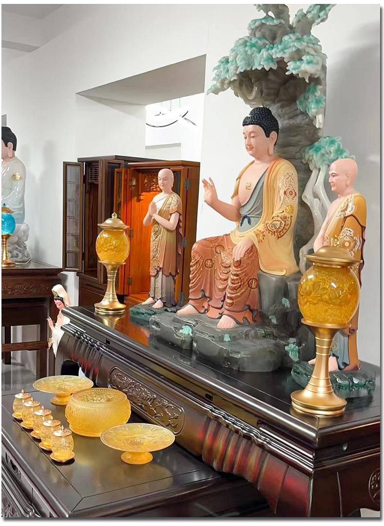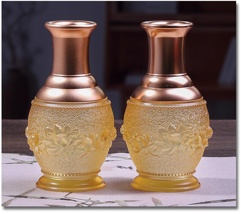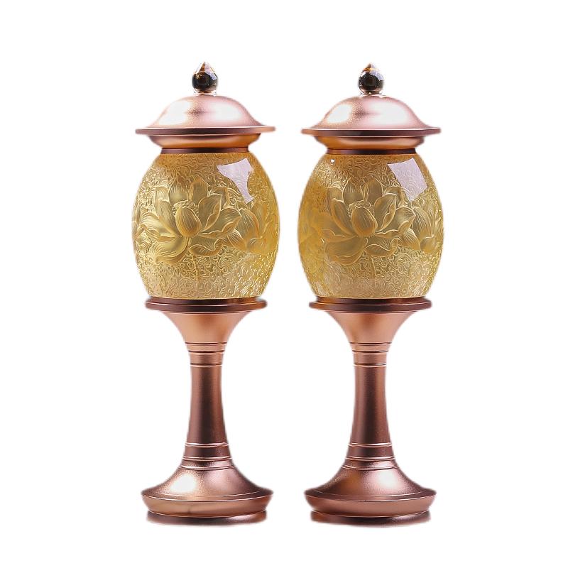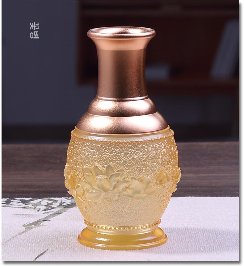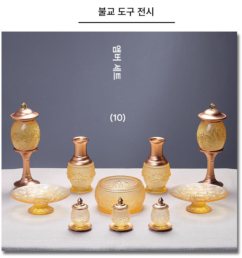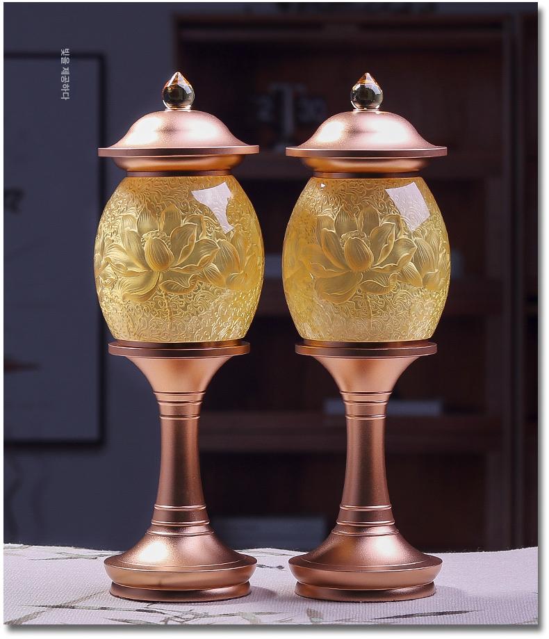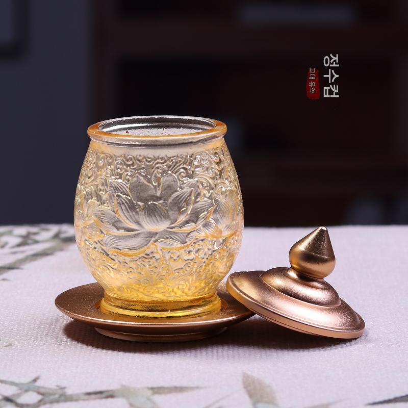 유리 연꽃 불교 장식품 세트 불교 사원 제물 물잔 향로 꽃병 램프 부처님 앞에 놓임