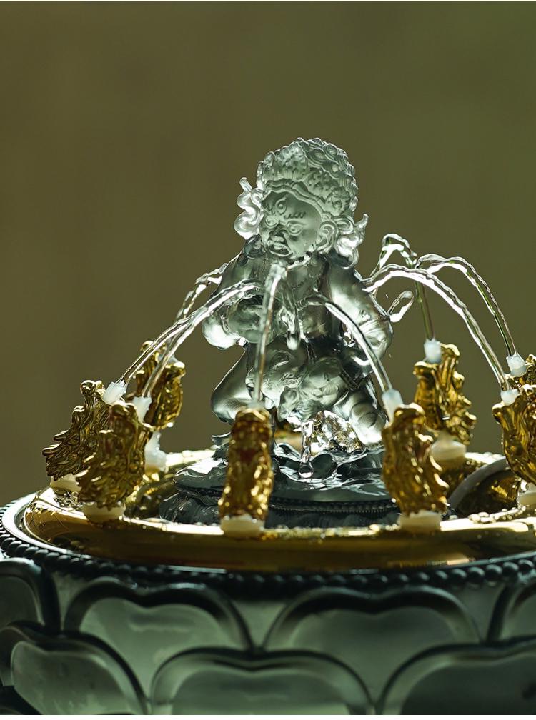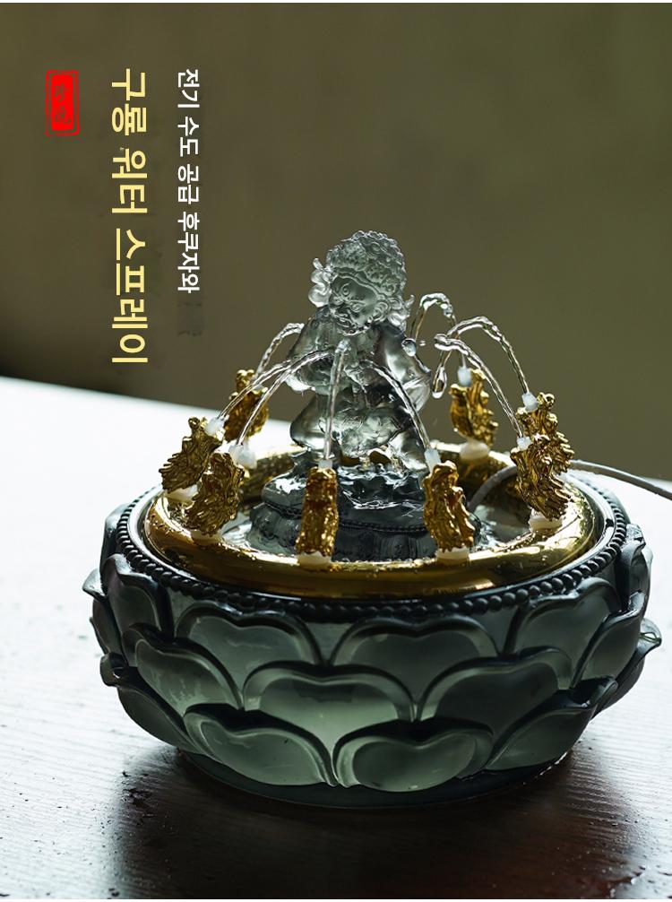 유리 5방 급수 노란색 부의 신 검은색 부의 신 부처님 동상 부를 끌어들이는 물 순환 장식품 보물 구룡 목욕 부처님 분지 새것