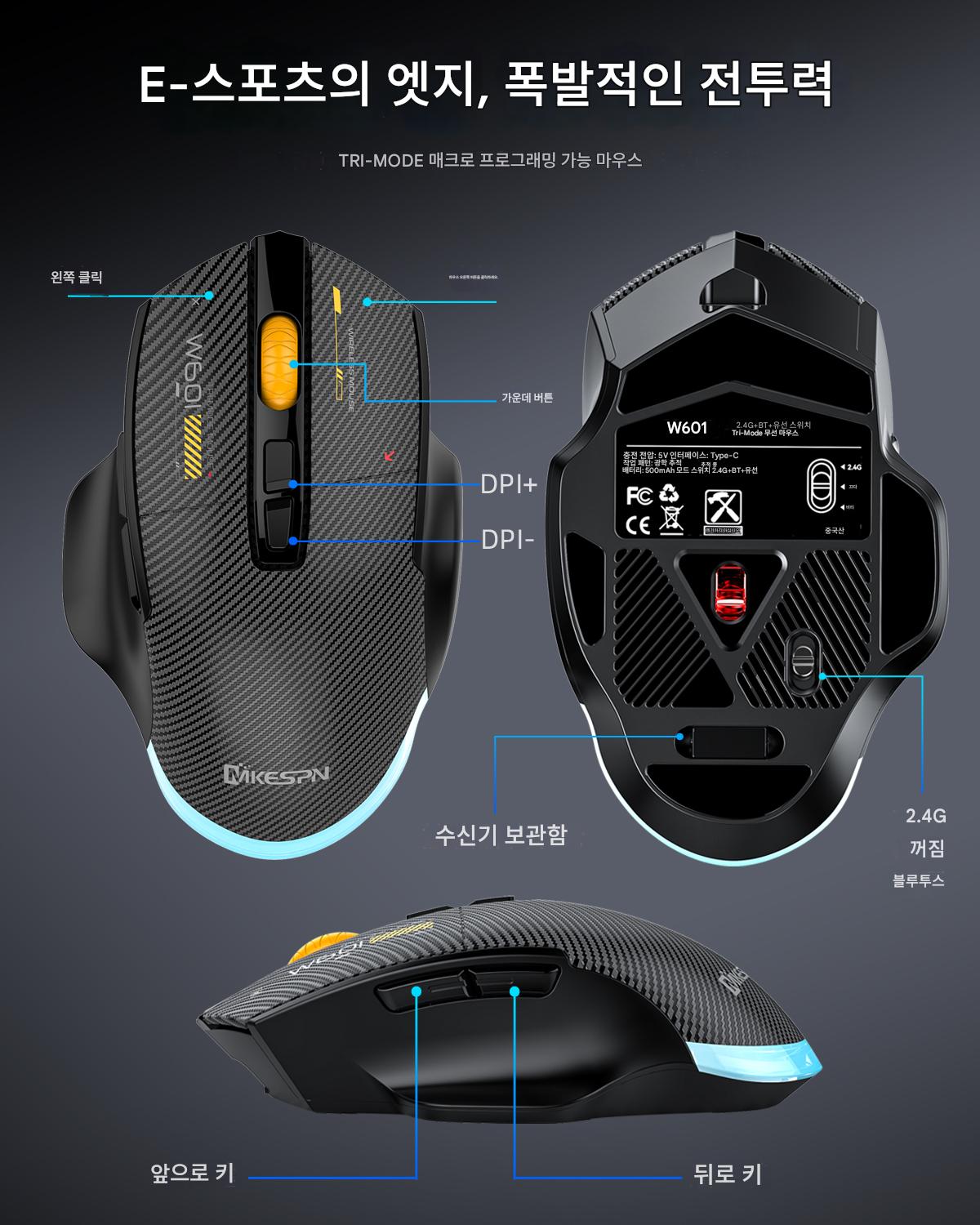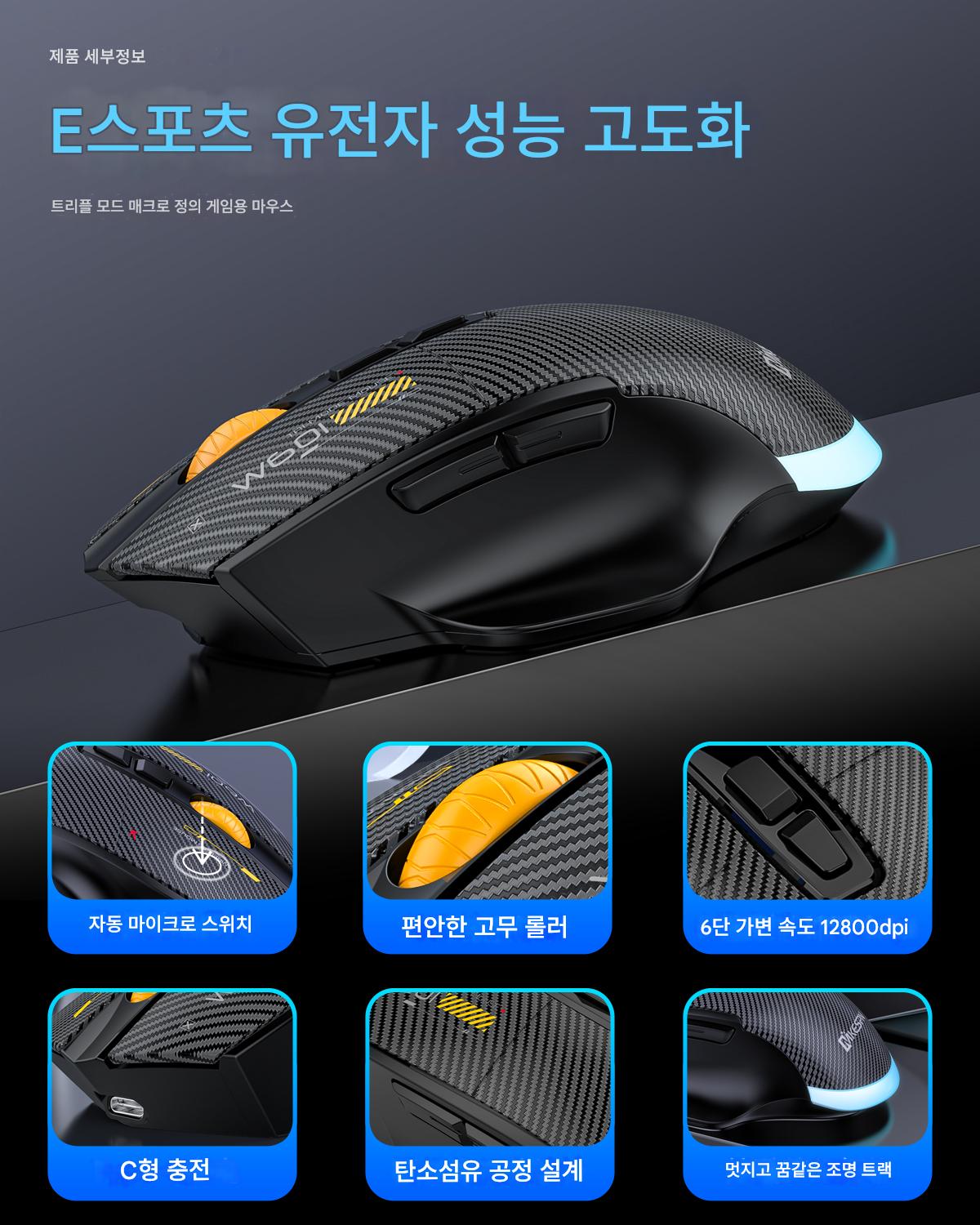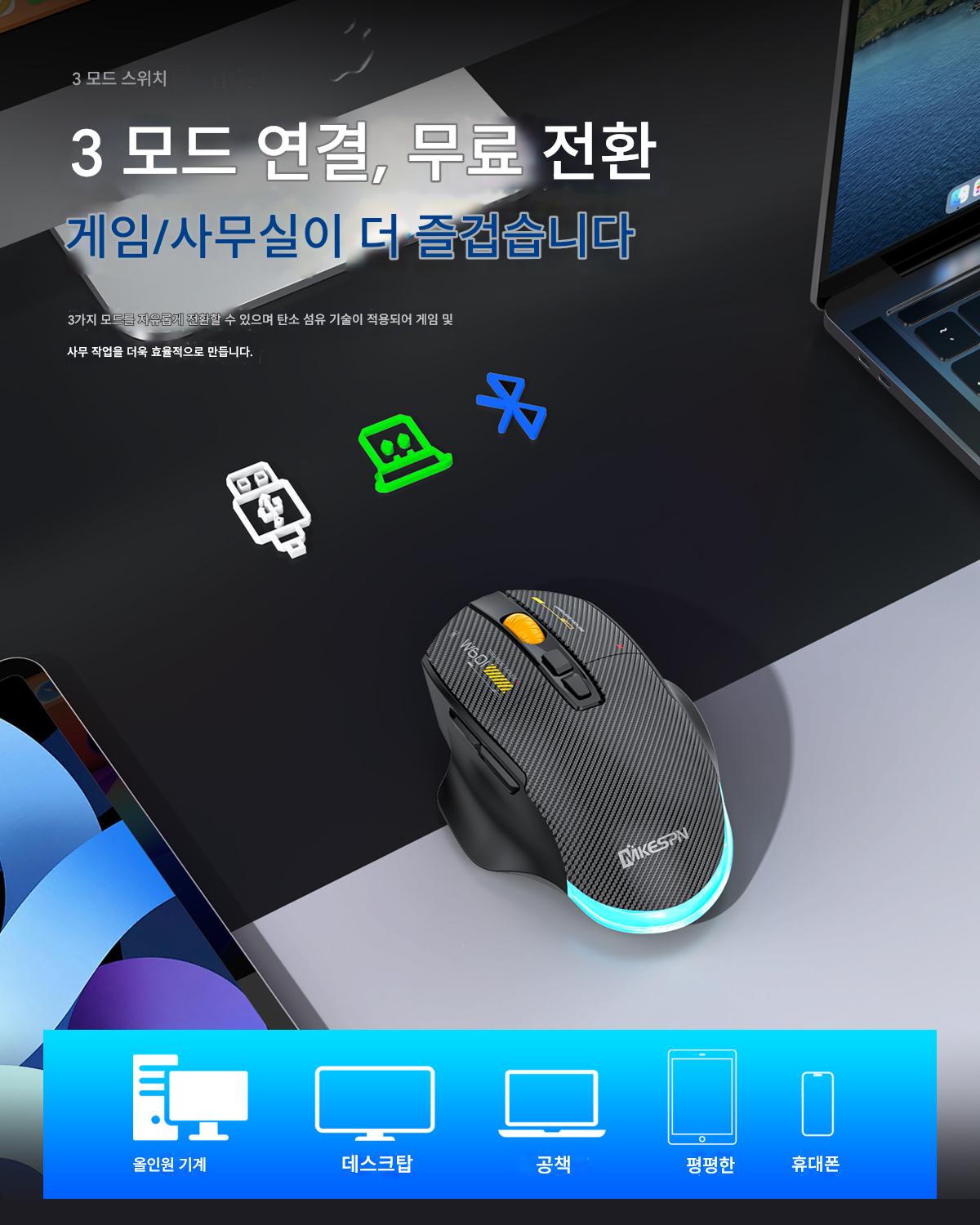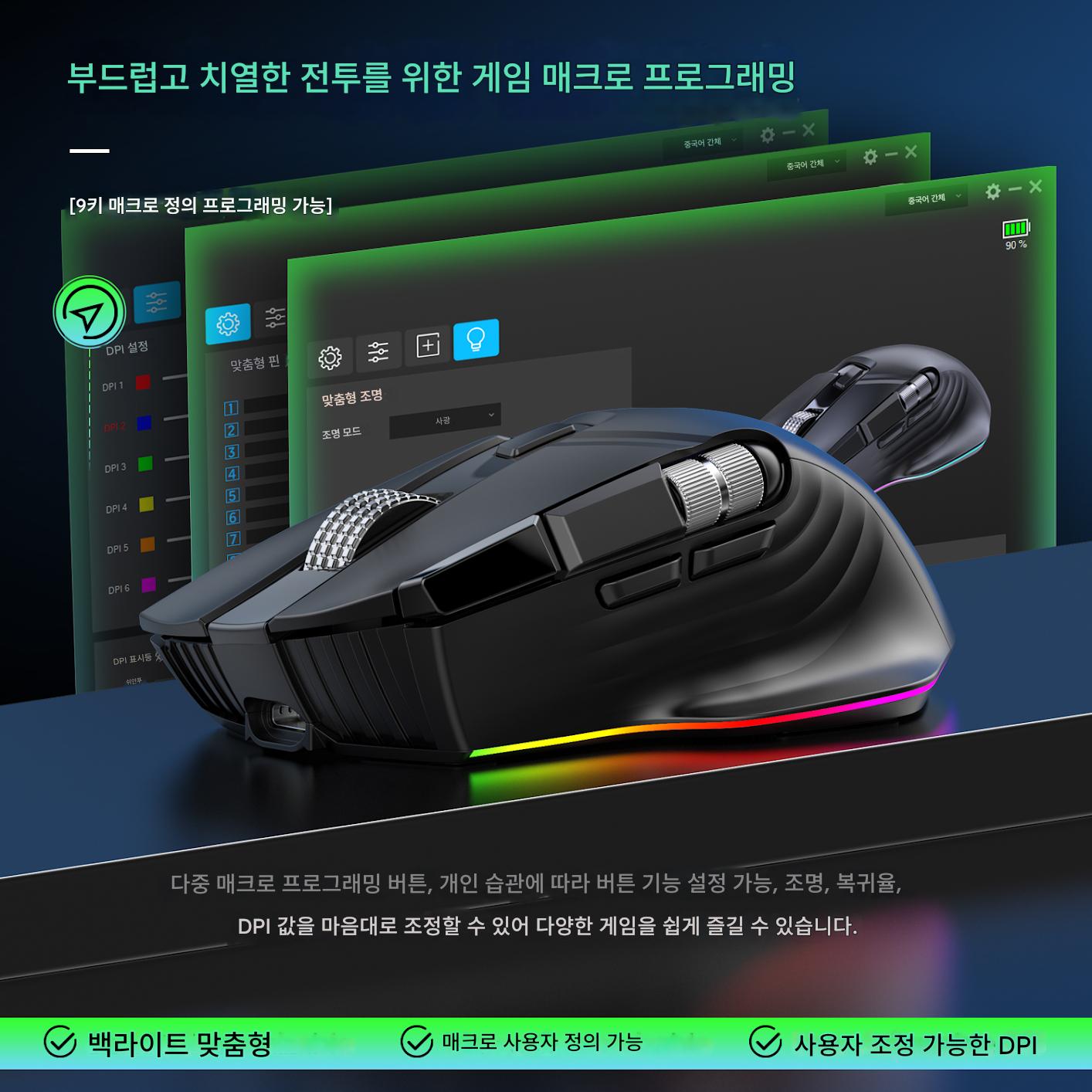 유선 및 무선 2.4G 블루투스 5.1 3모드 마우스 매크로 정의 10버튼 듀얼 휠 게임 RGB 컬러풀 충전