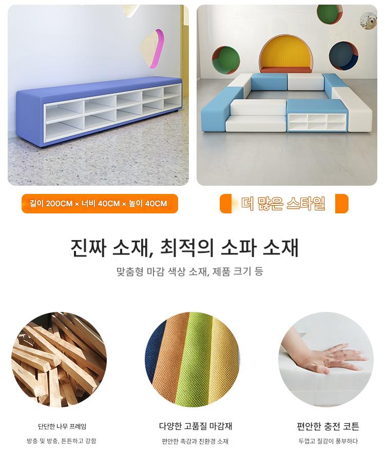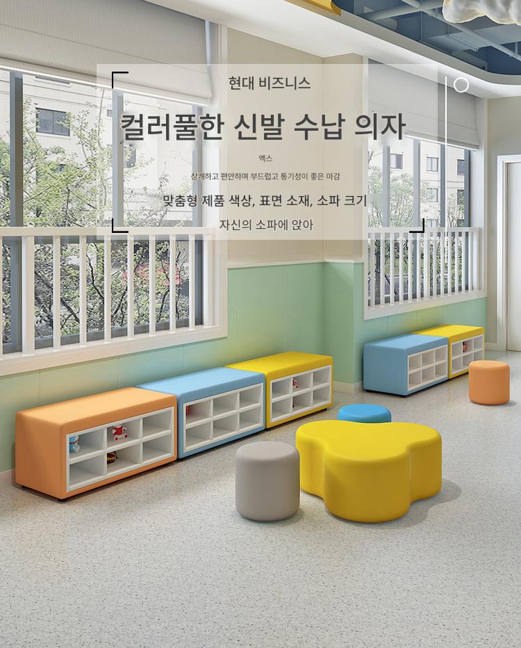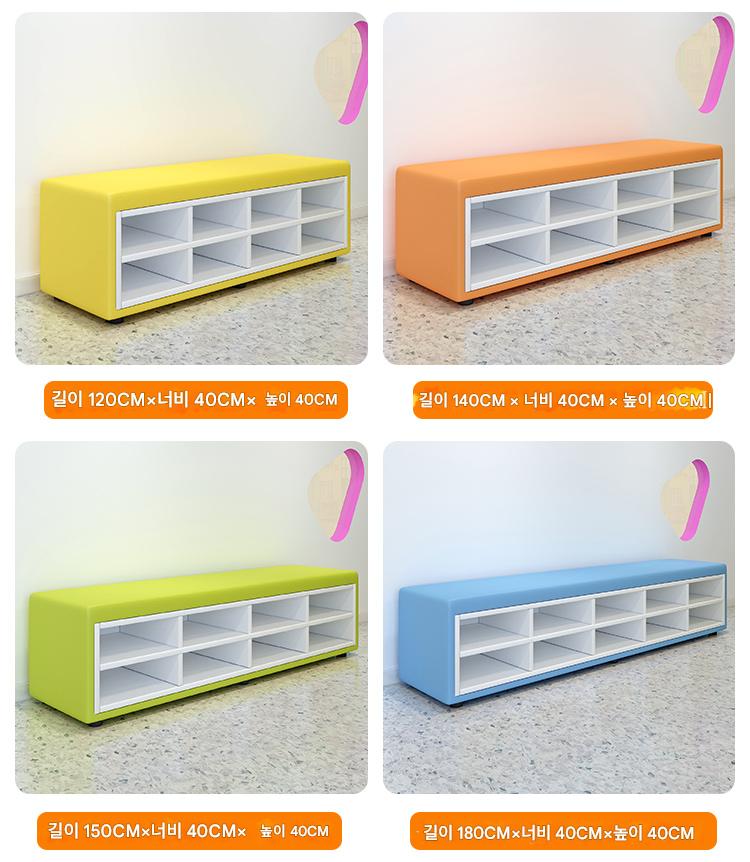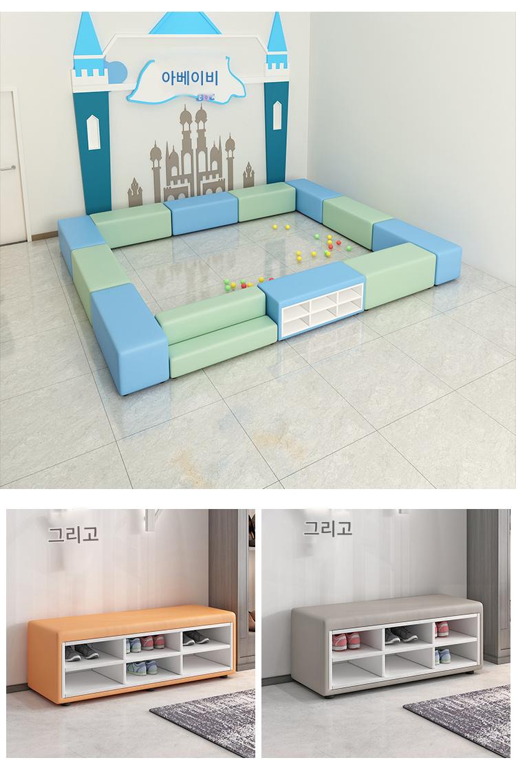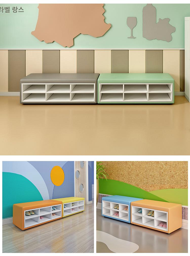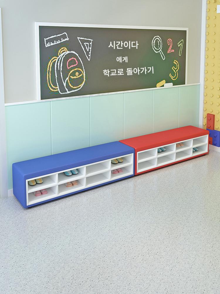 유치원 교육기관 댄스룸 휴게실 홀 벽면 신발장 벤치 어린이 소프트팩 롱슈즈장 소파