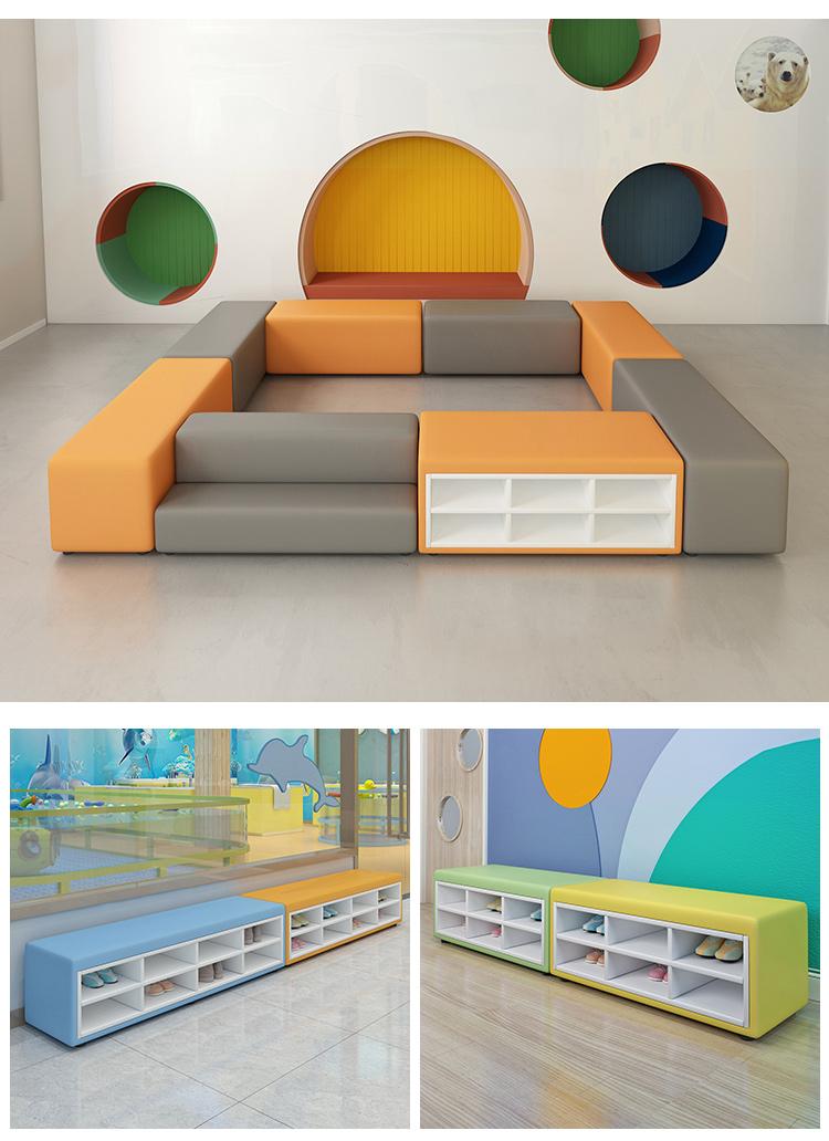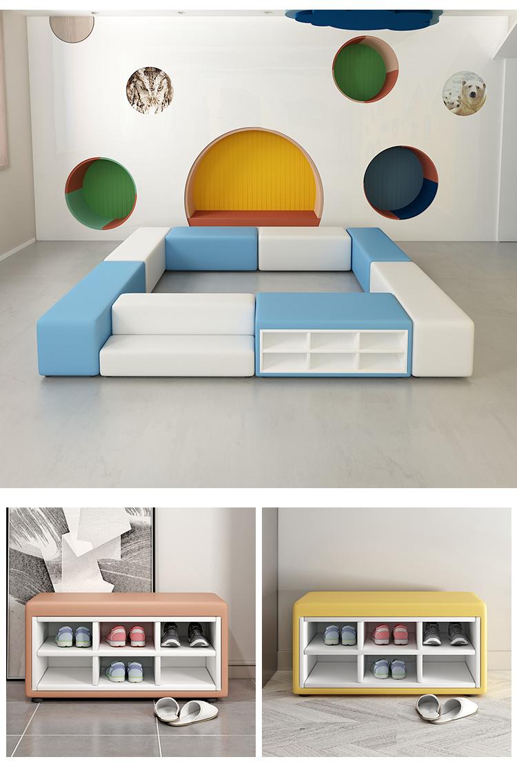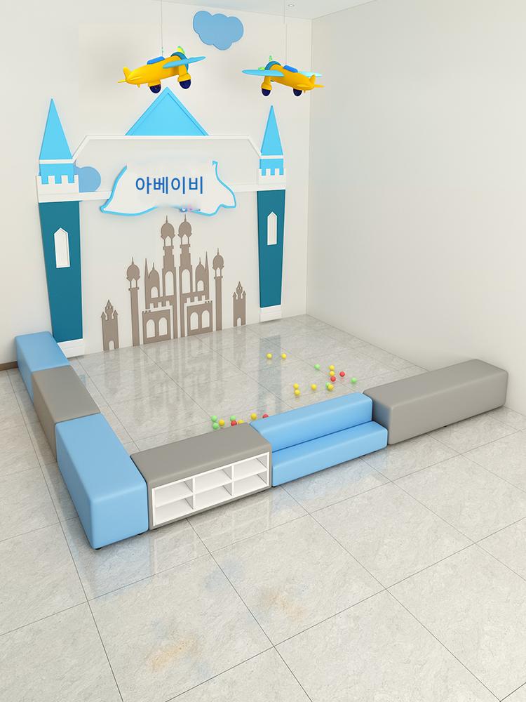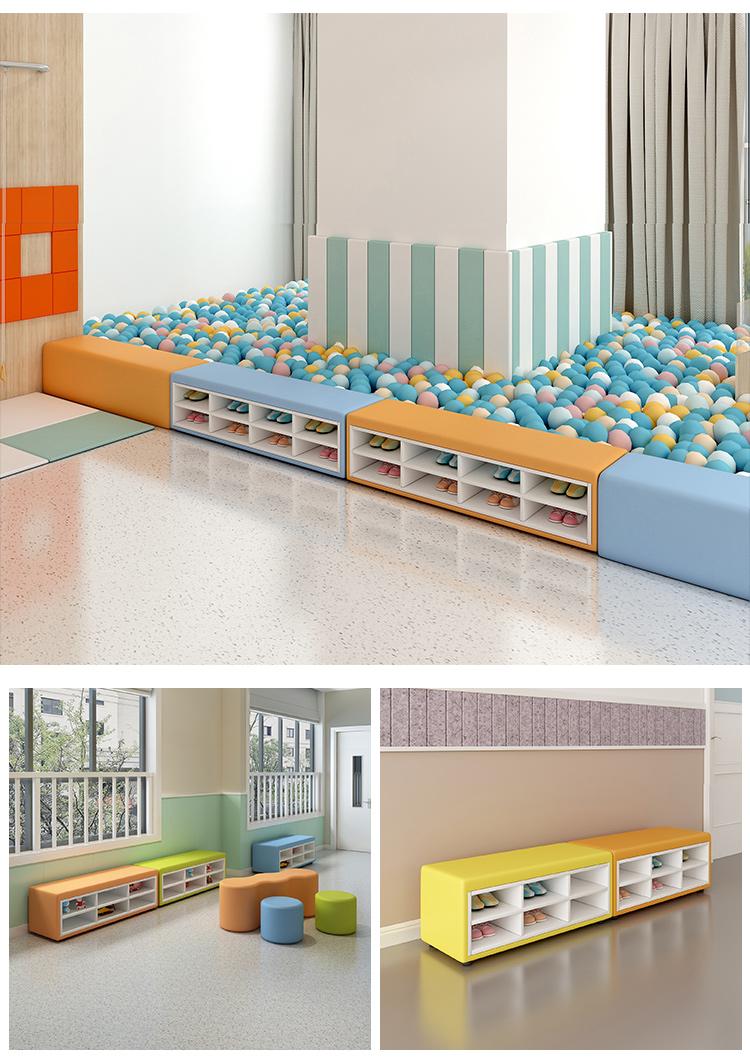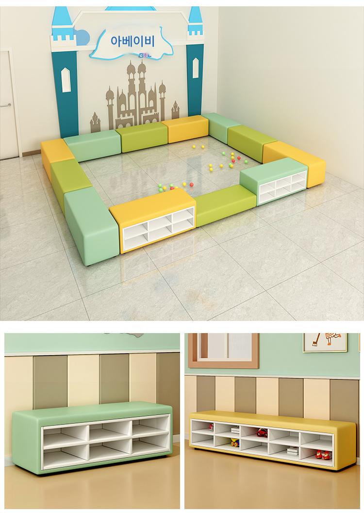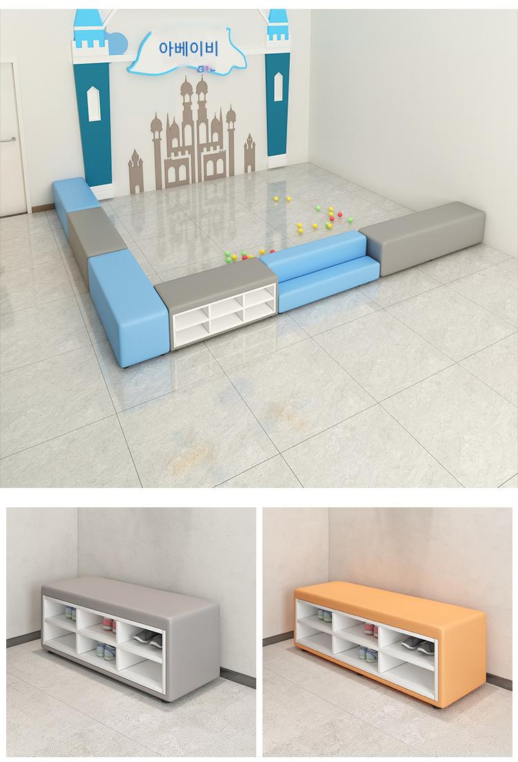 유치원 교육기관 댄스룸 휴게실 홀 벽면 신발장 벤치 어린이 소프트팩 롱슈즈장 소파