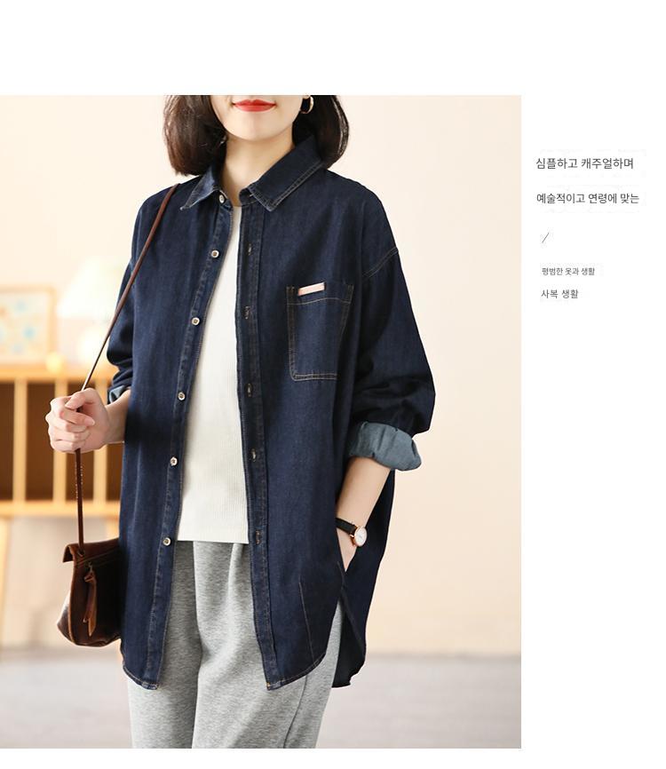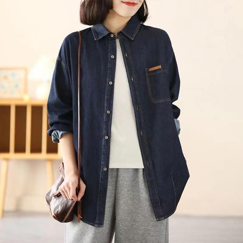 유행 느슨한 기질 데님 재킷 여성 셔츠 2025 봄과 가을 새로운 엄마 큰 사이즈 가을 캐주얼 탑 얇은