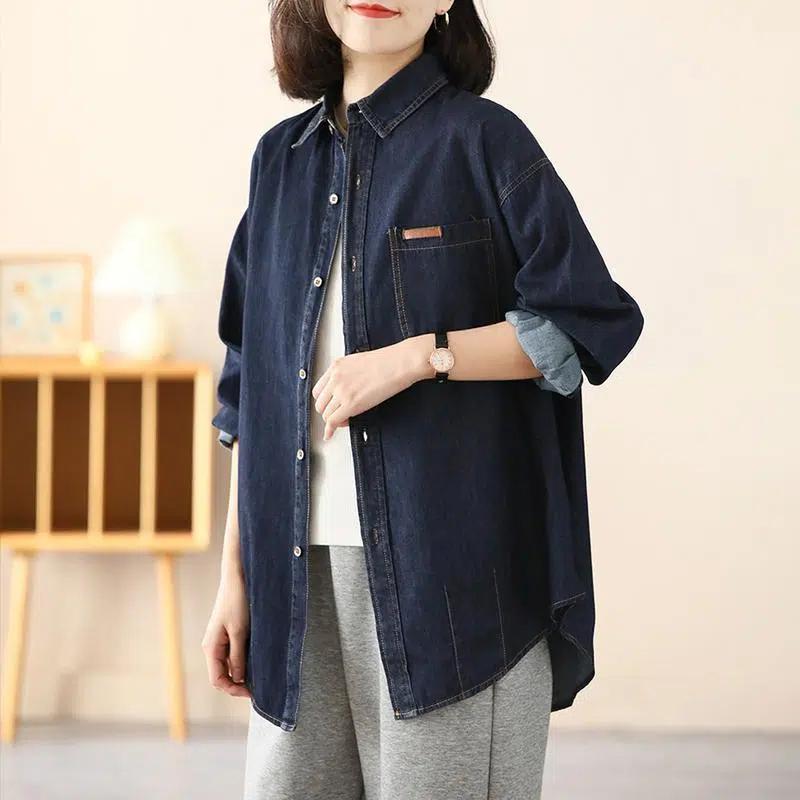 “유행 느슨한 기질 데님 재킷 여성 셔츠 2025 봄과 가을 새로운 엄마 큰 사이즈 가을 캐주얼 탑 얇은”의 첫 상품평을 남겨 주세요