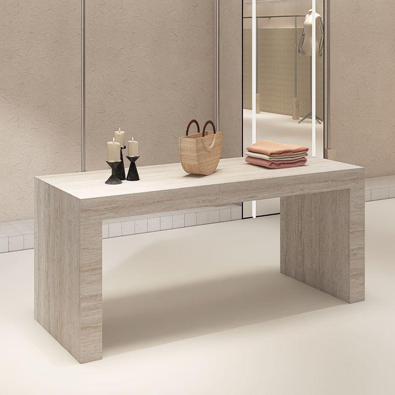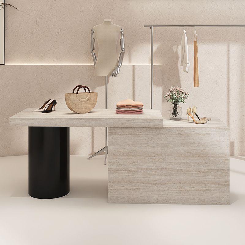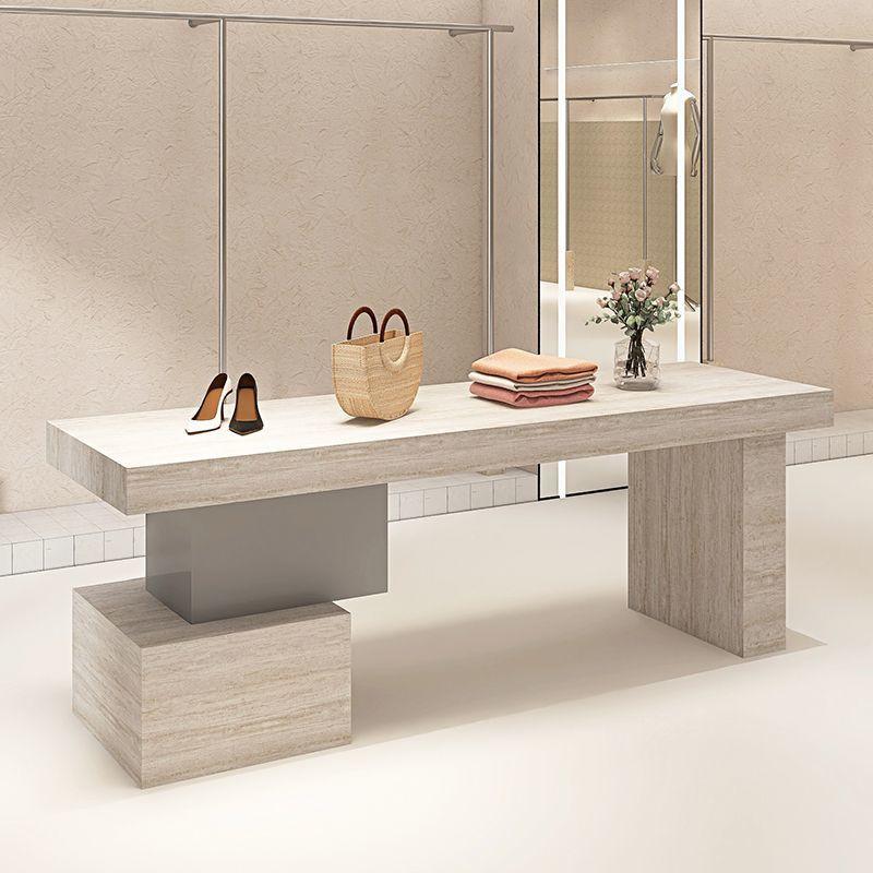 의류 매장 섬 테이블 트라버틴 섬 테이블 디스플레이 테이블 여성 의류 매장 섬 테이블 신발 및 가방 디스플레이 물 디스플레이 테이블