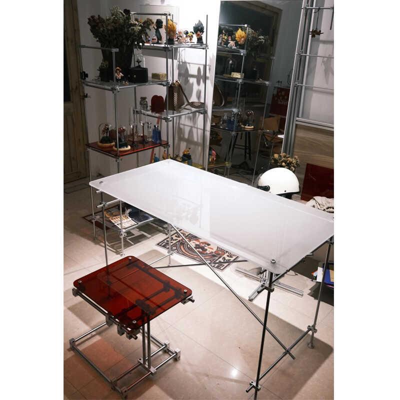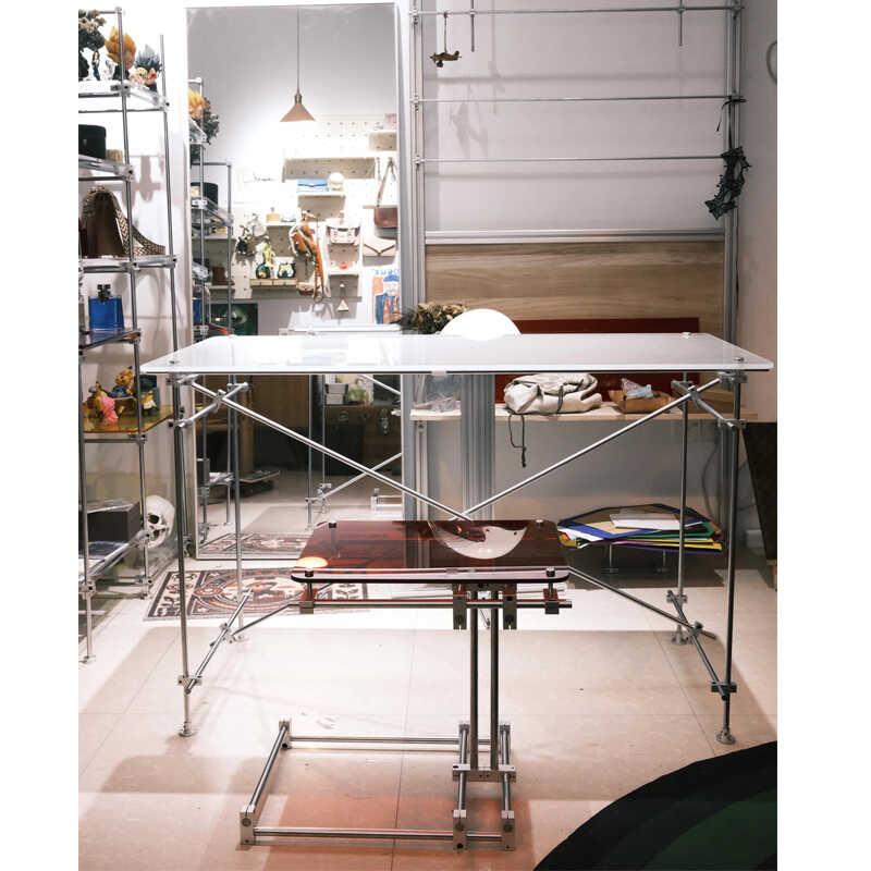 의류 매장 워터 테이블 스테인리스 스틸 라이트 축 아일랜드 쥬얼리 디스플레이 테이블 디스플레이 소품 아크릴 테이블 중앙에 배치