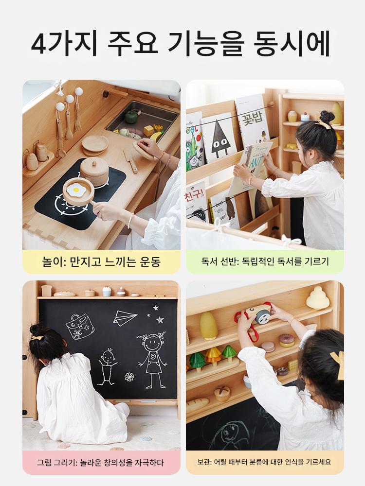 이국적잼 신제품 1㎡ 몬테소리 주방놀이집 바쁜집 어린이 그림책선반 아기 조기교육 게임테이블