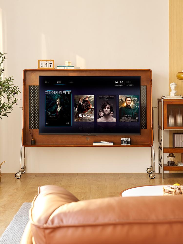 이동식 TV 캐비닛 브라켓 레트로 소형 가정 침실 거실 TV 앤틱 스타일 견고한 나무 TV 스탠드