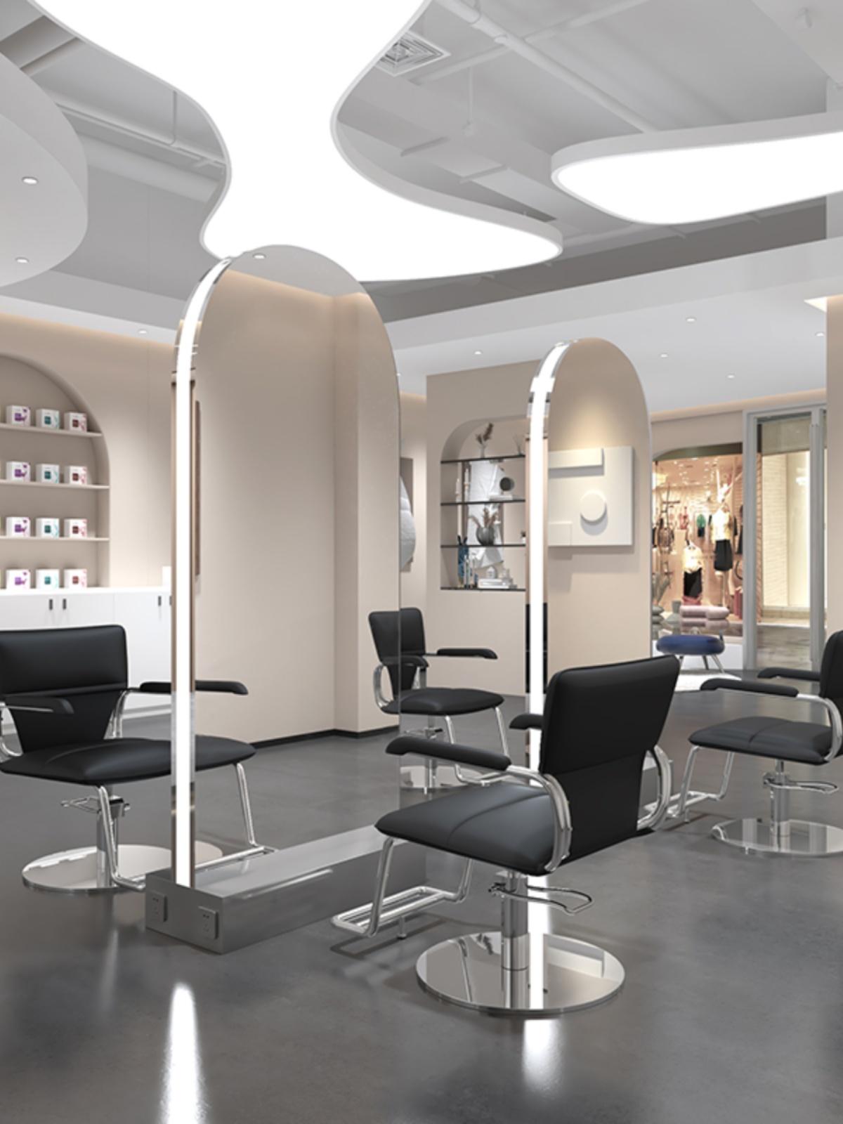 이발소 바닥형 양면 거울, 조명 포함, 미용실 단면 및 양면 전신 거울, 미용실 헤어커팅, 퍼머 및 염색 거울