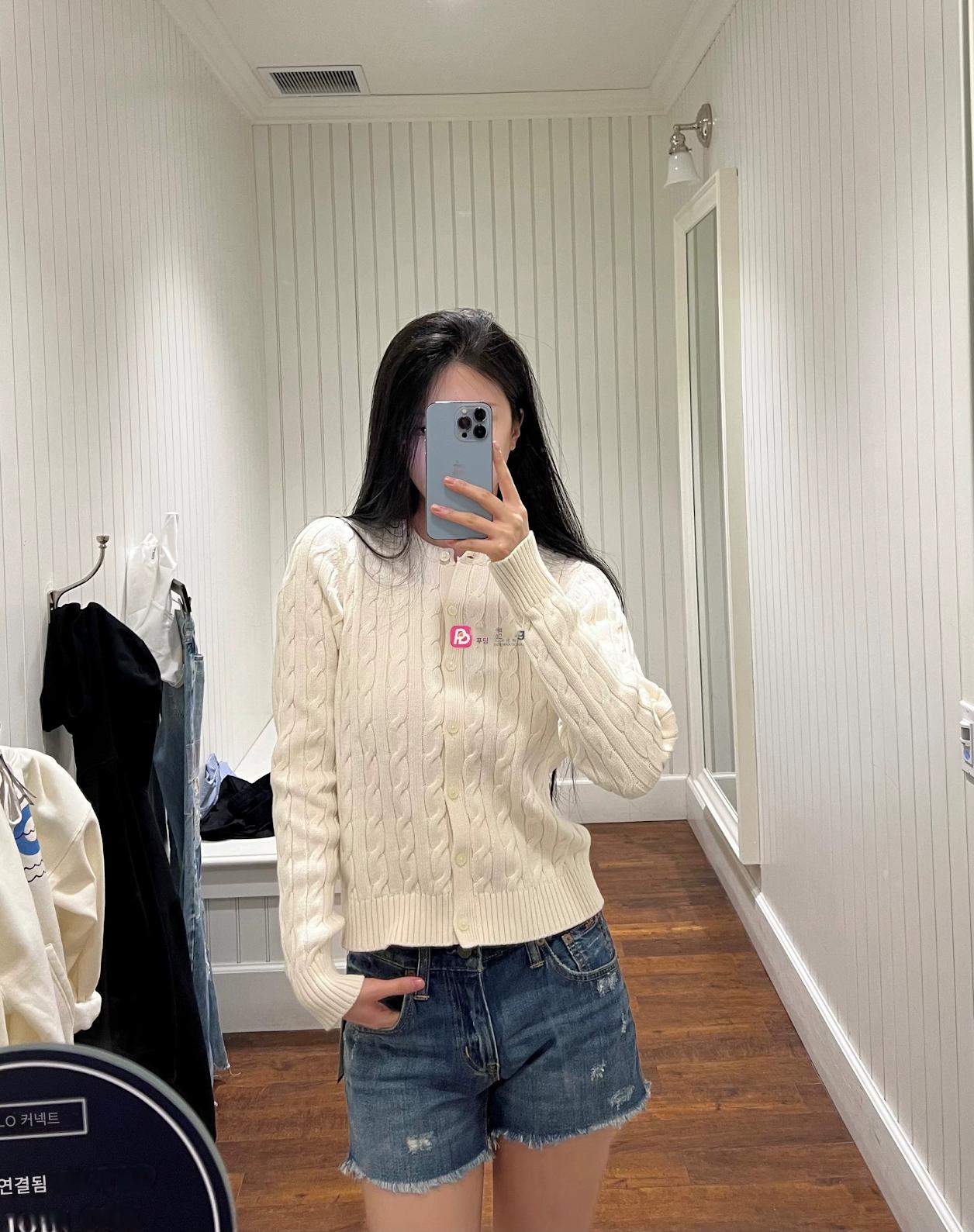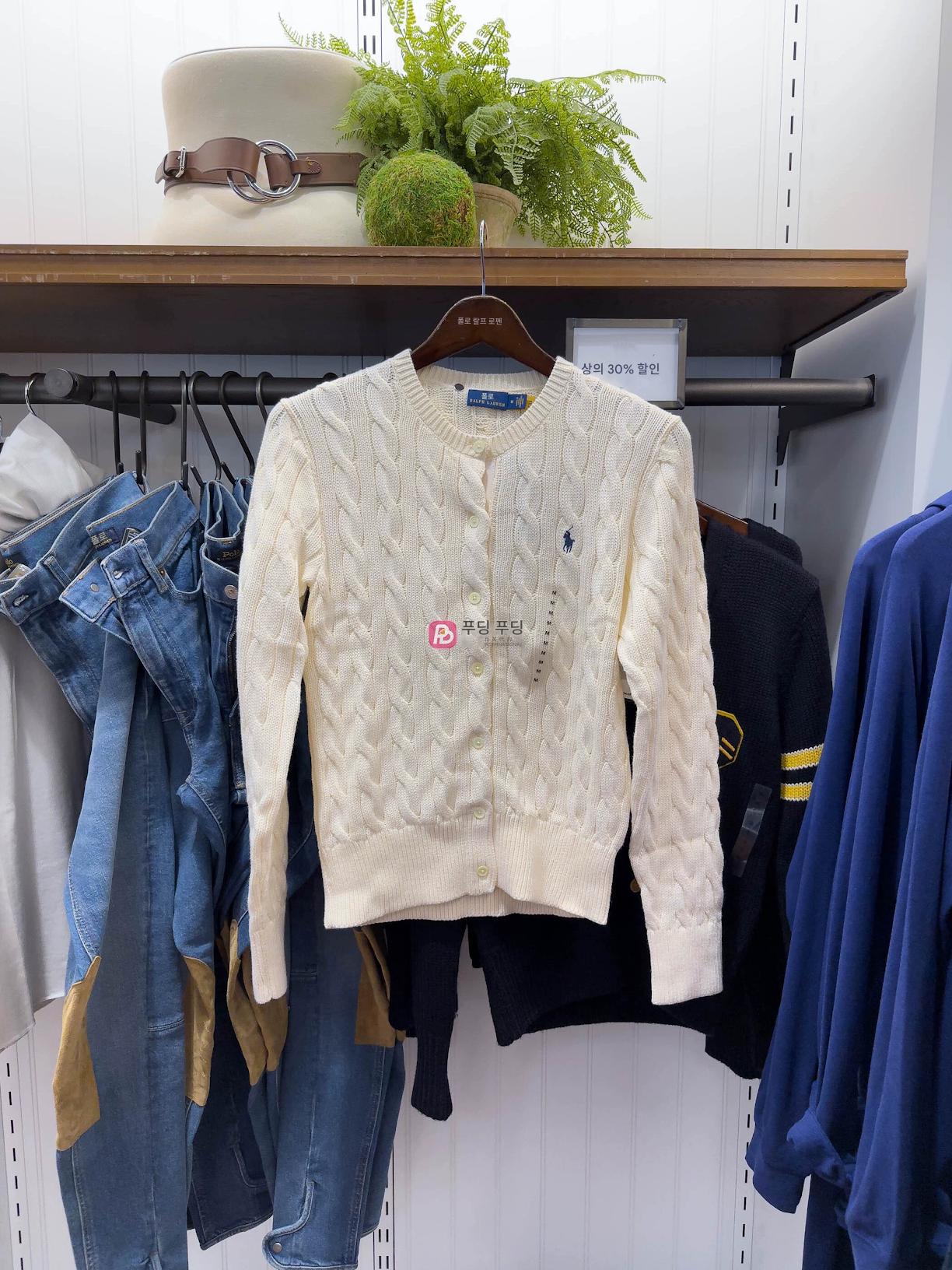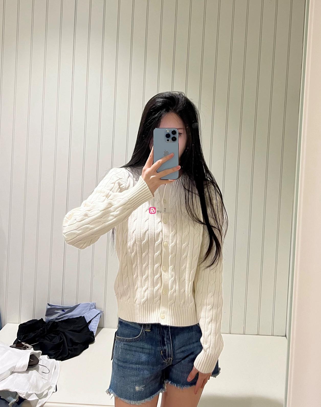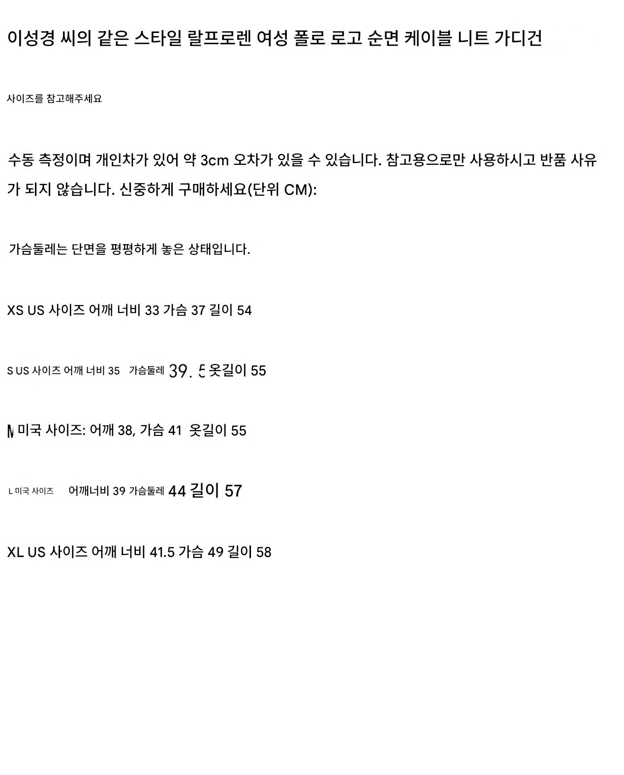 이성경 씨의 같은 스타일 랄프로렌 여성 폴로 로고 순면 케이블 니트 가디건