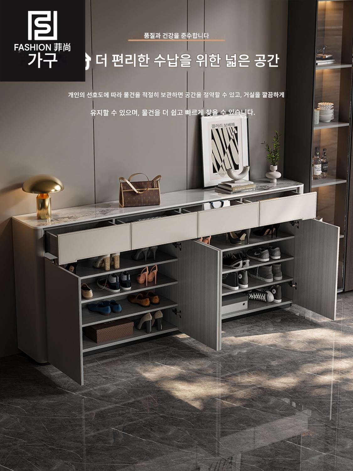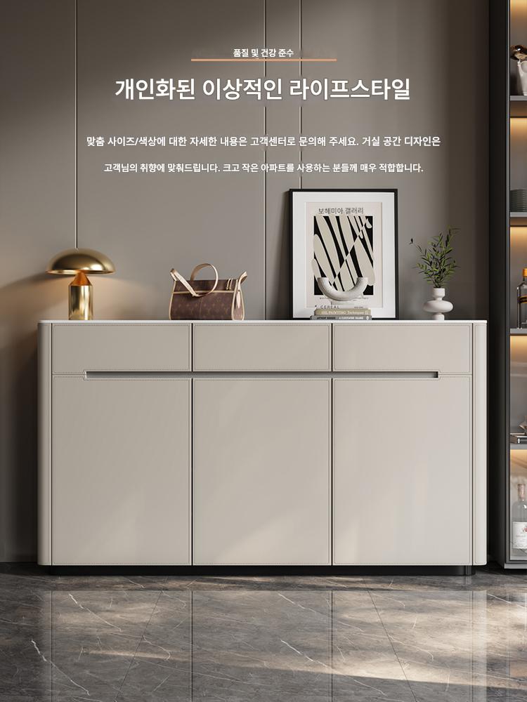 이탈리아 미니멀리스트 신발장 모던 홈 현관장 견고한 원목 파티션 캐비닛 안장 가죽 대용량 신발장