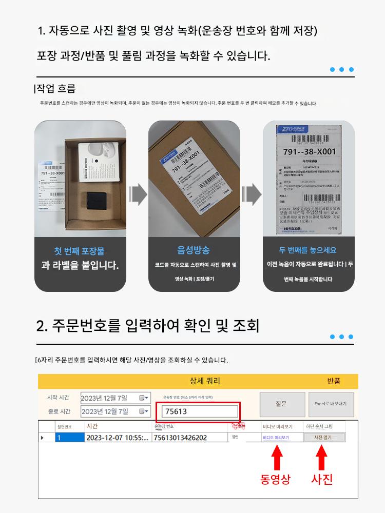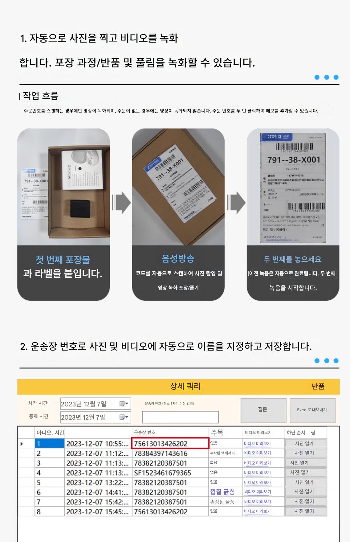 익스프레스 스캐너 패키지 사진 녹화 비디오 포장 배달 모니터 창고 풀기 전자 상거래 녹화 카메라