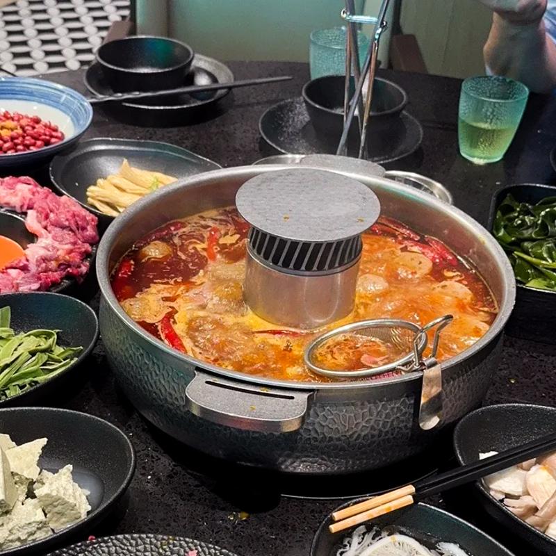 인터넷 셀럽 304 스테인리스 스틸 해머 패턴 인덕션 쿠커, 오래된 투명 국 냄비 원양 냄비 바누 곱창 같은 스타일 핫팟 냄비
