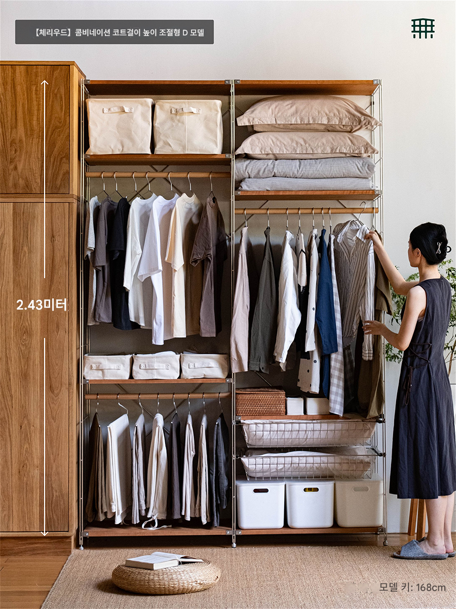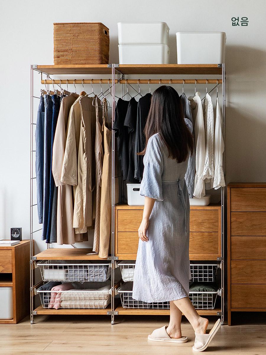 일본식 바닥형 원목 옷걸이 침실 오픈 옷장 현관 수납 스테인리스 스틸 옷걸이