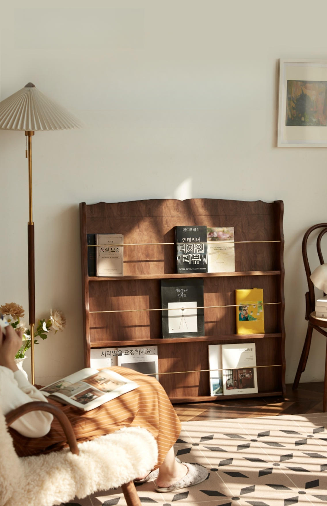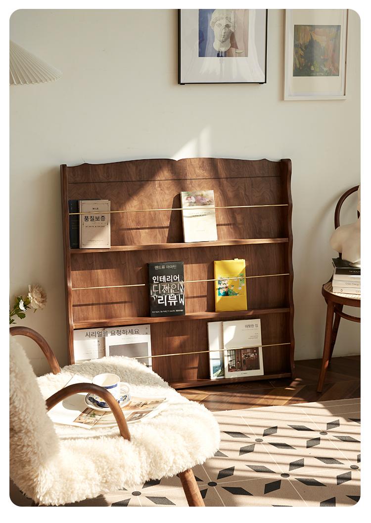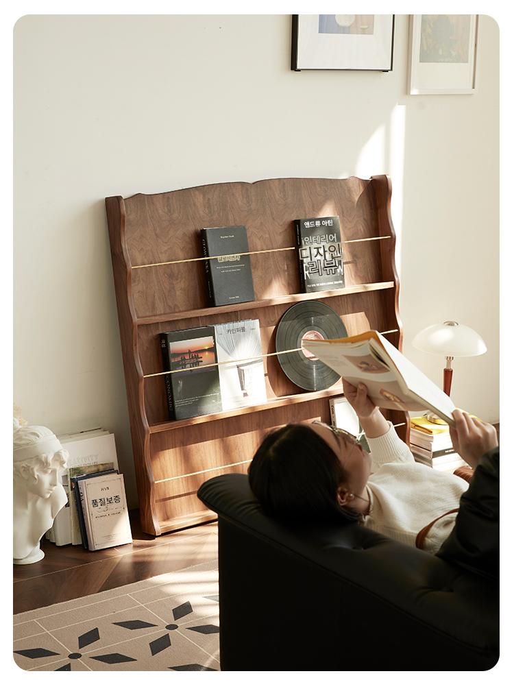 일본식 중고 원목 독서대 진열대 진열대 복고풍 수납 책장 신문 및 잡지 선반 바닥 선반